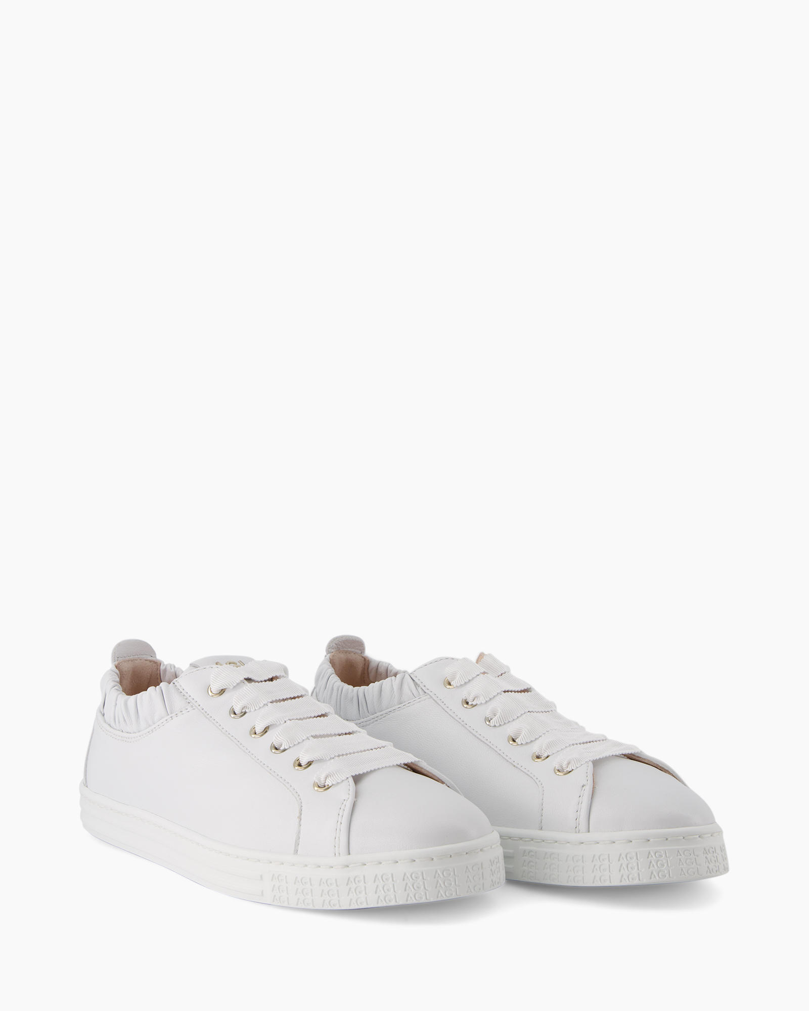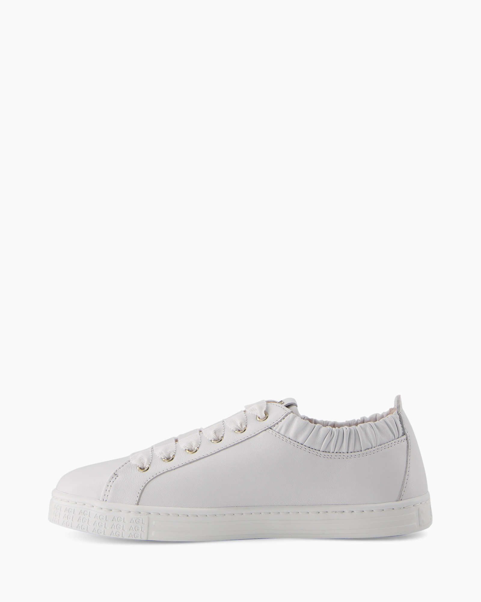 De gladde leren afwerking geeft de schoen een verfijnde look, terwijl de binnenvoering zorgt voor optimaal draagcomfort. De subtiele AGL-logo’s op de zool voegen een extra vleugje klasse toe. Deze veterschoen heeft geen grafische opdrukken, wat zorgt voor een tijdloos ontwerp dat bij elke outfit past.