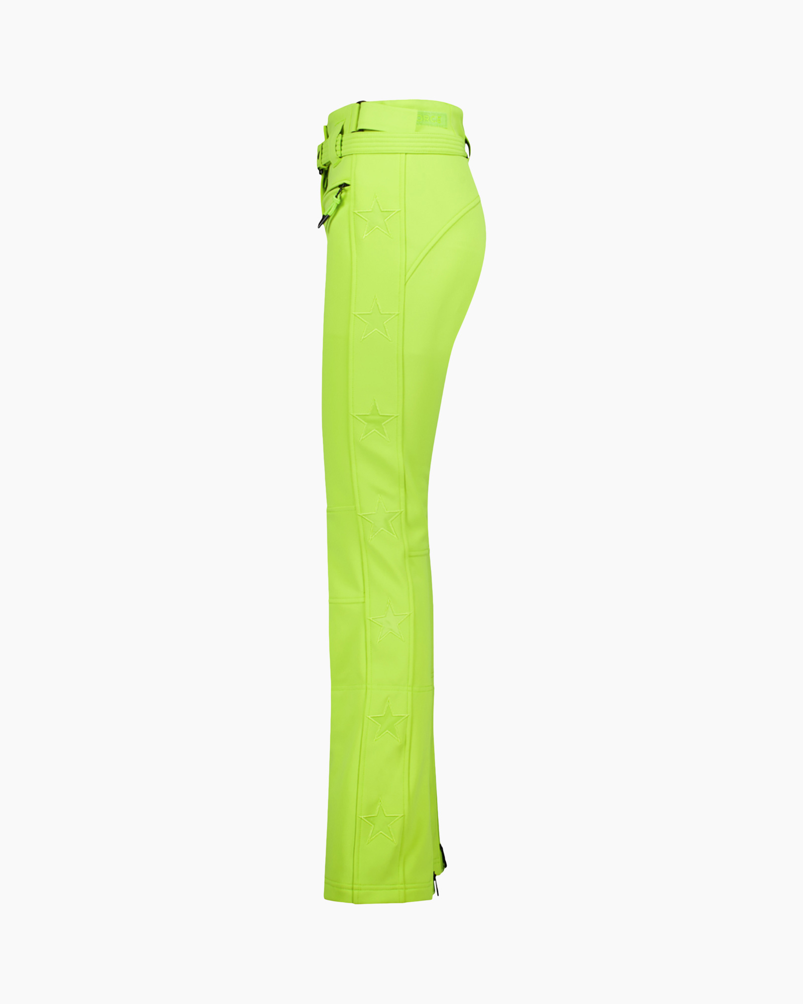 Broek Aspen Ski Pants Star licht groen van Airforce is de ski broek die je zoekt om op te vallen op de piste. Deze broek zit prettig door de aansluitende pasvorm en de lichte stretch in de stof. De opvallende neongele kleur geeft direct een frisse uitstraling aan je ski outfit. Je ziet dat de broek een slanke band met een zwarte gesp heeft, en is afgewerkt met ritszakken aan de voorkant en handige ritsen bij de enkels.