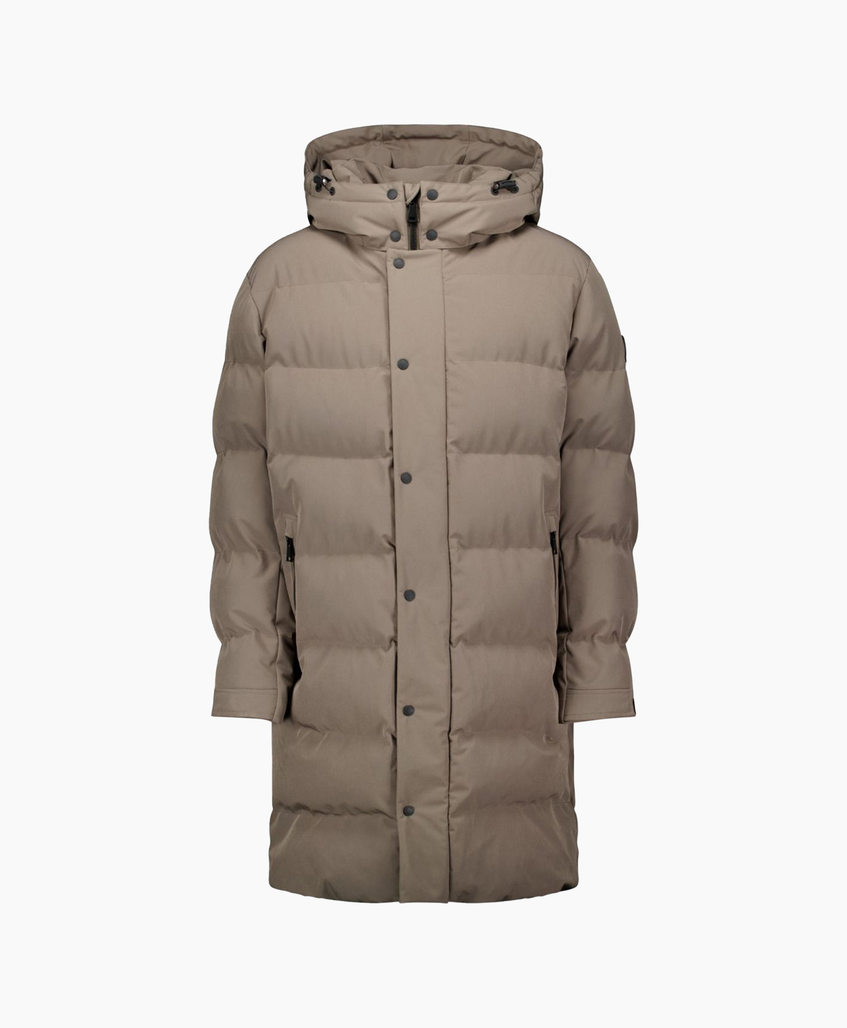 Jack Ace Jacket Donkergrijs van Airforce is een lange gewatteerde jas die je goed beschermt tegen de kou. Je ziet een ruime pasvorm die lang valt, uitgevoerd in een diepe taupekleur. De jas heeft een hoge kraag en een capuchon met verstelbare trekkoorden, en sluit met zowel een rits als drukknopen. Handige steekzakken met ritsen maken het geheel af.