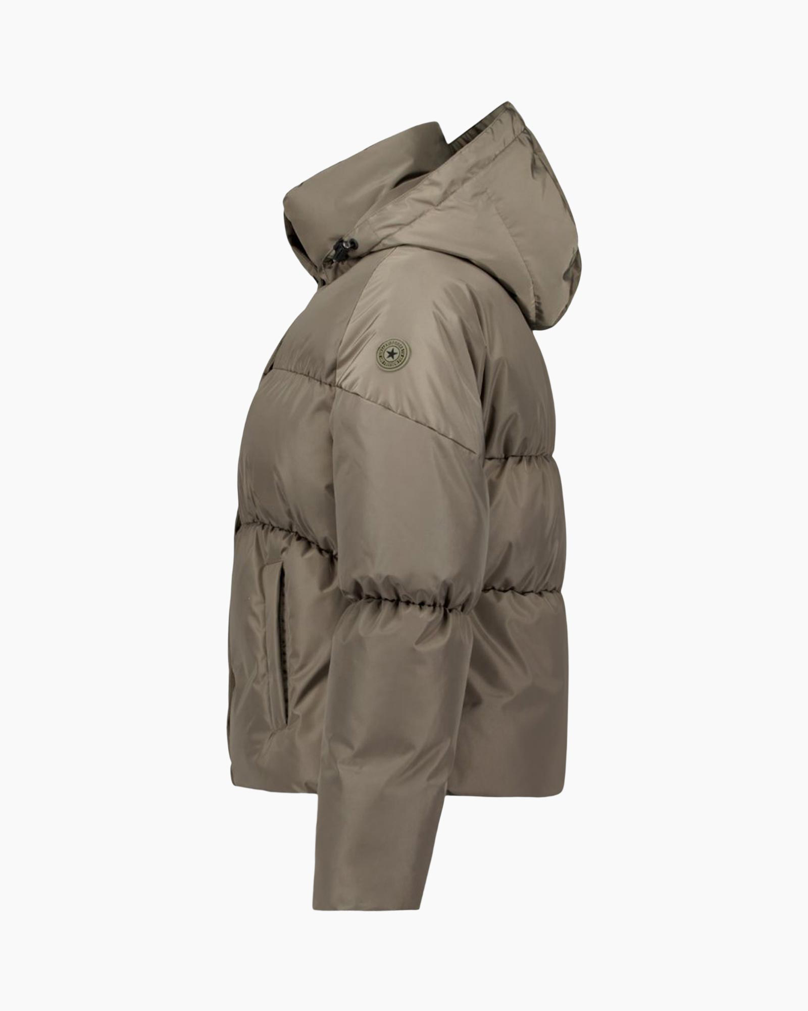 Met de Jas Maya Puffer Jacket Donkergrijs van Airforce haal je een veelzijdig item in huis. Deze puffer jas biedt je een korte, licht oversized pasvorm met een ingewerkt elastiek dat je taille mooi vormgeeft. De donkergrijze jas heeft een hoge kraag met een comfortabele capuchon en sluit met een rits en zwarte drukknopen. Praktische steekzakken aan de zijkant maken de jas compleet.