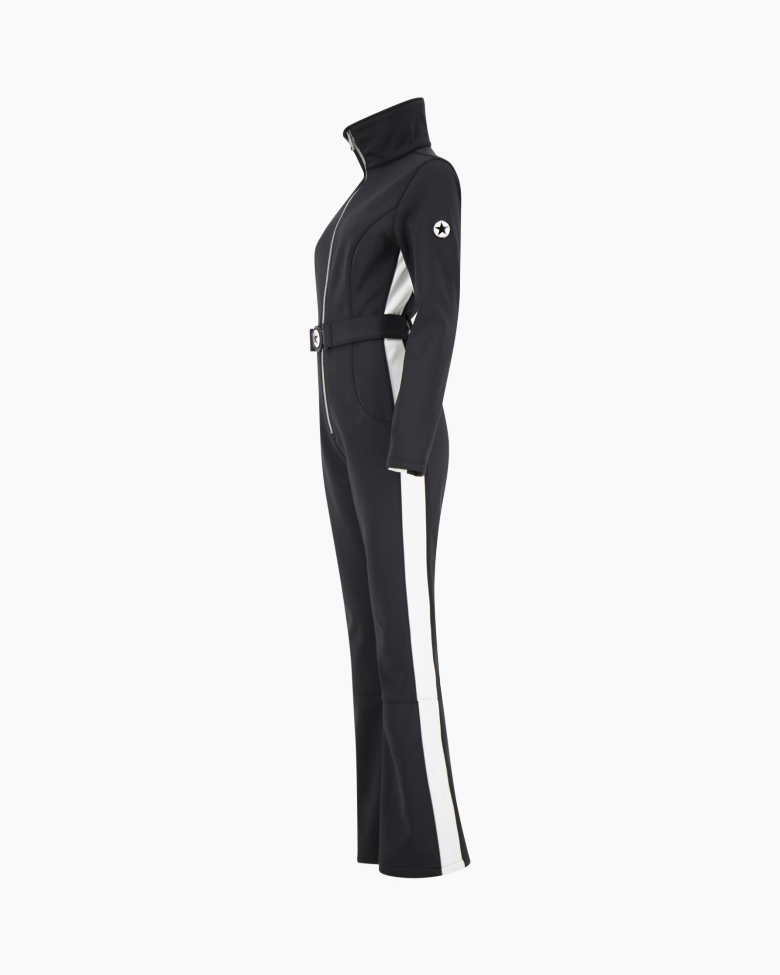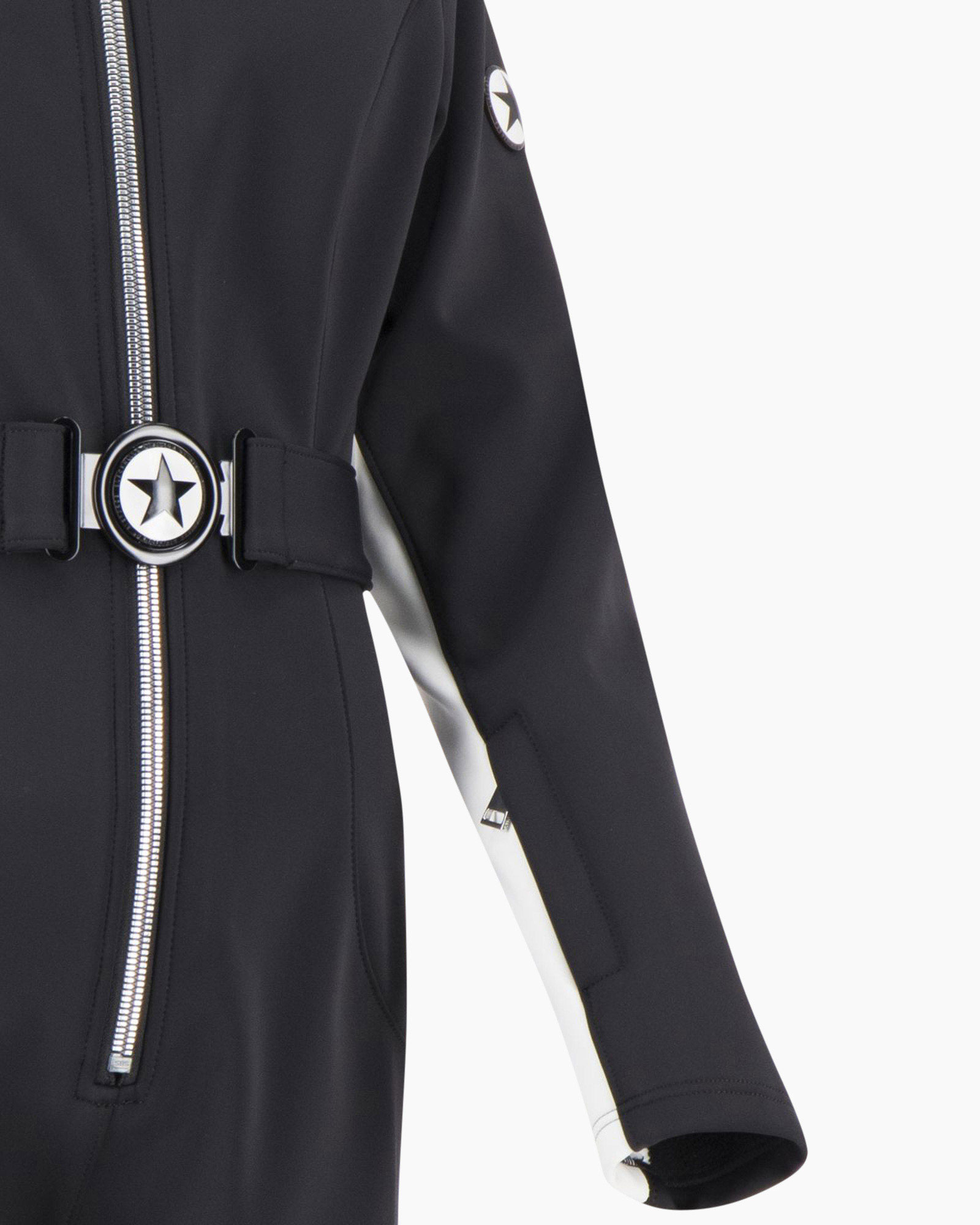 Jumpsuit Mount Fuji Zwart van Airforce is een sportief kledingstuk dat nauw aansluit op jouw lichaam. Dit zwarte item heeft een hoge kraag en een lange rits aan de voorkant. De riem in de taille benadrukt jouw figuur op een prettige manier. Witte banen aan de zijkanten zorgen voor een sportief contrast.