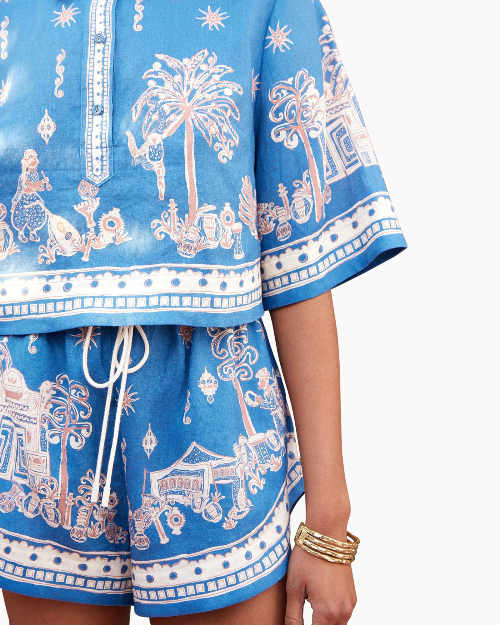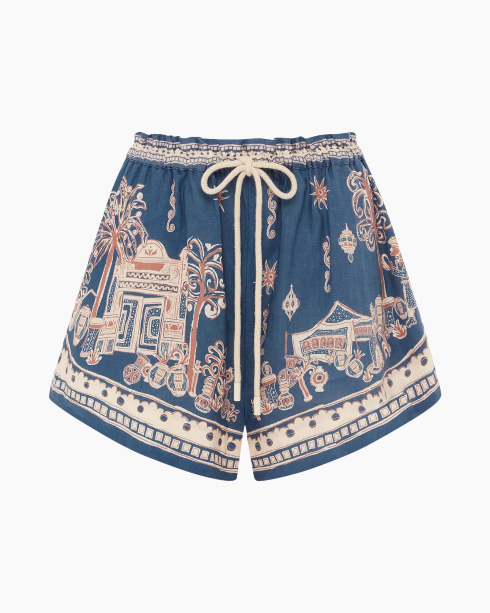 Korte Broek Acacia midden blauw van Alemais geeft je direct een vakantiegevoel. Je ziet er goed uit in dit kledingstuk met een print. De blauwe kleur past overal bij en de stof voelt koel aan op de huid. Door het witte koord zit de broek altijd goed om je middel.