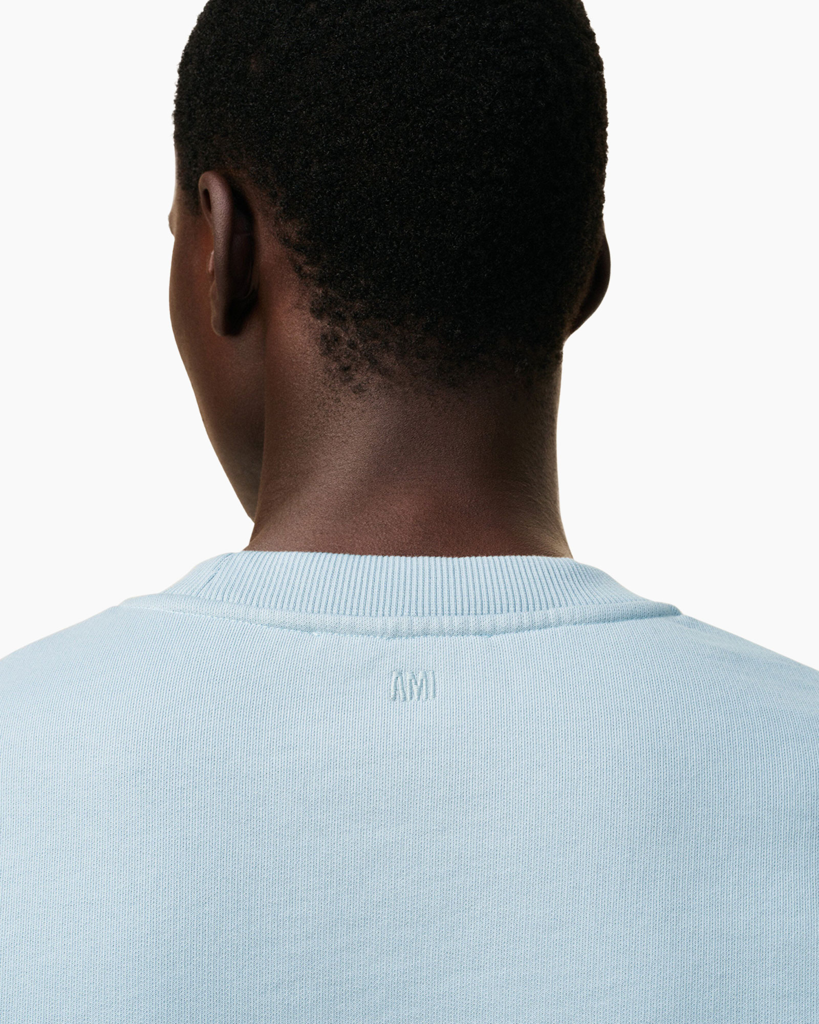 Gebreide Trui Adc Hsw763 Molleton Licht Blauw van Ami Paris is een comfortabele sweater die je direct pakt voor een warme look. De lichte blauwe tint zorgt voor een frisse uitstraling. Deze trui heeft een relaxte pasvorm met verlaagde schoudernaden die je veel bewegingsvrijheid geven. Je merkt de afwerking met geribde boorden bij de ronde hals, de mouwen en de zoom direct op.