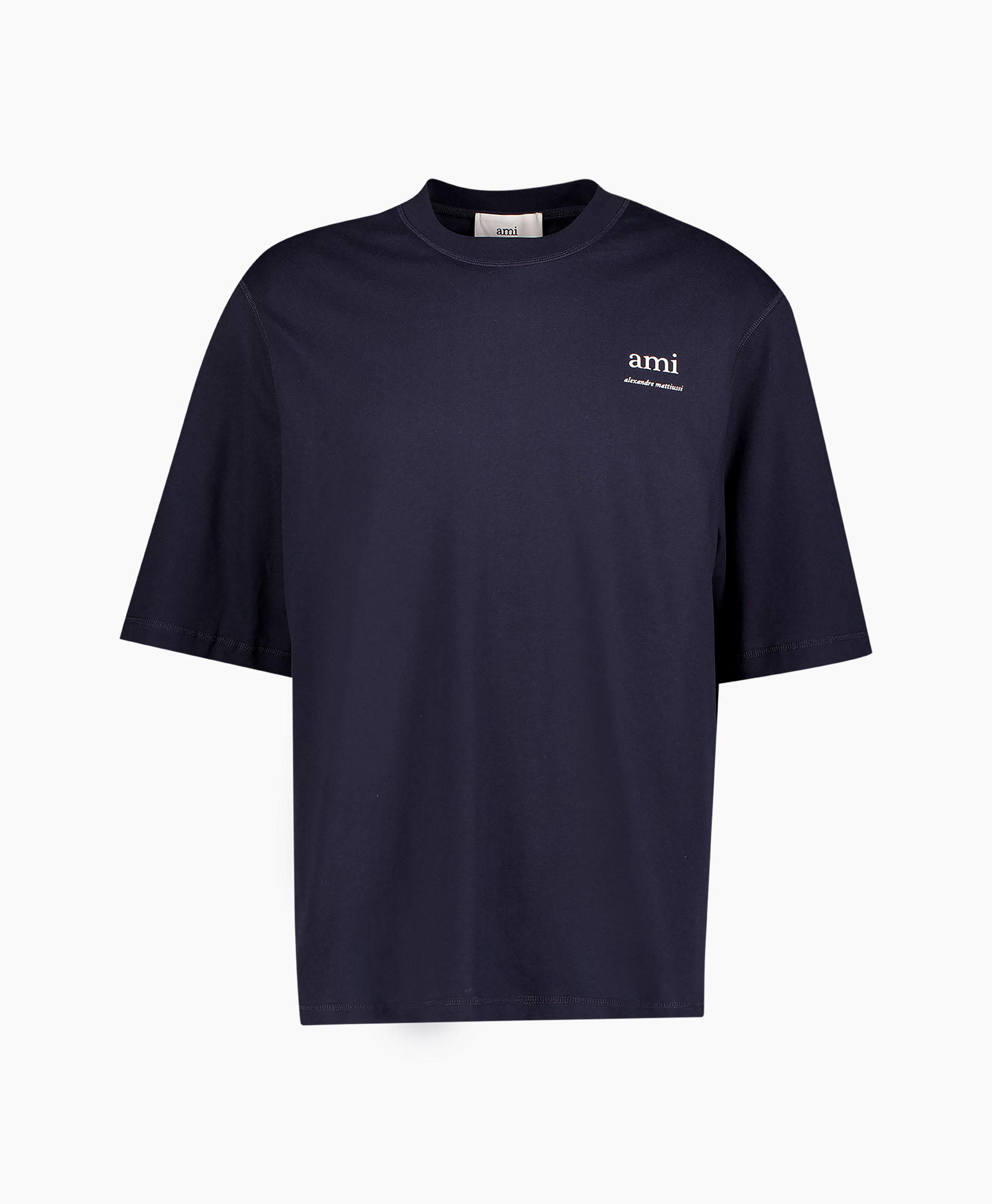 T-shirt Korte Mouw T-shirt Ts Ami Donker Blauw van Ami Paris is het T-shirt dat je direct aan je garderobe toevoegt. Je ziet de ruime, relaxte pasvorm die prettig valt en je veel bewegingsvrijheid geeft. De diep donker blauwe kleur zorgt voor een krachtige basis. Dit shirt kenmerkt zich door zijn eenvoudige ronde halslijn zonder knopen of zakken.