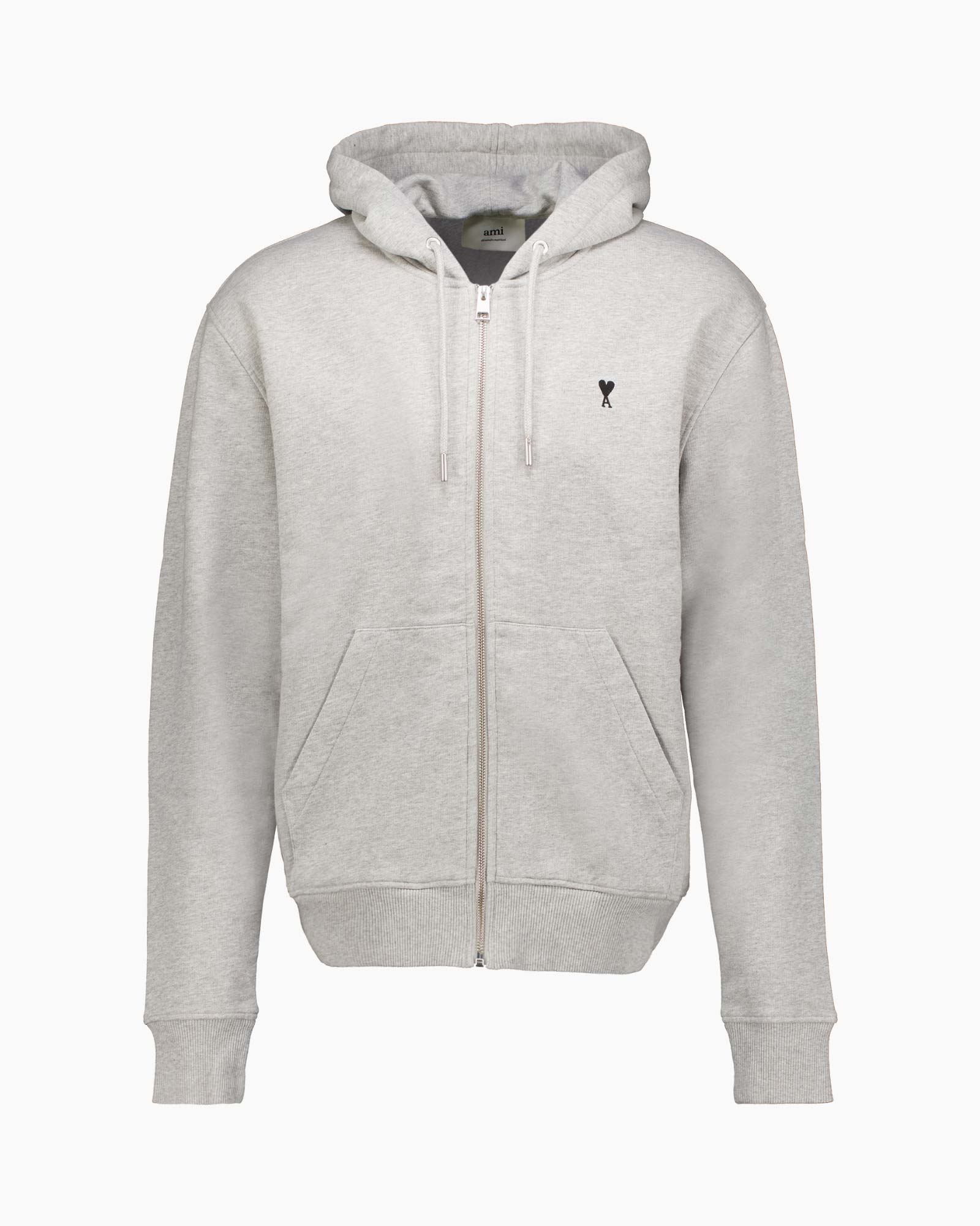Vest Adc Hsw765 Molleton Licht Grijs van Ami Paris is een hoodie met rits die je direct wilt dragen. Je ziet dat de pasvorm lekker ruim valt, met een comfortabele capuchon en lange mouwen. Het kledingstuk heeft een lichte grijze kleur die je makkelijk combineert, en de rits loopt tot bovenaan de kraag. Twee steekzakken aan de voorzijde geven je de ruimte om essentiële spullen mee te nemen.