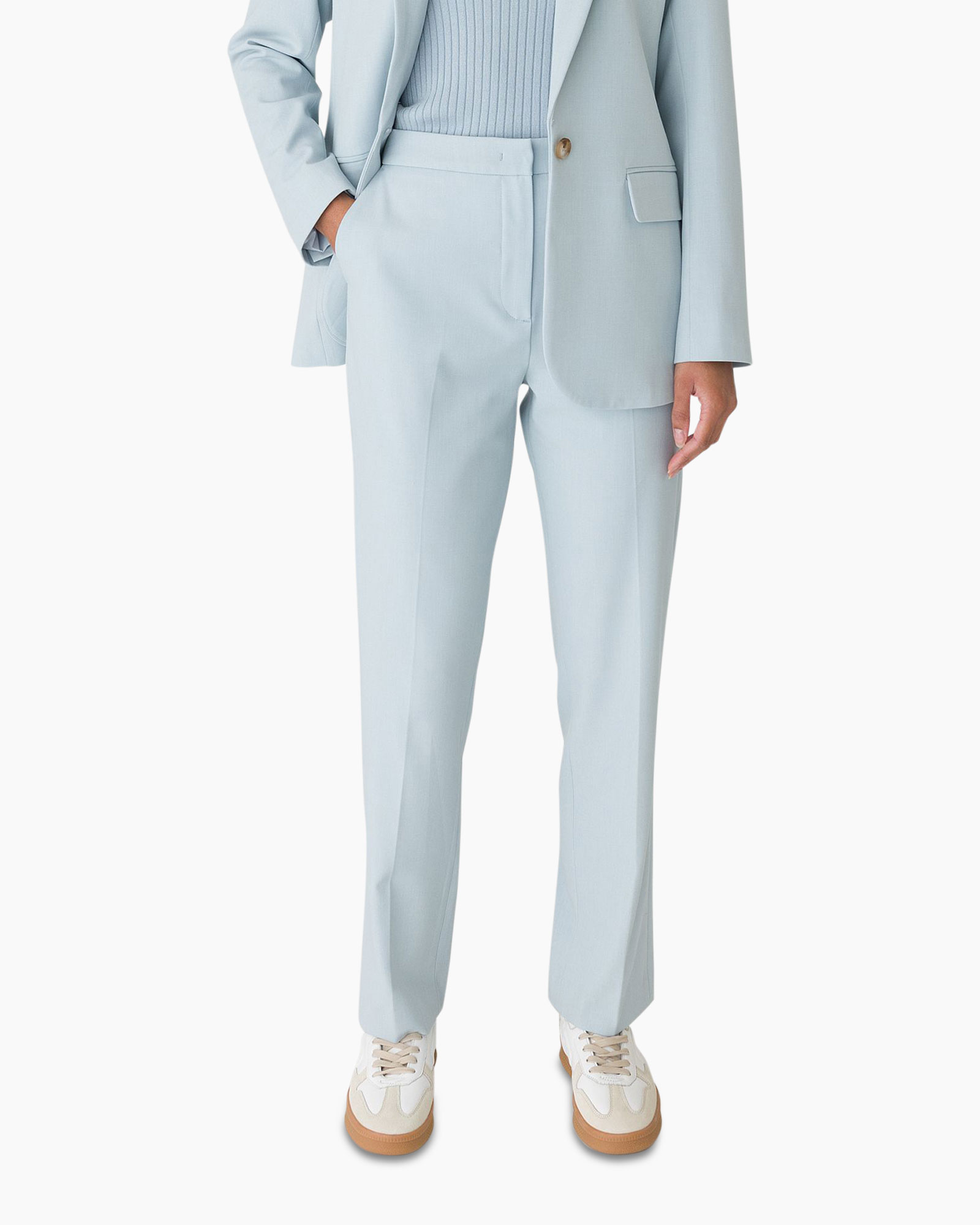 - Details: Haak-ritssluiting, steekzakken, persvouw