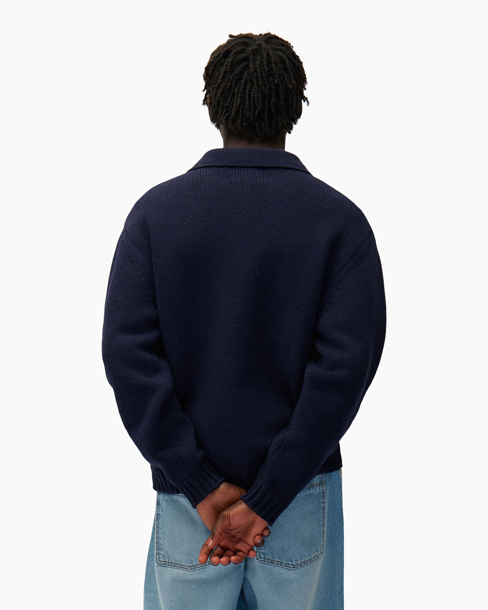 Combineer deze donkerblauwe klassieker met een stoere jeans voor een casual look.