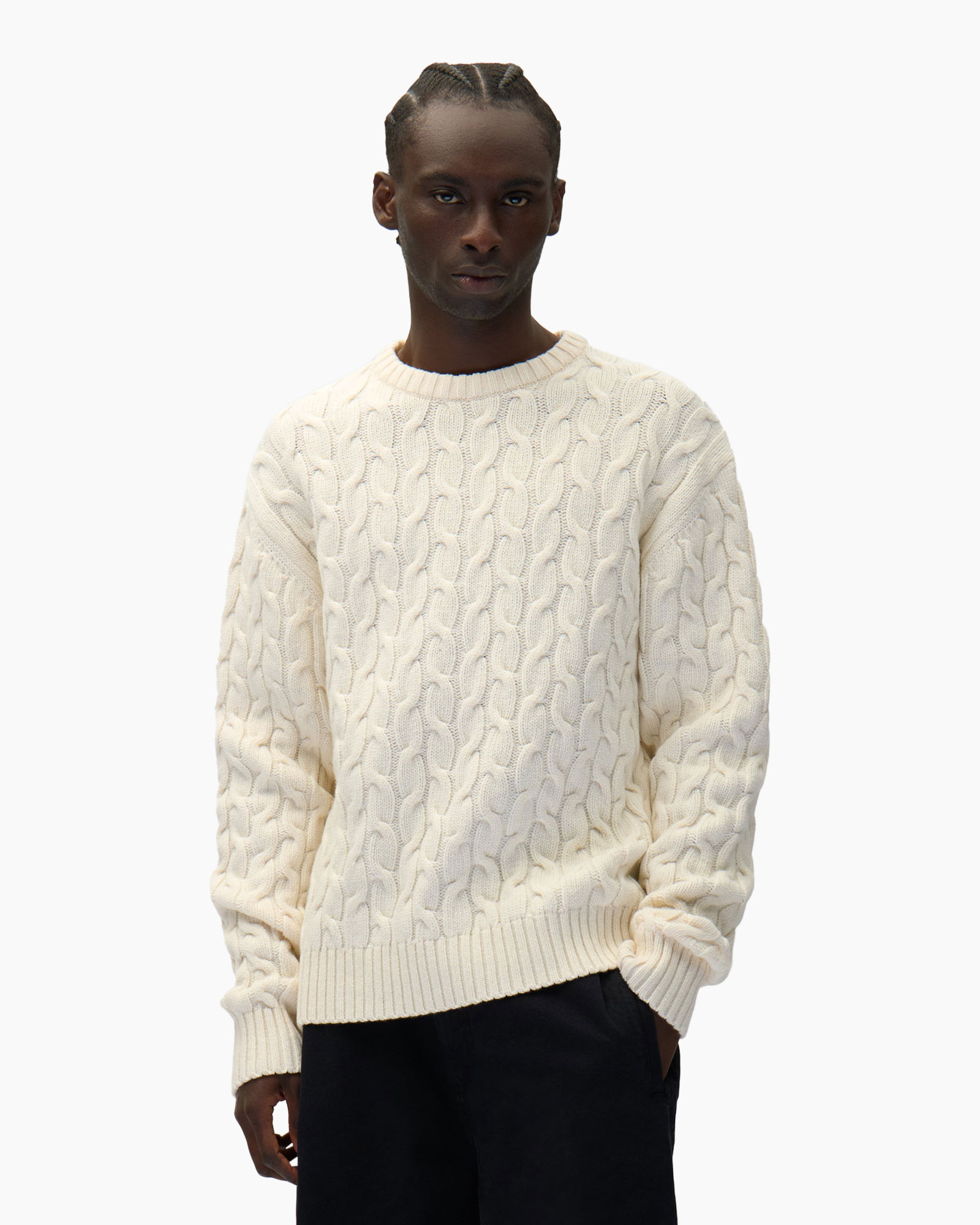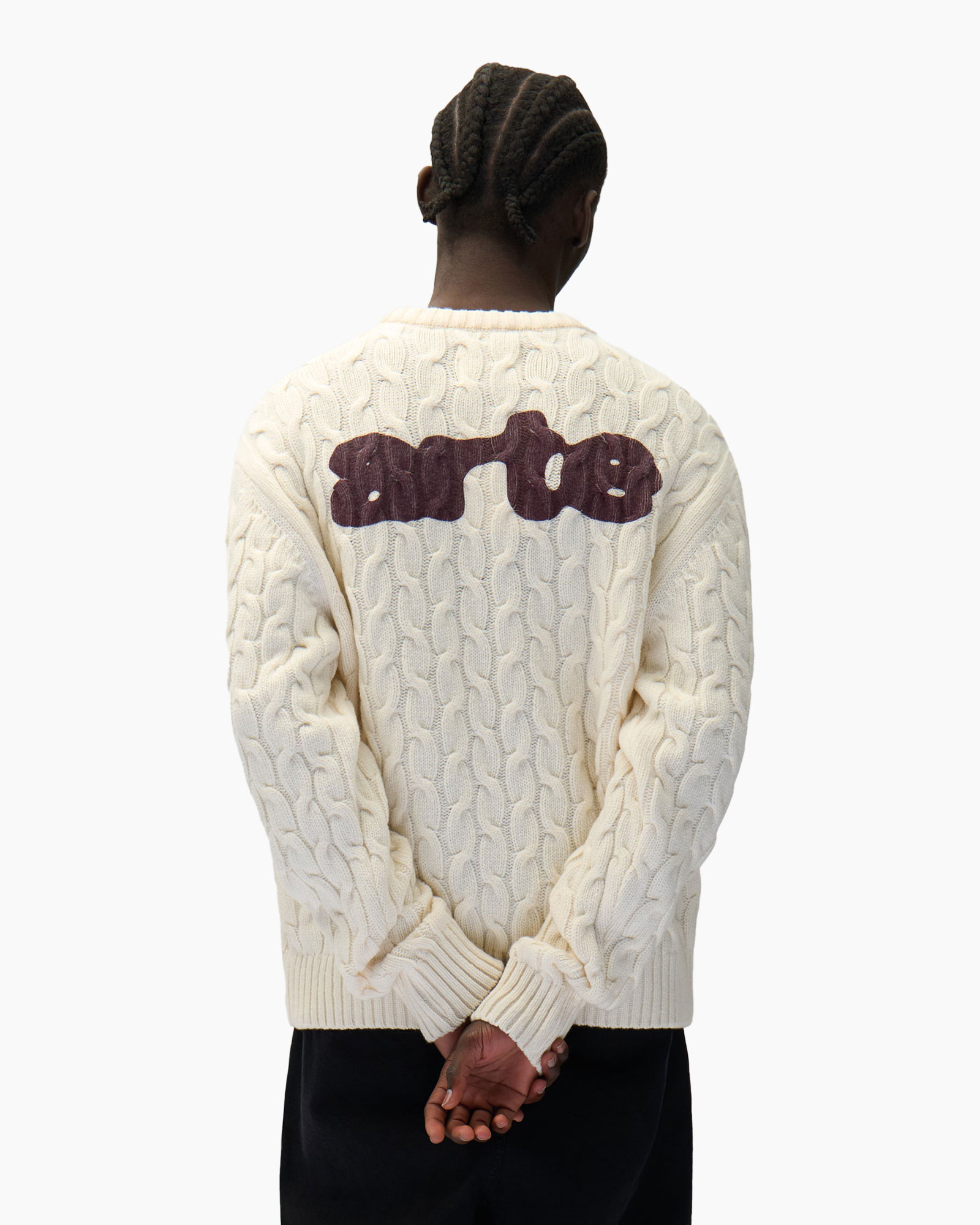 Deze trui is vervaardigd van zacht breiwerk dat zorgt voor ultiem draagcomfort. De pasvorm is ruim en valt comfortabel om het lichaam. Het kabelpatroon creëert visuele interesse en textuur. Aan de achterkant prijkt het unieke logo van Arte, subtiel en stijlvol. De ronde hals en geribde boorden ronden het geheel mooi af.