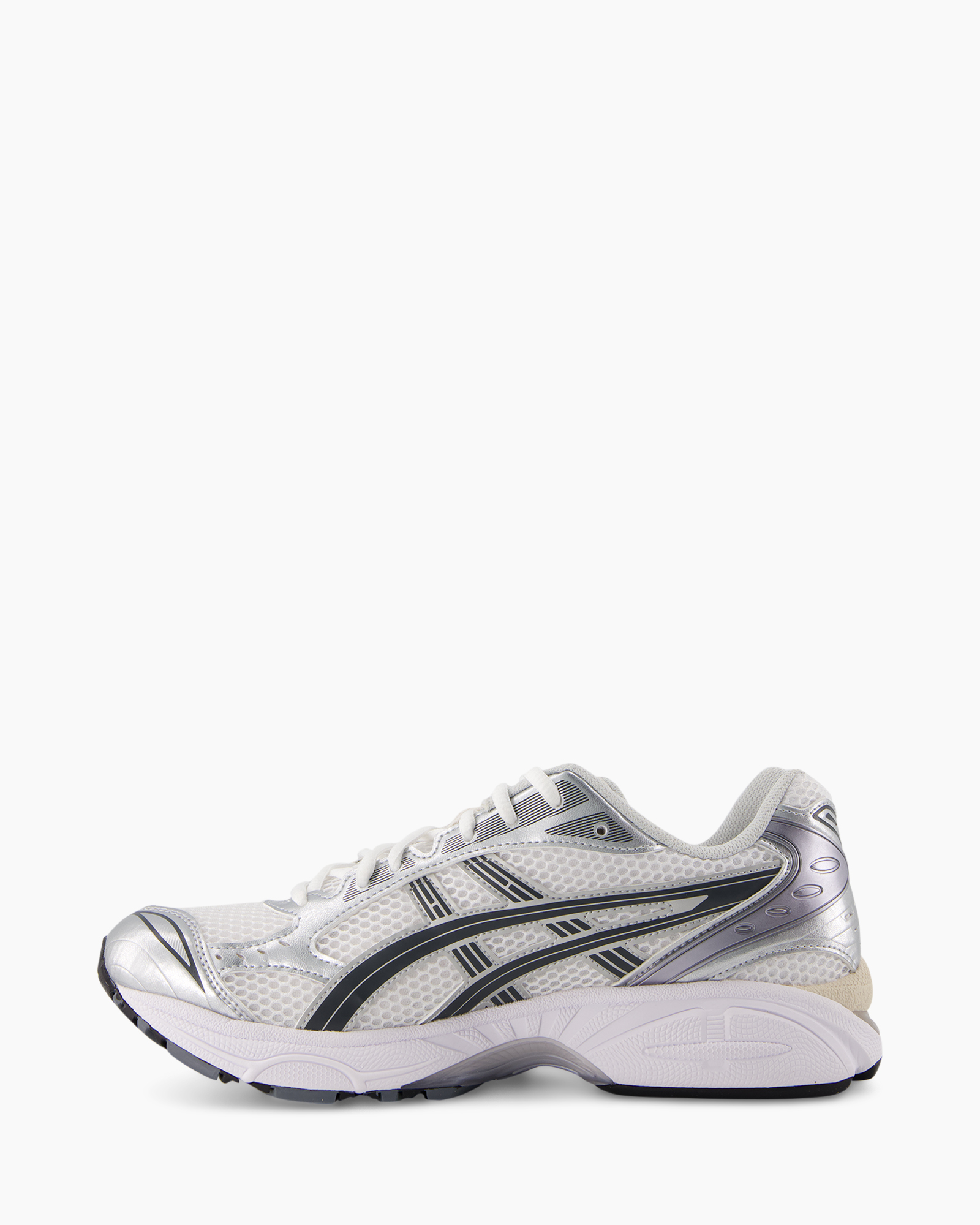 Stap vol vertrouwen de dag in met de Sneaker Gel-kayano 14 Wit van Asics, een ware blikvanger die je moeiteloos combineert. Deze sportieve sneaker is een eerbetoon aan het verleden van hardlopen, maar dan verpakt in een fris jasje. Je ziet direct hoe de schoen witte mesh combineert met glanzende zilveren overlays. Dat geeft de schoen een gelaagd uiterlijk.