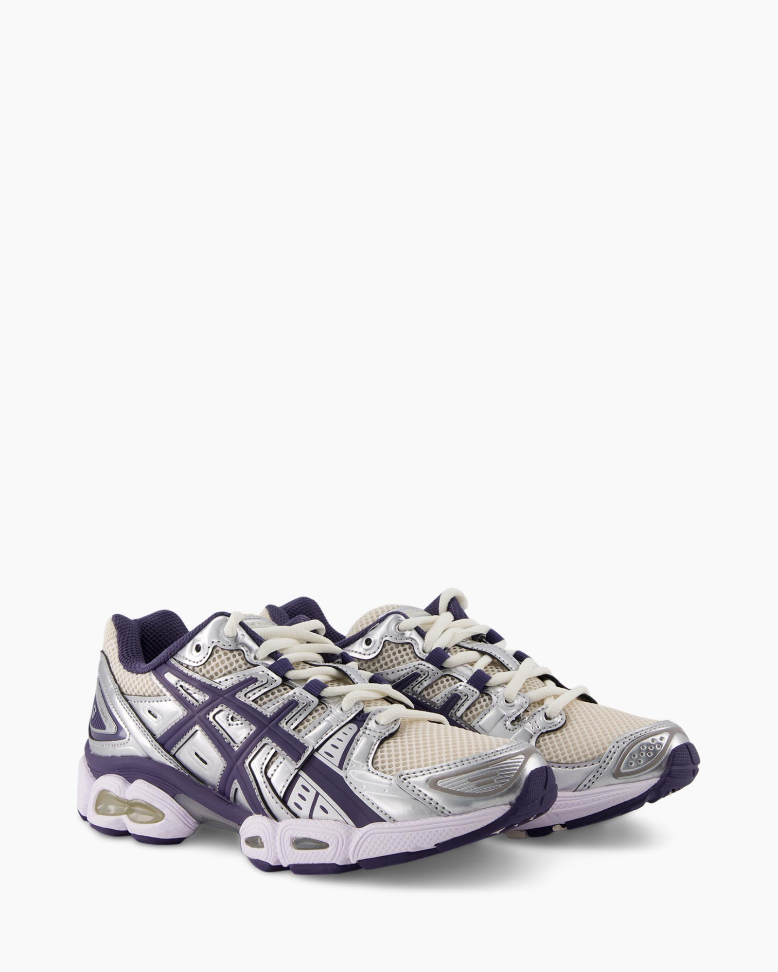 Voel jij je ook zo aangetrokken tot functionele designs met een sterke uitstraling? Dan is de Sneaker Gel-nimbus 9 Beige van Asics een uitstekende keuze voor jou. Deze sportieve schoen valt direct op door zijn doordachte combinatie van neutrale en krachtige tinten. Het luchtige bovenwerk van licht crème mesh garandeert draagcomfort en wordt visueel versterkt door glimmende zilveren overlays. Diepe paarse accenten sieren de binnenvoering en de herkenbare Asics strepen aan de zijkant. De veters, uitgevoerd in een zachte off-white kleur, creëren een subtiel contrast met het geheel. Op de zijkant van de hiel staat duidelijk de naam van het model, GEL-NIMBUS 9, wat de afkomst helder maakt. De robuuste zool met zichtbare dempingselementen biedt je elke stap een prettige ervaring. Je voegt hiermee een krachtig item toe aan je garderobe.