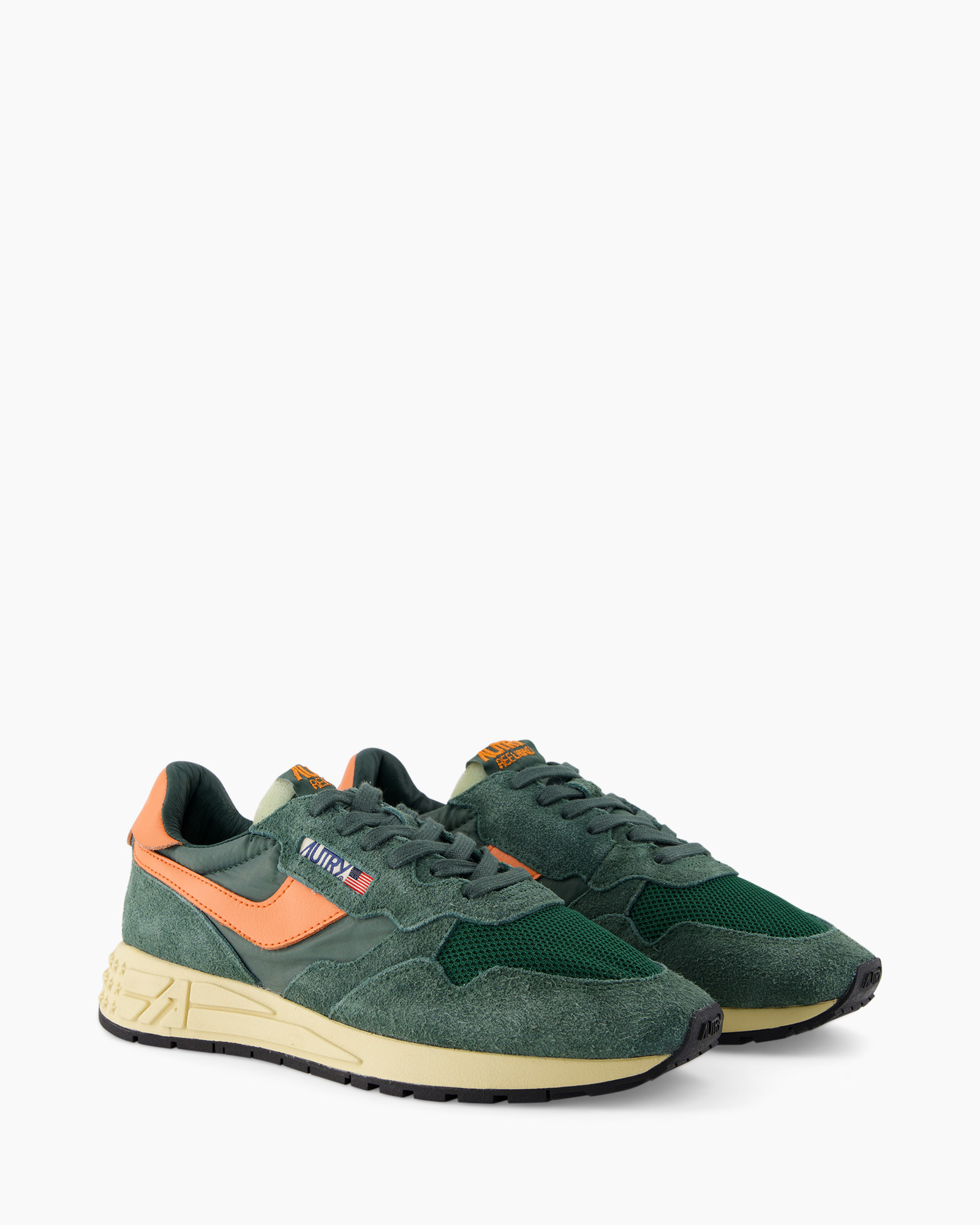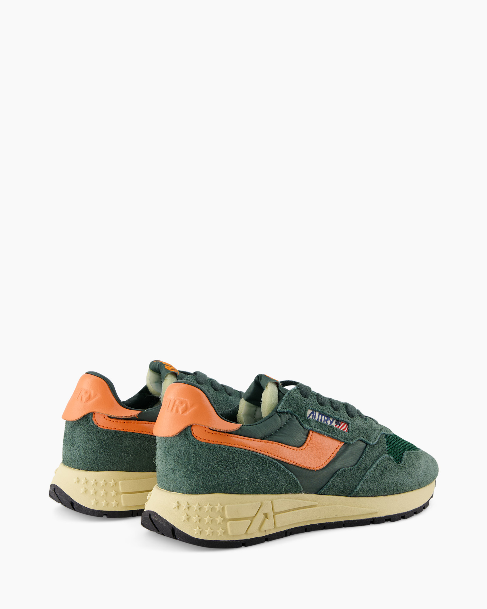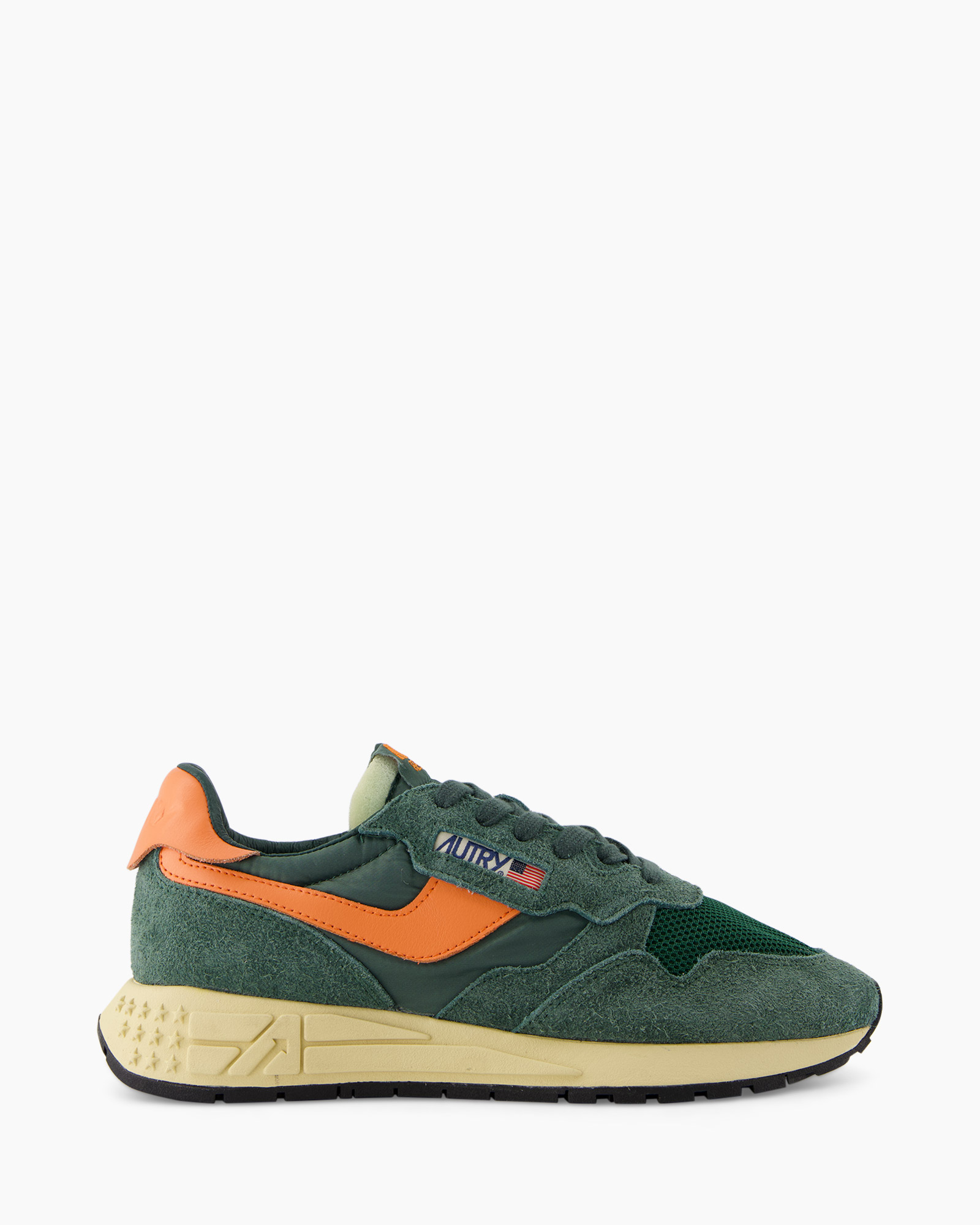 Innovatief, licht en extreem flexibel: de Reelwind Autry sneakers zijn geïnspireerd op de hardloopwereld. De herenschoen is gemaakt van een mix van groen suède en nylon, met zijpanelen van oranje leer.