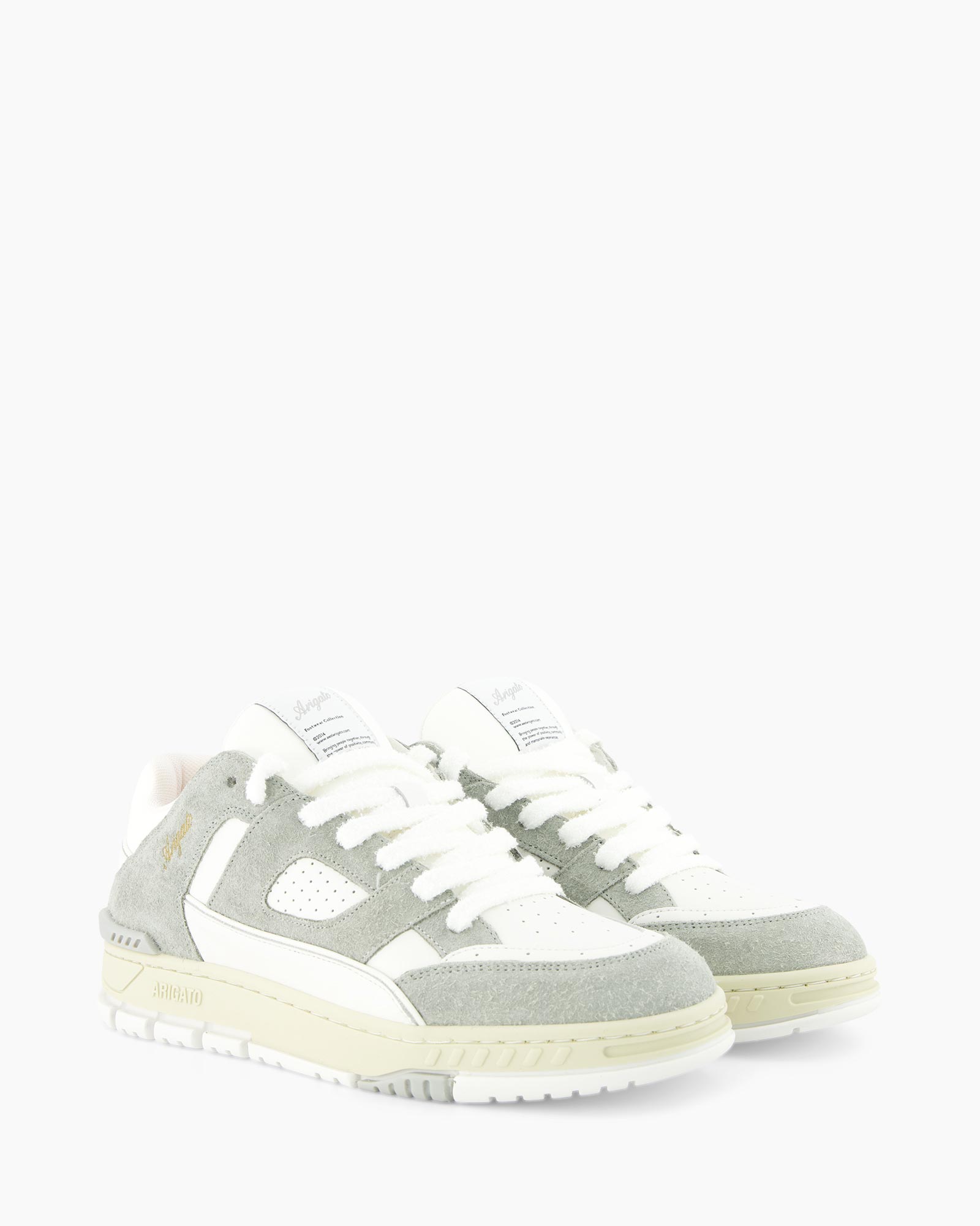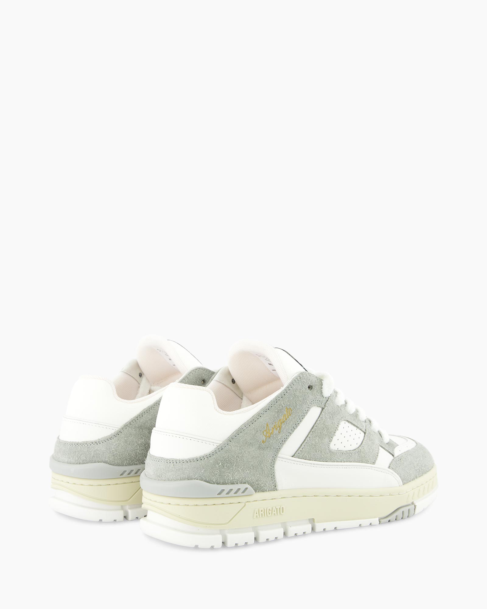De Area Lo sneaker is een eerbetoon aan de basketbalstijlen uit de jaren 90. Het is handgemaakt van premium leer en gerecycled polyester en heeft een bovenwerk met vlakken afgewerkt met perforaties en hielspoilers.