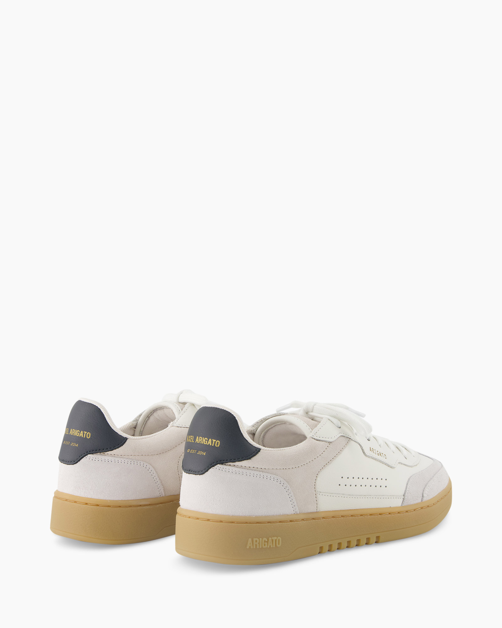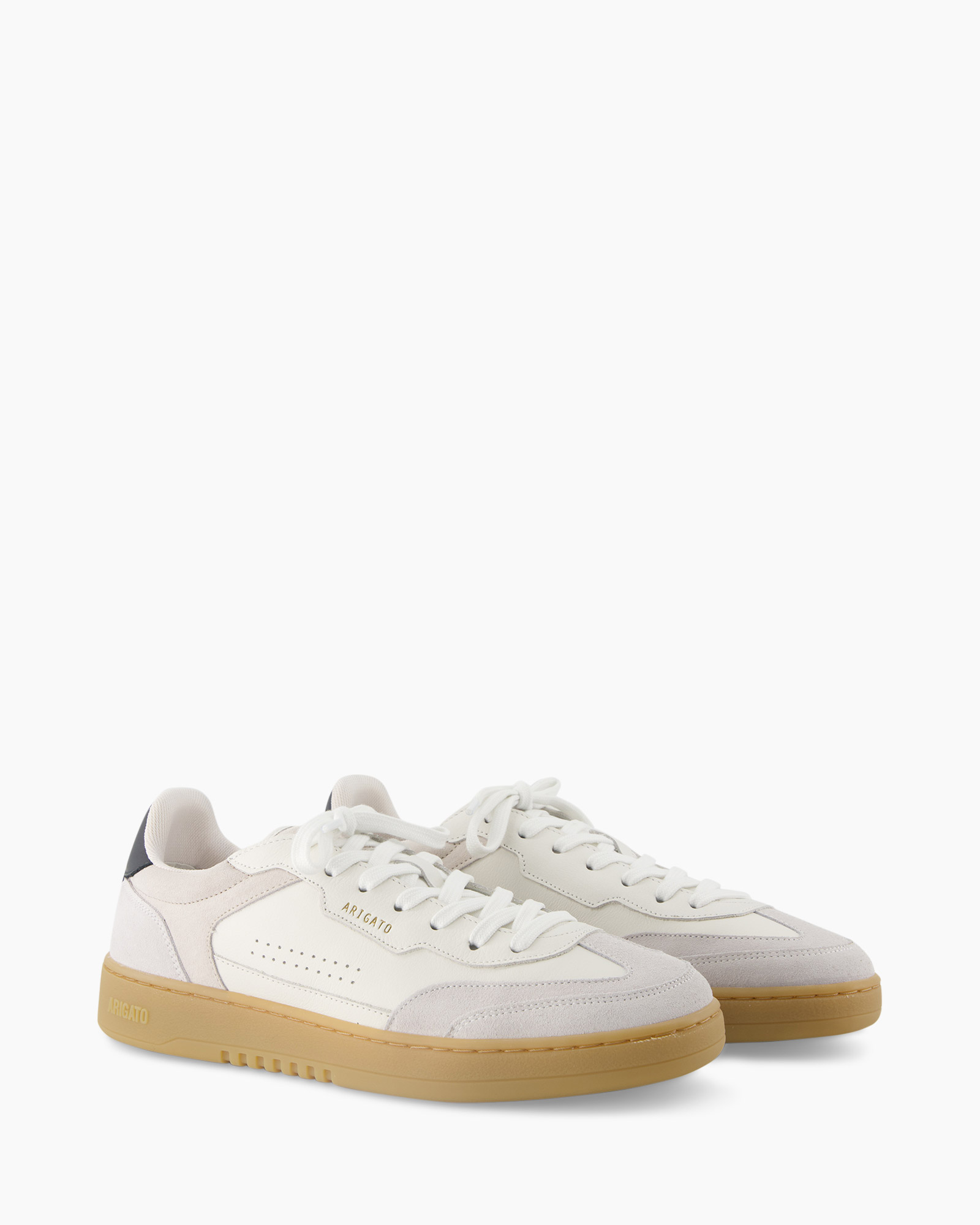 De Dice T-Toe sneaker is geïnspireerd op twee verschillende bronnen: een knipoog naar hardloopschoenen uit de jaren 70 en skateschoenen uit de jaren 90. De schoen heeft een contrasterend bovenwerk dat handgemaakt is van leer, suède en gerecycled polyester.