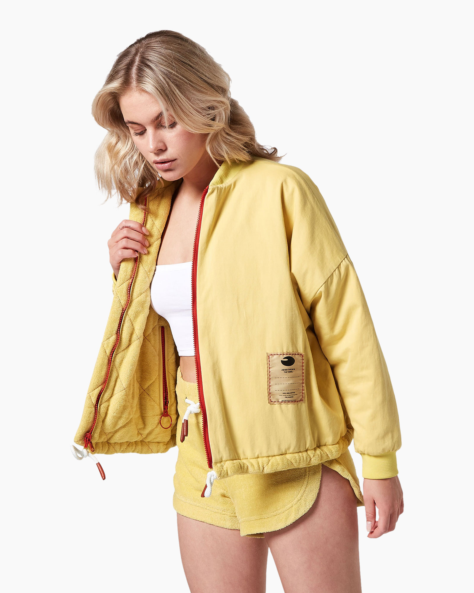 De Jack Sunset Geel van Baindoux is een echte blikvanger! Dit gele jack heeft een comfortabele pasvorm en is perfect voor zonnige dagen. De badstof voelt zacht aan op je huid.