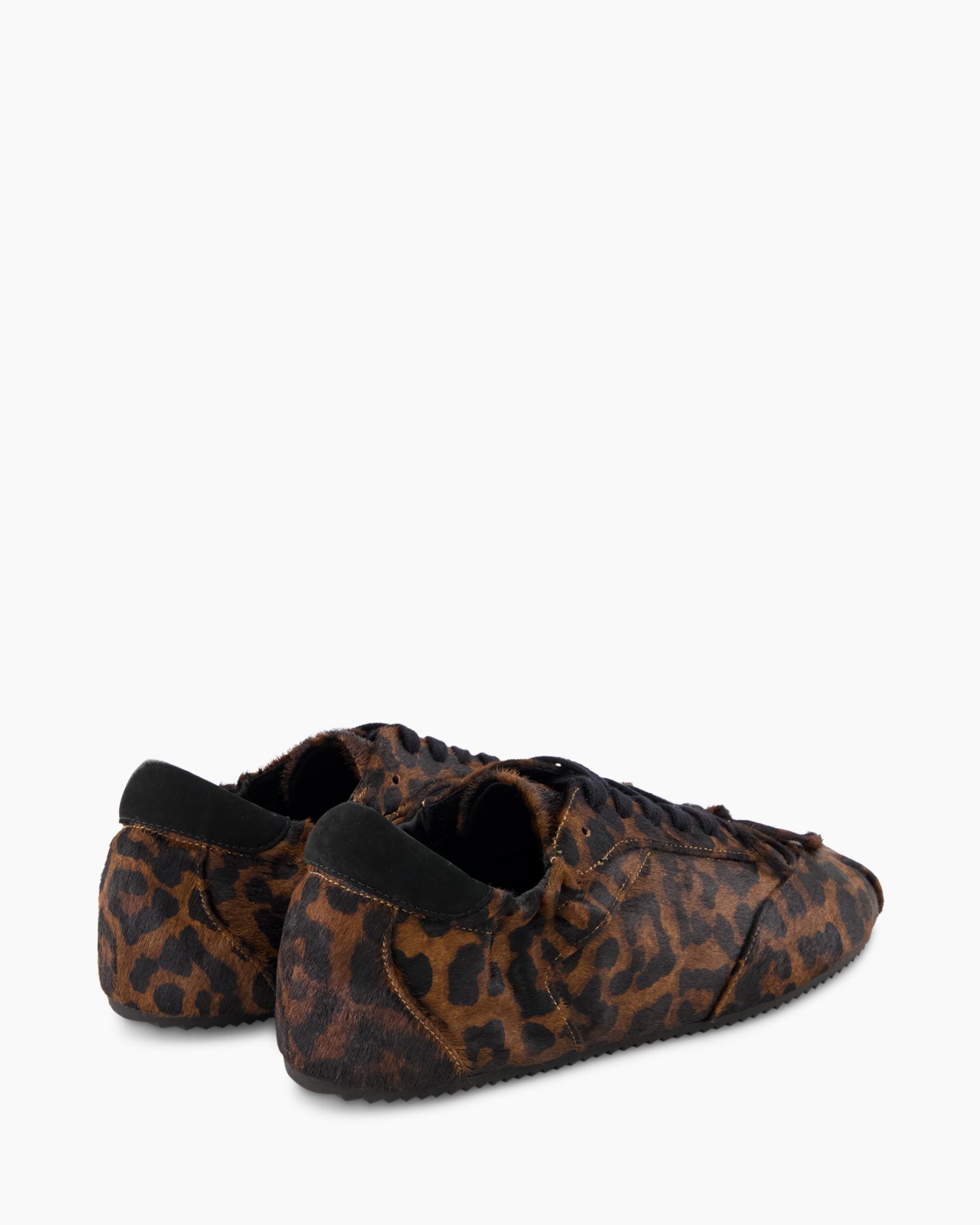 Dit zijn de Sneaker Printed Pony Fur Bruin van Bibi Lou, een paar sneakers dat je direct aanspreekt. Je ziet een rijke bruine kleur, levendig afgewisseld met een diepe zwarte luipaardprint. Het bovenwerk, gemaakt van pony fur, geeft de schoen een fijne, zachte textuur die je niet vaak tegenkomt. De veters zijn zwart en vormen een mooi contrast met de print. Ze binden de schoen op een klassieke manier samen. Ook de zool is volledig zwart en voorzien van een opvallend kartelprofiel, wat niet alleen een stoere look geeft maar ook zorgt voor goede grip. Een zwarte hielkap aan de achterkant maakt het geheel compleet. Deze schoenen bieden een uitgesproken toevoeging aan je kledingkast. Ze zijn perfect voor wie graag een persoonlijke touch aan de dagelijkse outfit geeft.