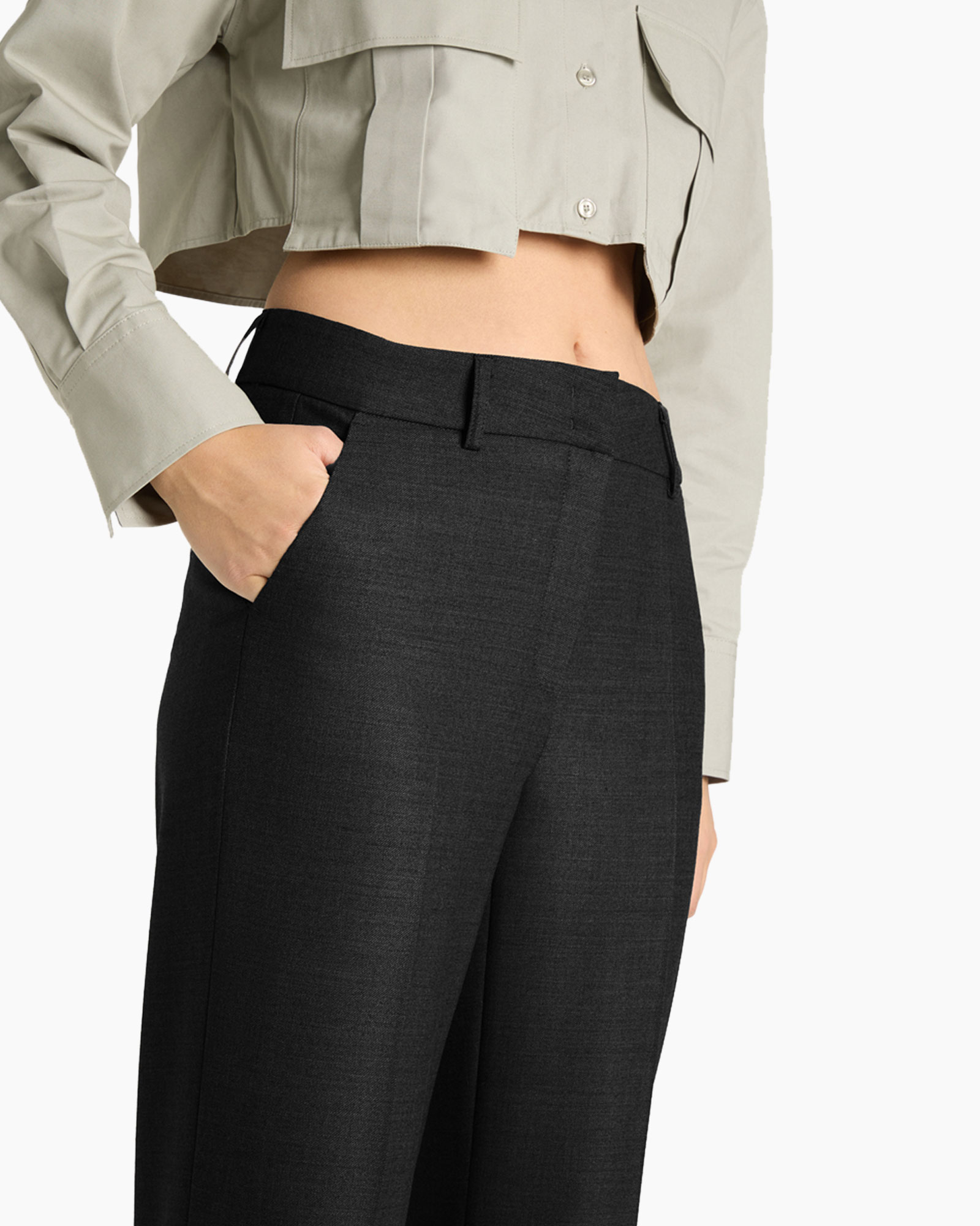Draag deze broek met een korte top en hoge schoenen voor een krachtige uitstraling.