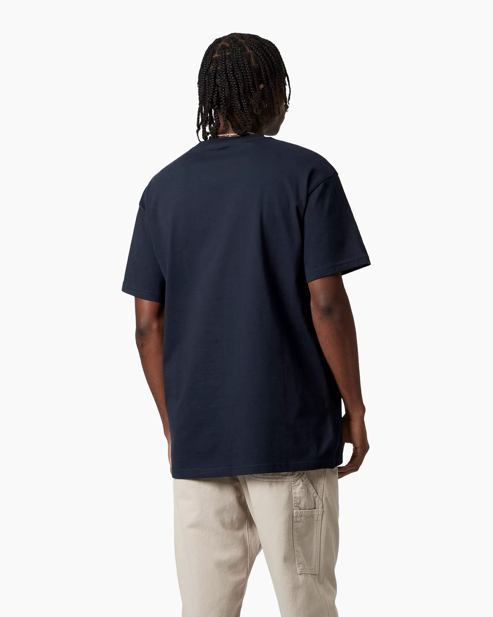 T-shirt Korte Mouw S/s Chase Donker Blauw van Carhartt Wip biedt een uitstekende pasvorm en tijdloze uitstraling. Dit donkerblauwe kledingstuk straalt eenvoud en comfort uit. Het T-shirt is gemaakt van zacht materiaal dat prettig draagt en heeft een moderne, rechte snit.
