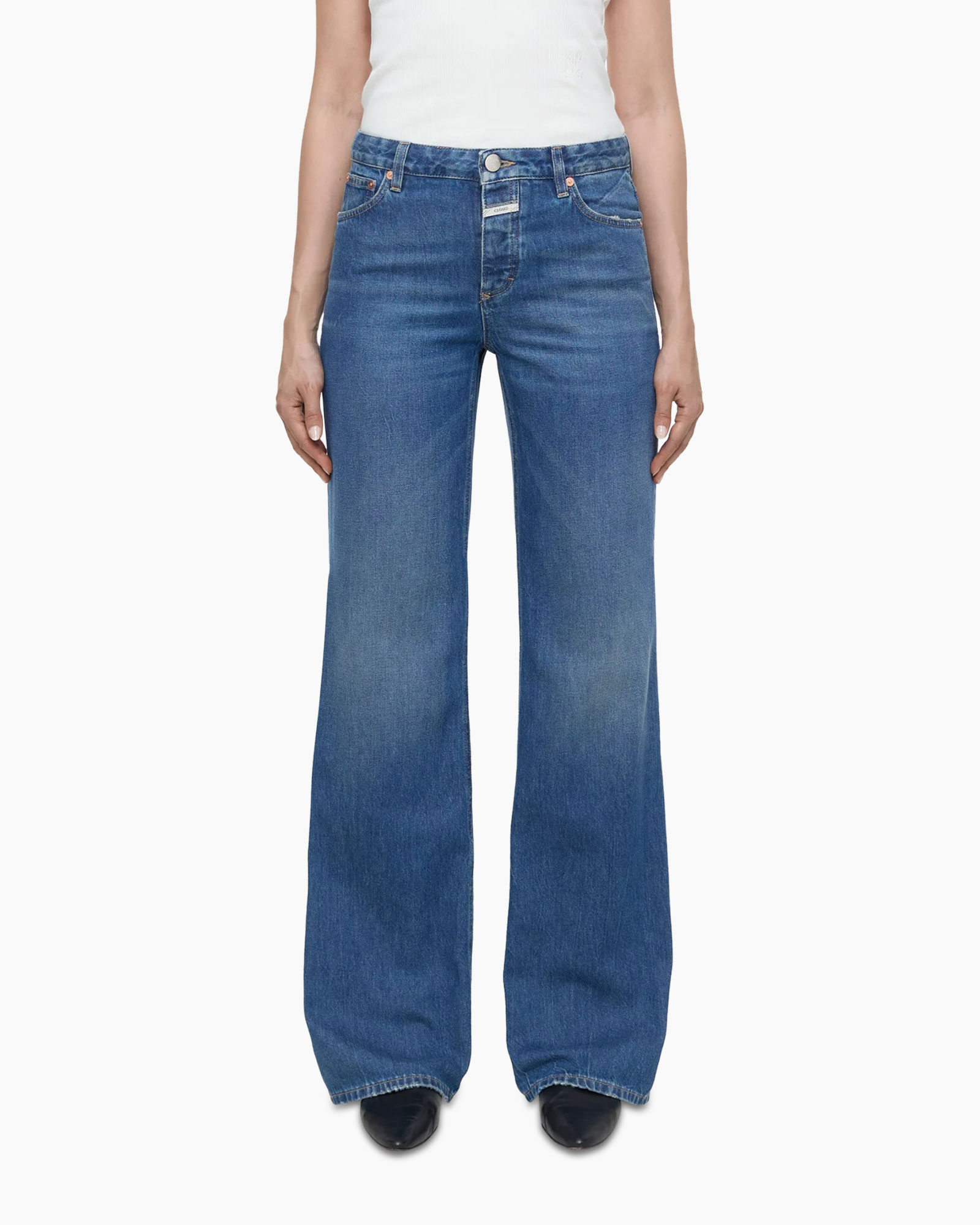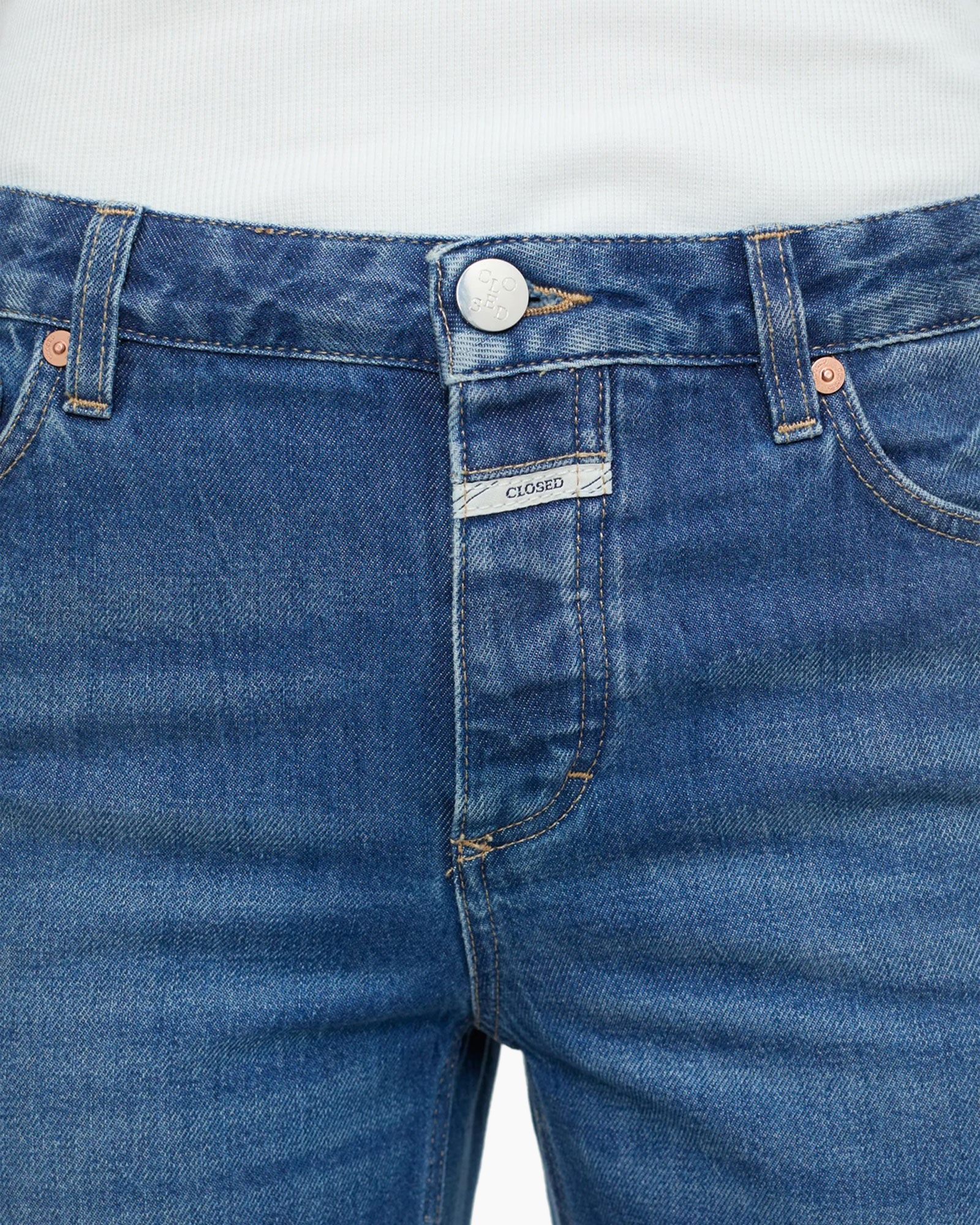 - Ziet eruit als: middenblauwe denim met een salt 'n pepper-look in een versleten look