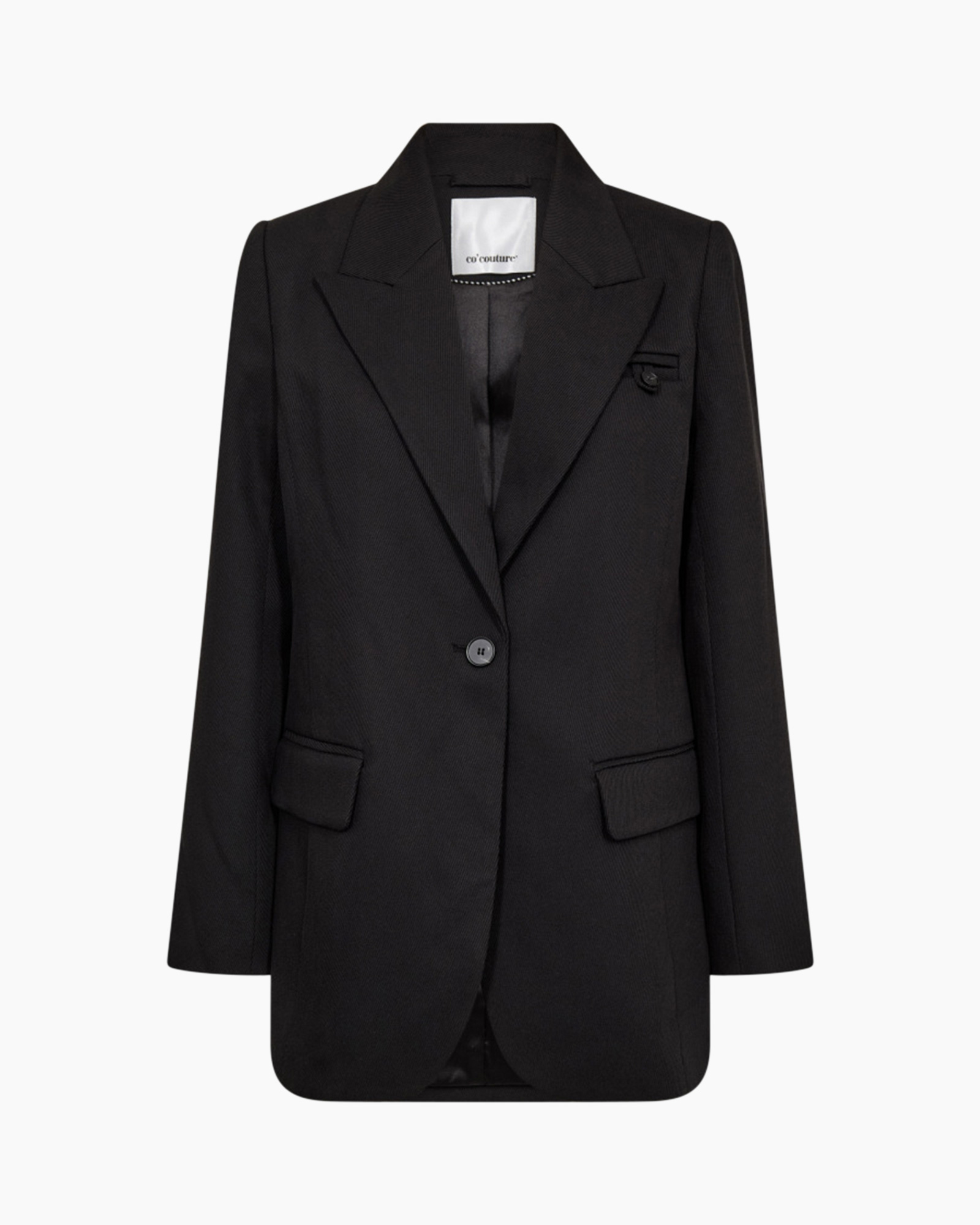 Blazer Almira Fitted Zwart van Co Couture is een kledingstuk dat je graag zult dragen. Deze zwarte blazer heeft een pasvorm die nauw aansluit op jouw lichaam. Het item heeft een kraag met revers en zakken met kleppen aan de zijkanten. Je sluit de voorkant met een enkele knop.
