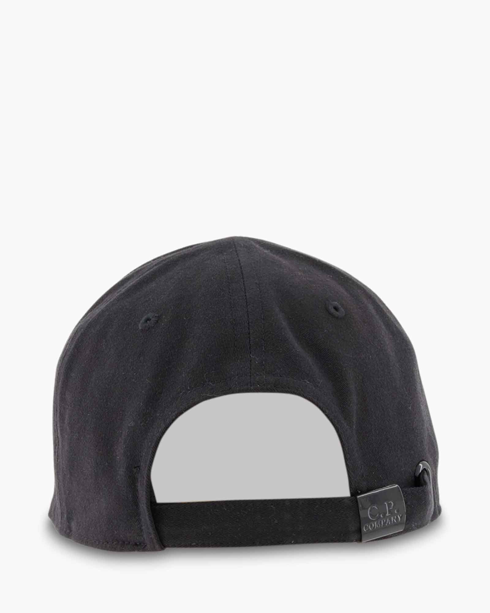 De pet is gemaakt van gabardine, een stevig materiaal dat zorgt voor een prettig draagcomfort en de pet zijn vorm behoudt. Aan de voorzijde van de pet staat het "C.P. Company" logo in reliëf, de opdruk is uitgevoerd in dezelfde zwarte kleur als de pet. Achterop zit een verstelbare band. Deze band is voorzien van een metalen gesp waarop het "C.P. Company" logo eveneens is aangebracht. De effen zwarte kleur geeft de pet een tijdloze uitstraling.