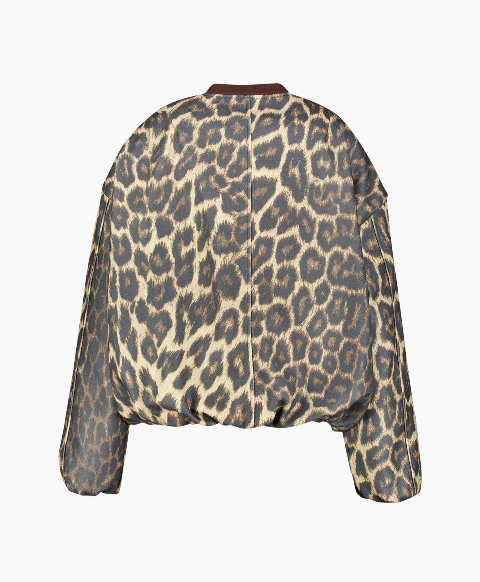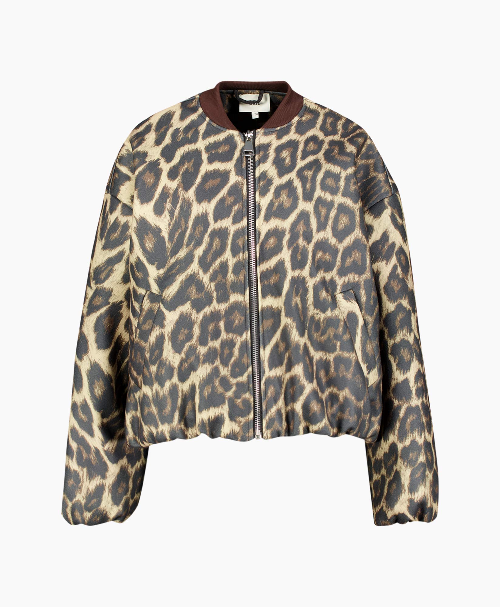 Wil je een krachtig kledingstuk aan je garderobe toevoegen, dan is de Jack Gavi Bruin van d’Arc precies wat je zoekt. Je ziet direct de rijke luipaardprint, uitgevoerd in warme bruine, beige en zwarte tinten. Het bomberjack heeft een fijne, boxy pasvorm die kort valt. De schouders zijn ruim en de mouwen vallen relaxed. Je sluit dit item gemakkelijk met de centrale rits. De donkerbruine, geribbelde kraag geeft een mooi contrast met de print. Handige steekzakken zijn netjes in de voorkant weggewerkt.