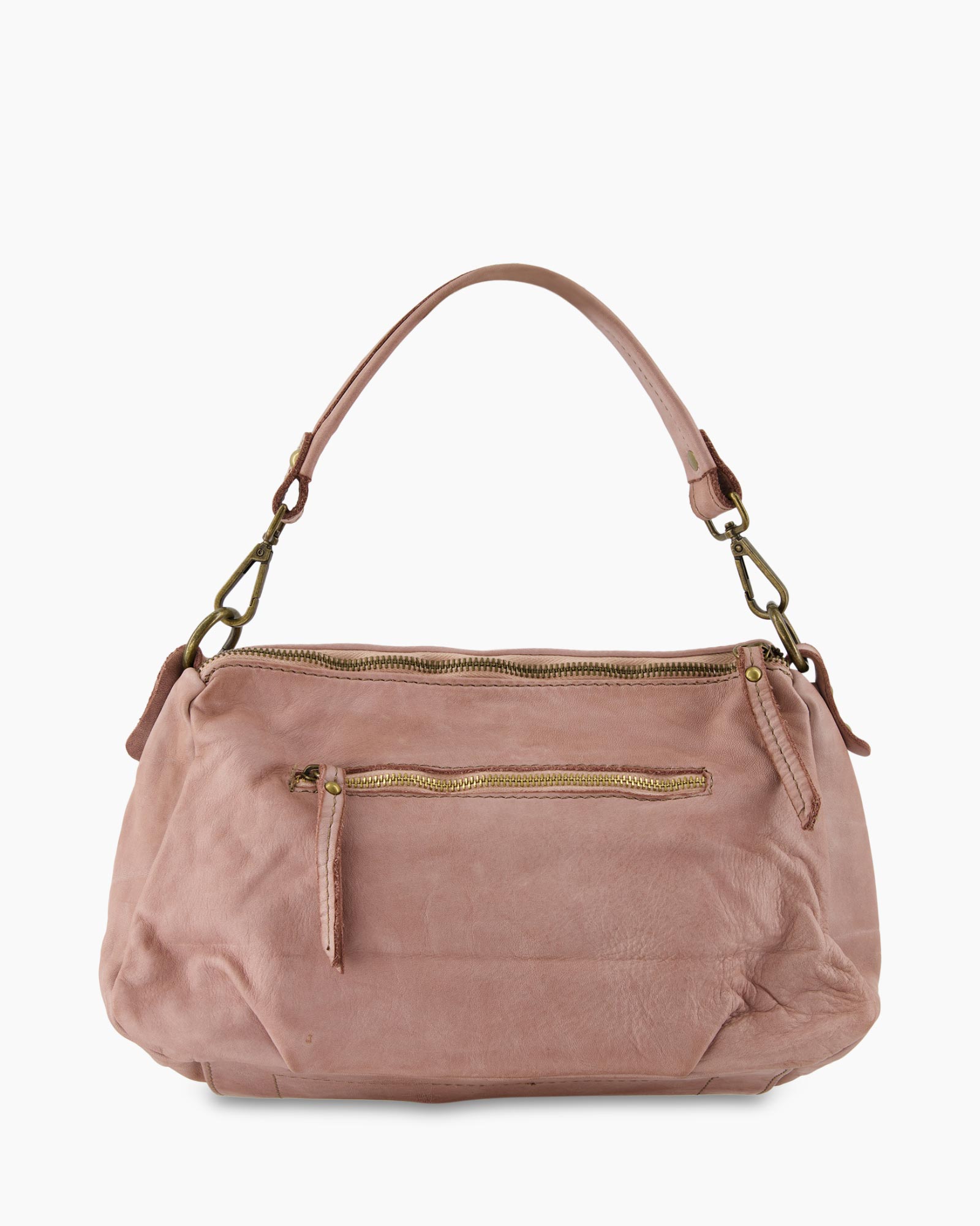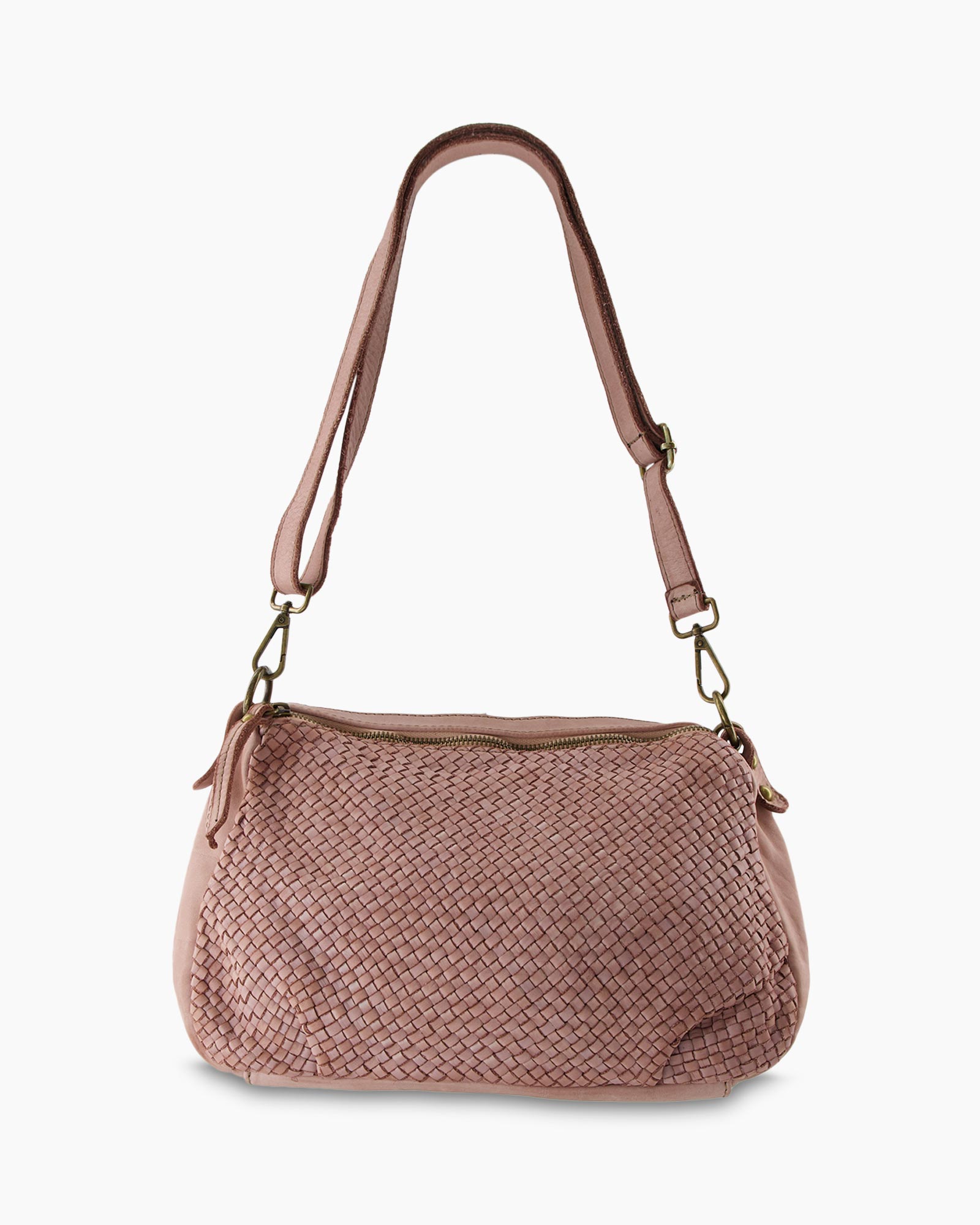 Dit is de Schouder/hand Tas Ficulle Roze van d’Arc, een tas die direct laat zien waar puur vakmanschap voor staat. De zachte oudroze tint geeft dit item een heerlijke uitstraling en de vorm valt soepel door het gebruik van boterzacht leer. Kijk je naar de voorkant, dan zie je direct het kenmerkende vlechtwerk dat de tas veel karakter geeft. De achterzijde is glad afgewerkt en biedt jou een praktische ritszak voor spullen die je snel wilt pakken. De korte schouderband hangt aan robuuste goudkleurige kettingdetails die je direct opvallen. Je draagt deze tas gemakkelijk de hele dag door en voegt zo direct een zachte kleur toe aan je outfit.