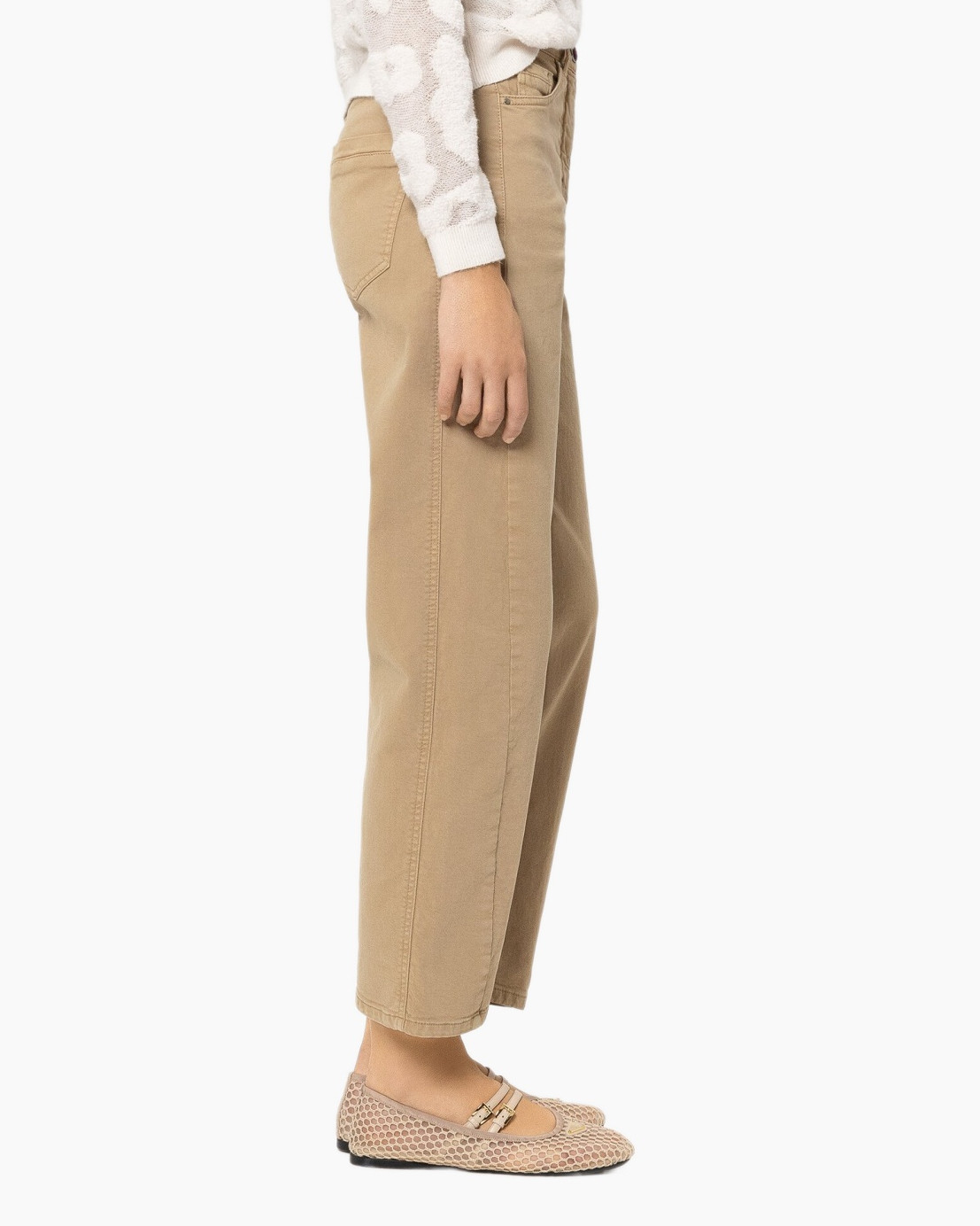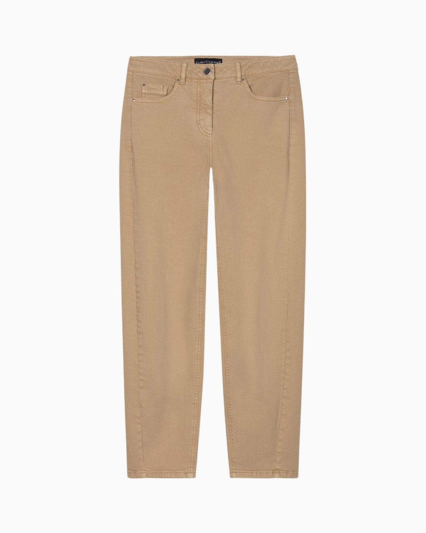 Deze lichtbruine broek vormt een sterke basis voor je zomergarderobe. De katoenmix voelt stevig aan en geeft bewegingsvrijheid door de rek. Rechte pijpen die op de enkel vallen zorgen voor een eigentijdse vorm. Naden en zakken sieren de voorkant.