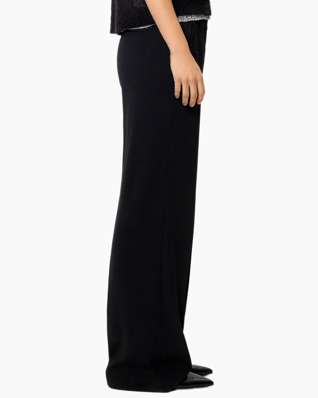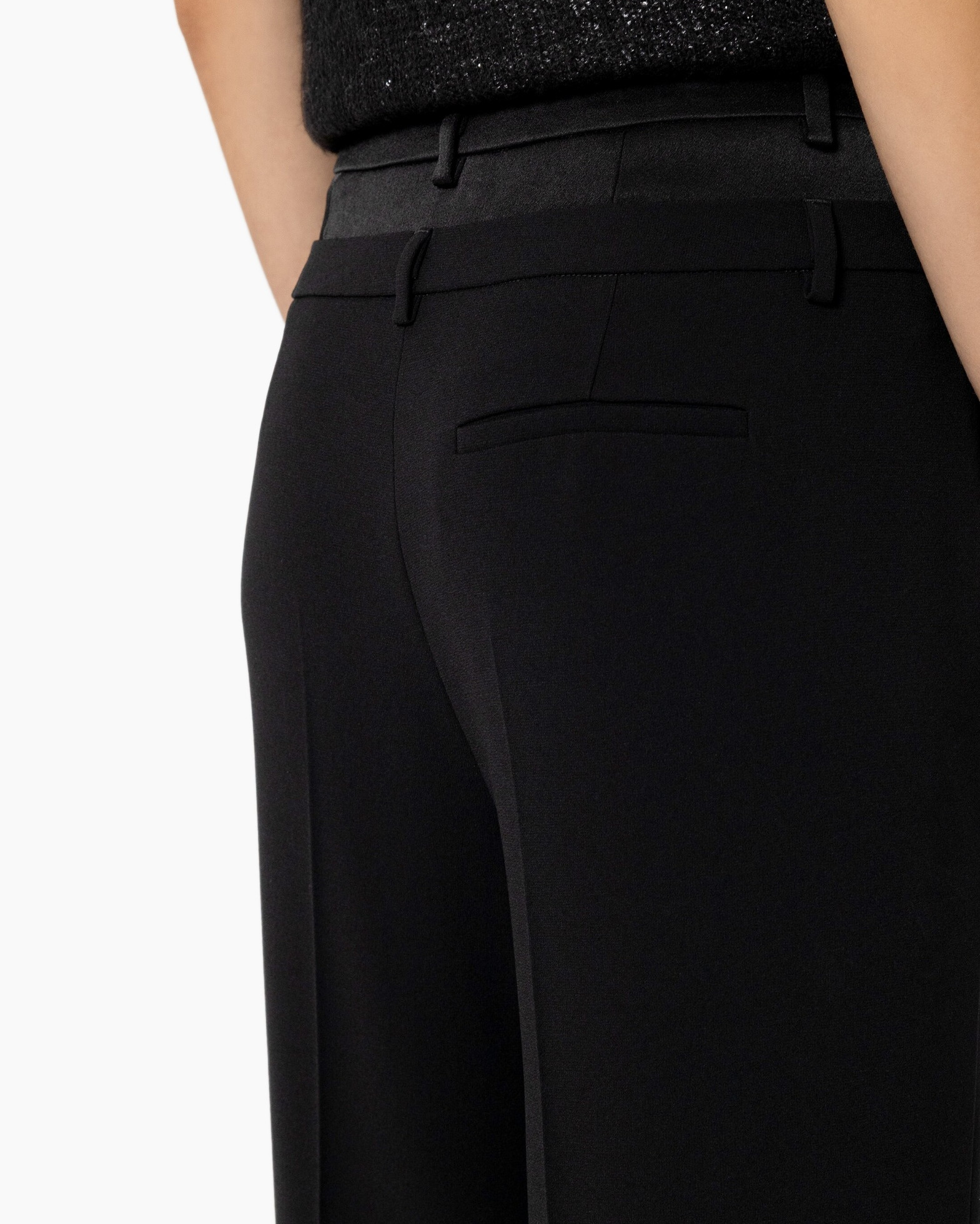 Je draagt deze broek met een glanzende top en hakken voor een elegante avond uit.