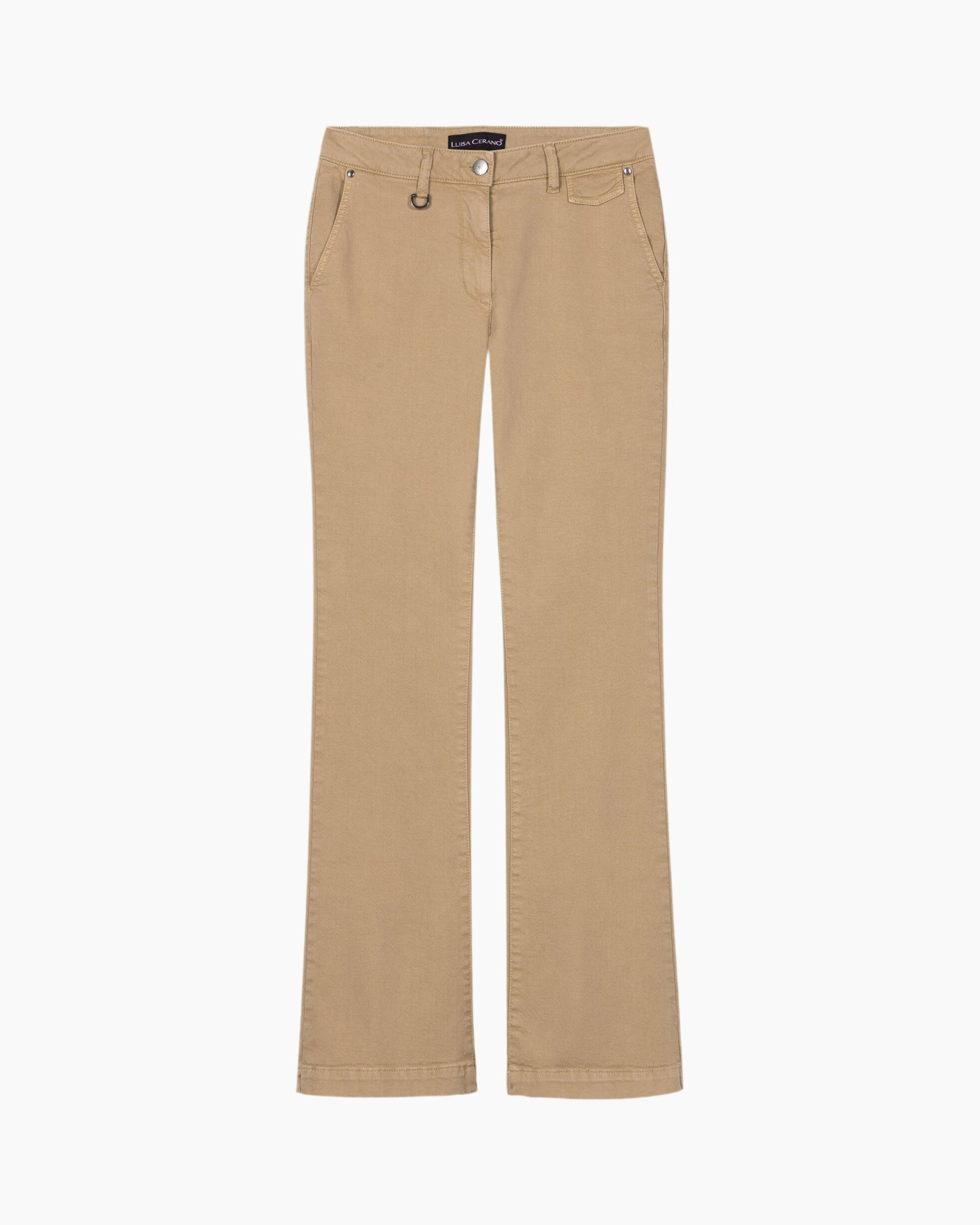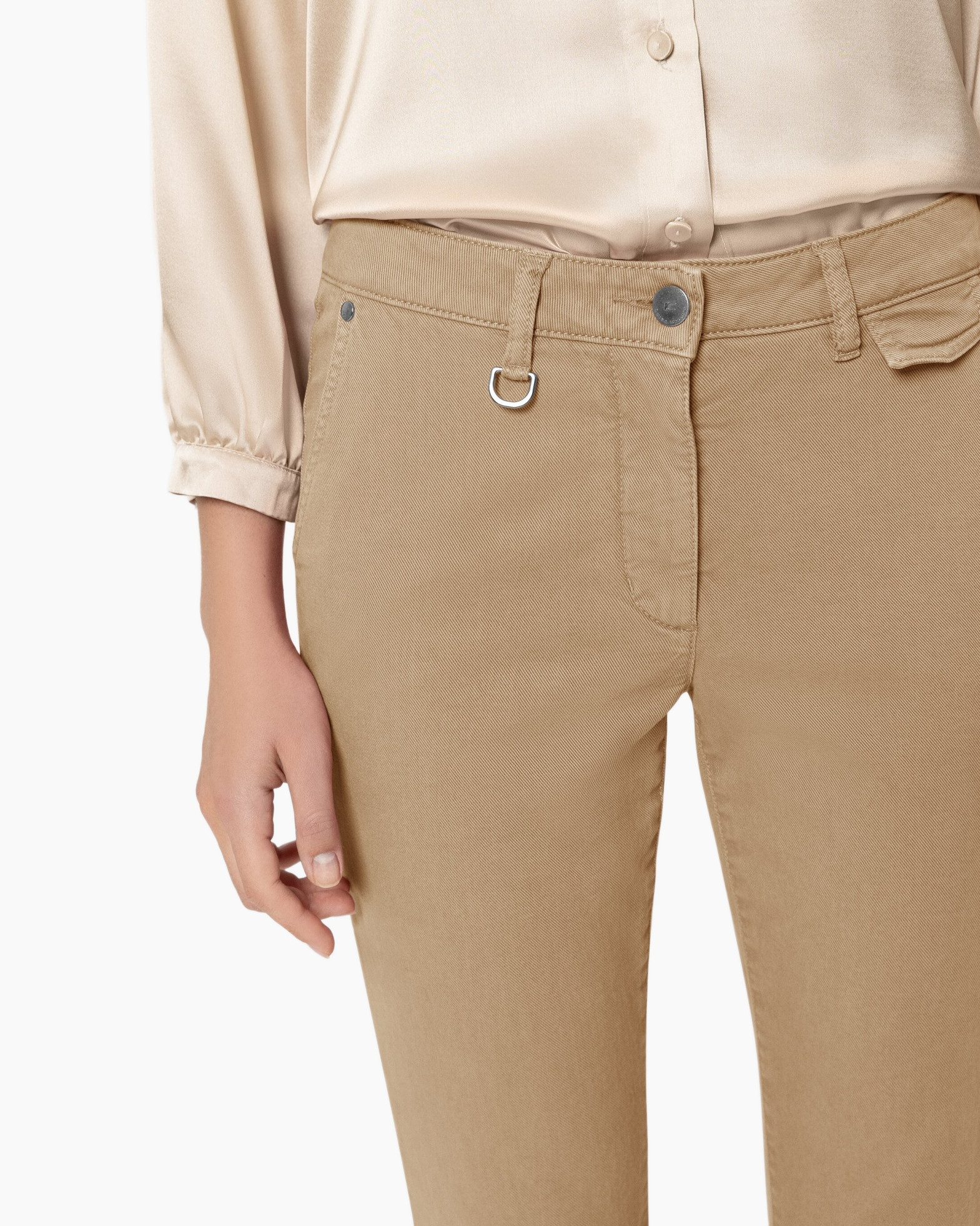 Deze lichtbruine broek biedt een verfijnde basis voor zonnige lentedagen. Het hoogwaardige katoen voelt prettig aan en behoudt de vorm. De fijne weving geeft de stof een rijke diepte. Een metalen detail aan de riemlus trekt de aandacht.