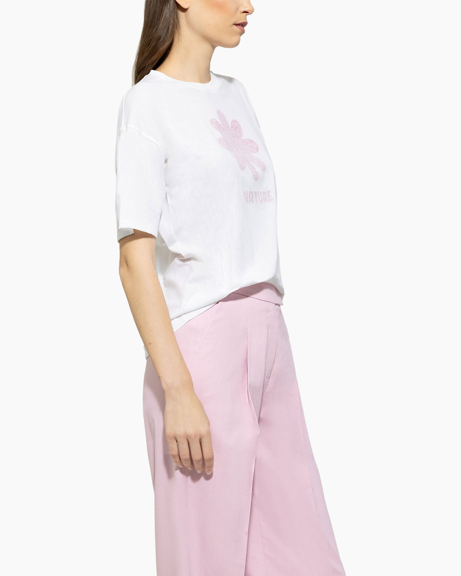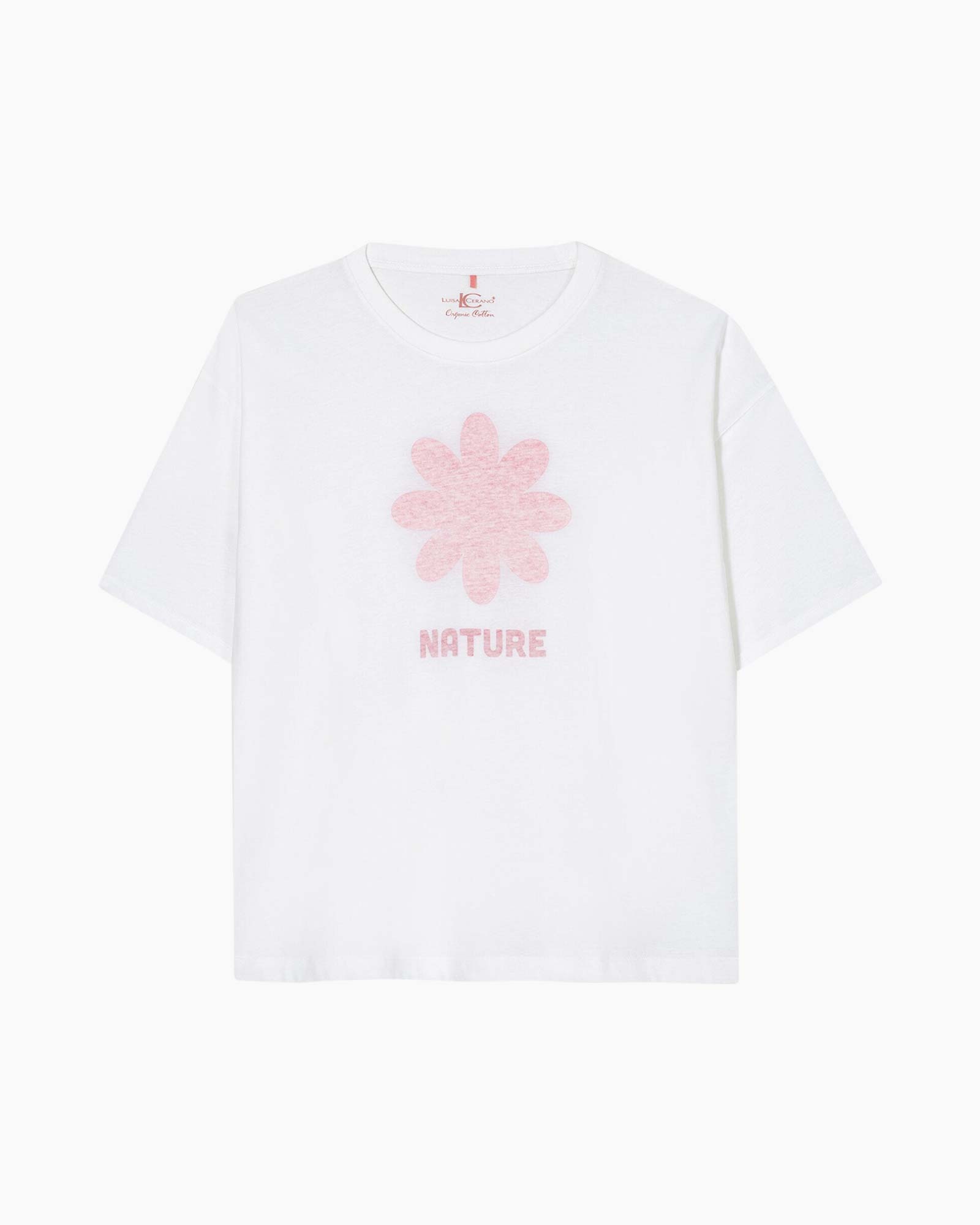 T-shirt van gecertificeerd biologisch katoen in een iets oversized silhouet. Het shirt met ronde hals is aan de binnenkant bedrukt met een statement-graphic.