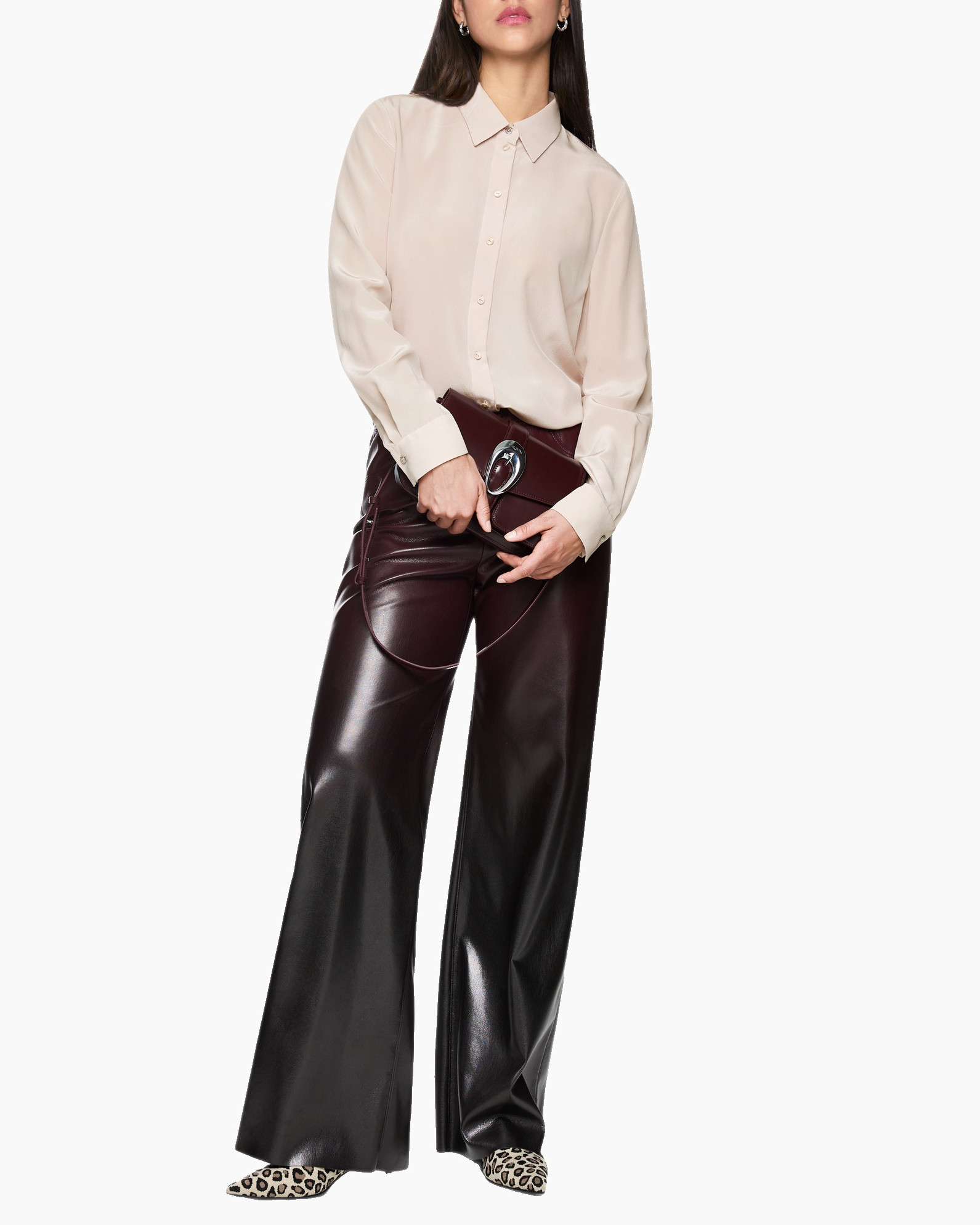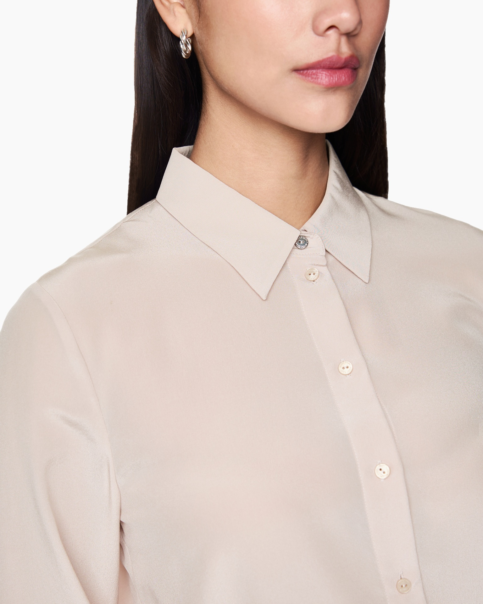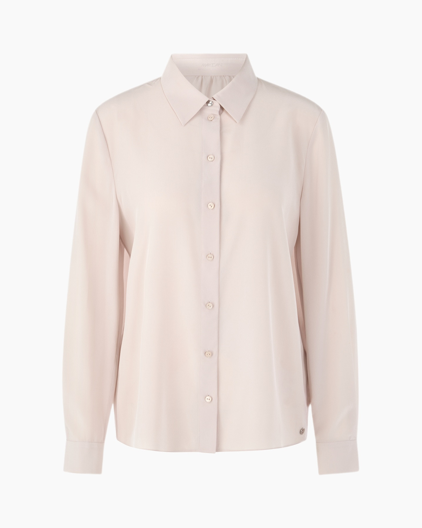 Elegante blouse met een vloeiende drapering. Het hoogwaardige zijden materiaal zorgt voor een prachtige look. De blouse heeft een los model en elegante manchetten met één knoop. De logohanger aan de zoom voegt een accent toe.