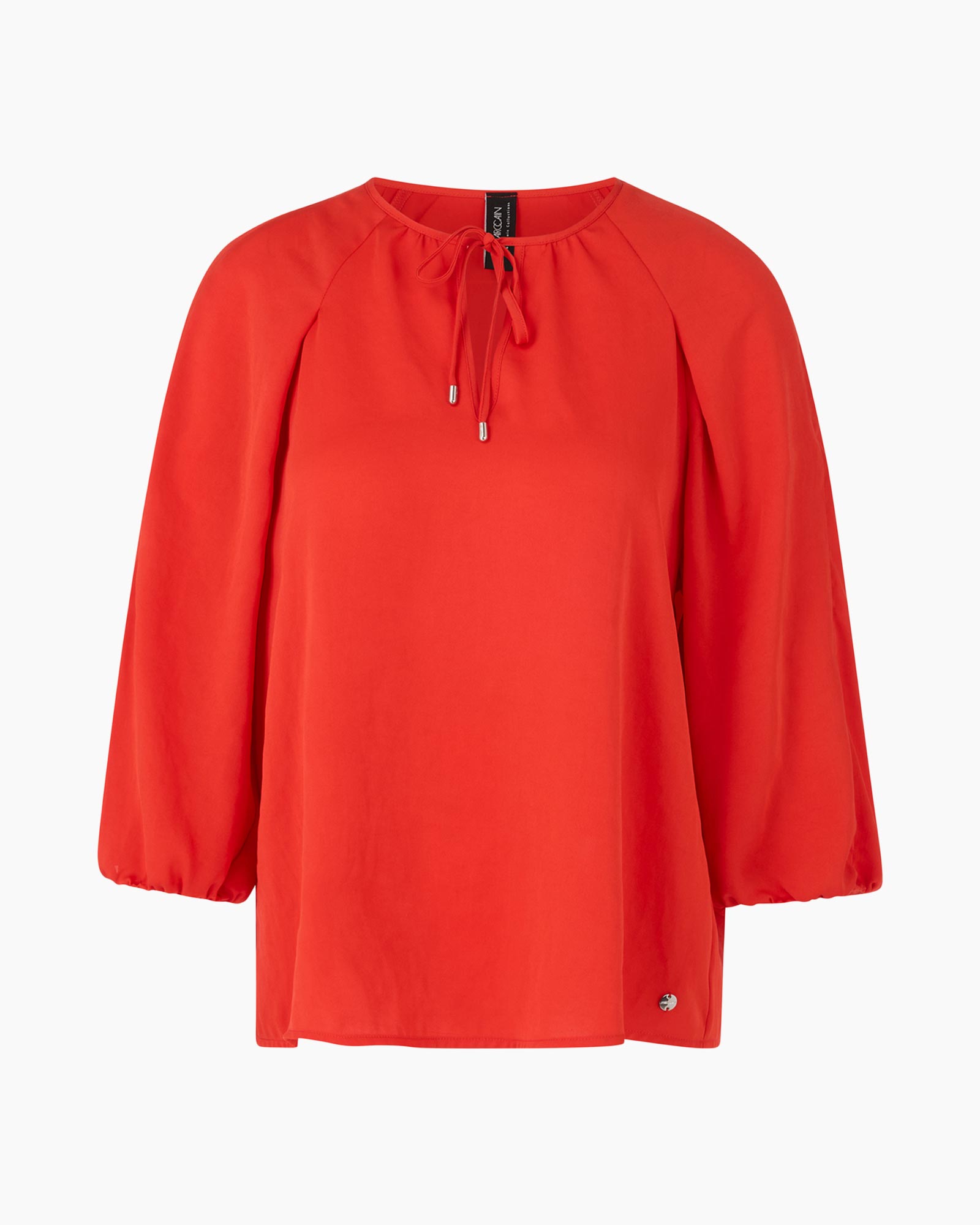 Wijde, zacht vloeiende blouse van voornamelijk gerecycled polyester. De vorm is gebaseerd op een slim geconstrueerde raglan. De halslijn heeft een ronde hals, split en lintsluiting. Het model is verantwoord geproduceerd en draagt het duurzaamheidslabel “Rethink Together”.