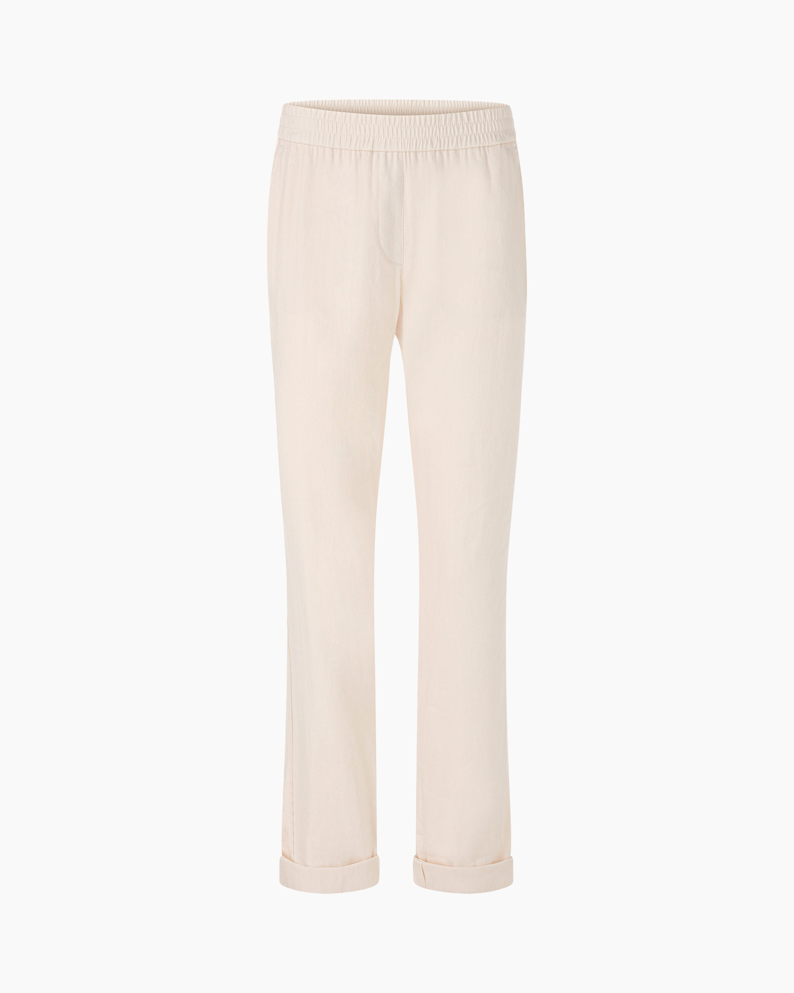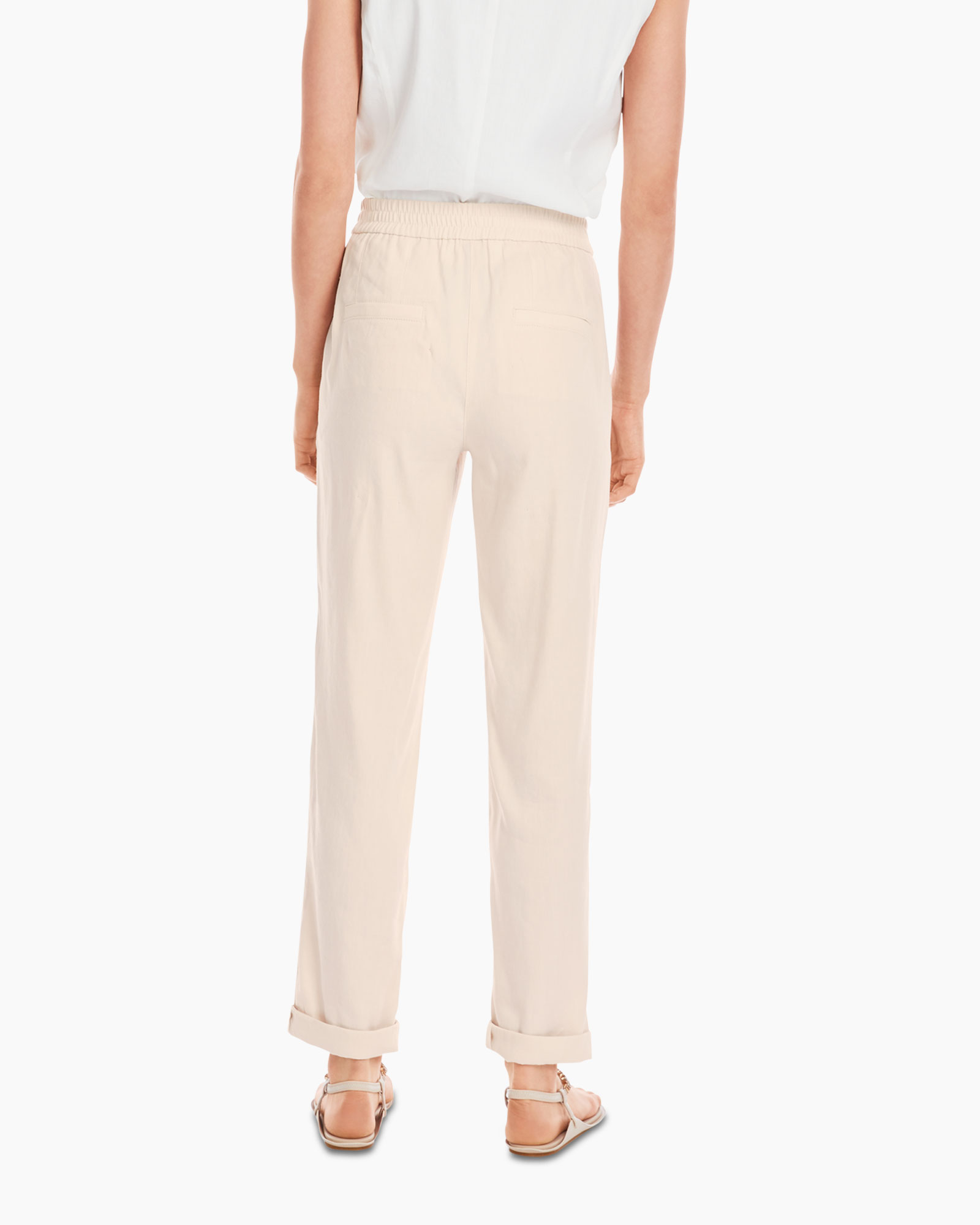 De lichtgewicht mix van linnen en viscose maakt het model RHODOS perfect voor de zomer. Het heeft een bijpassende relaxte snit. De pijpen zijn 7/8 lang en hebben een casual omgeslagen zoom. De zijzakken en elastische tailleband dragen bij aan de comfortabele stijl, net als het zachte gevoel.