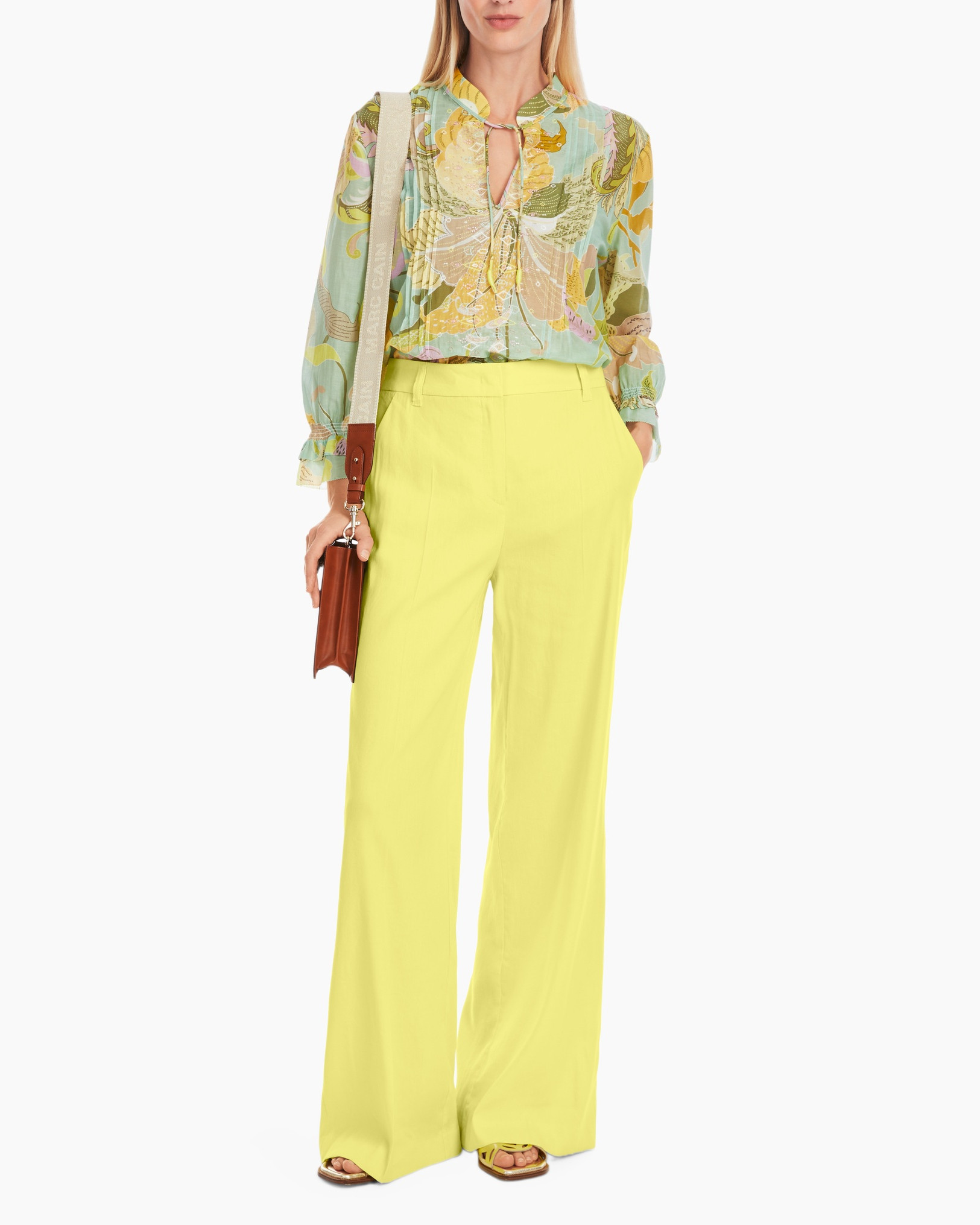 Het WAUKEE-model is een cool zomermaatje. Deze broek heeft een wijde snit en een extra lange pijp. De tailleband is hoog aangebracht en sluit met een rits en haak. Opgestikte achterzakken en zijzakken met split benadrukken de stijl. Deze broek valt ook op door de lichtgewicht mix van linnen en viscose.
