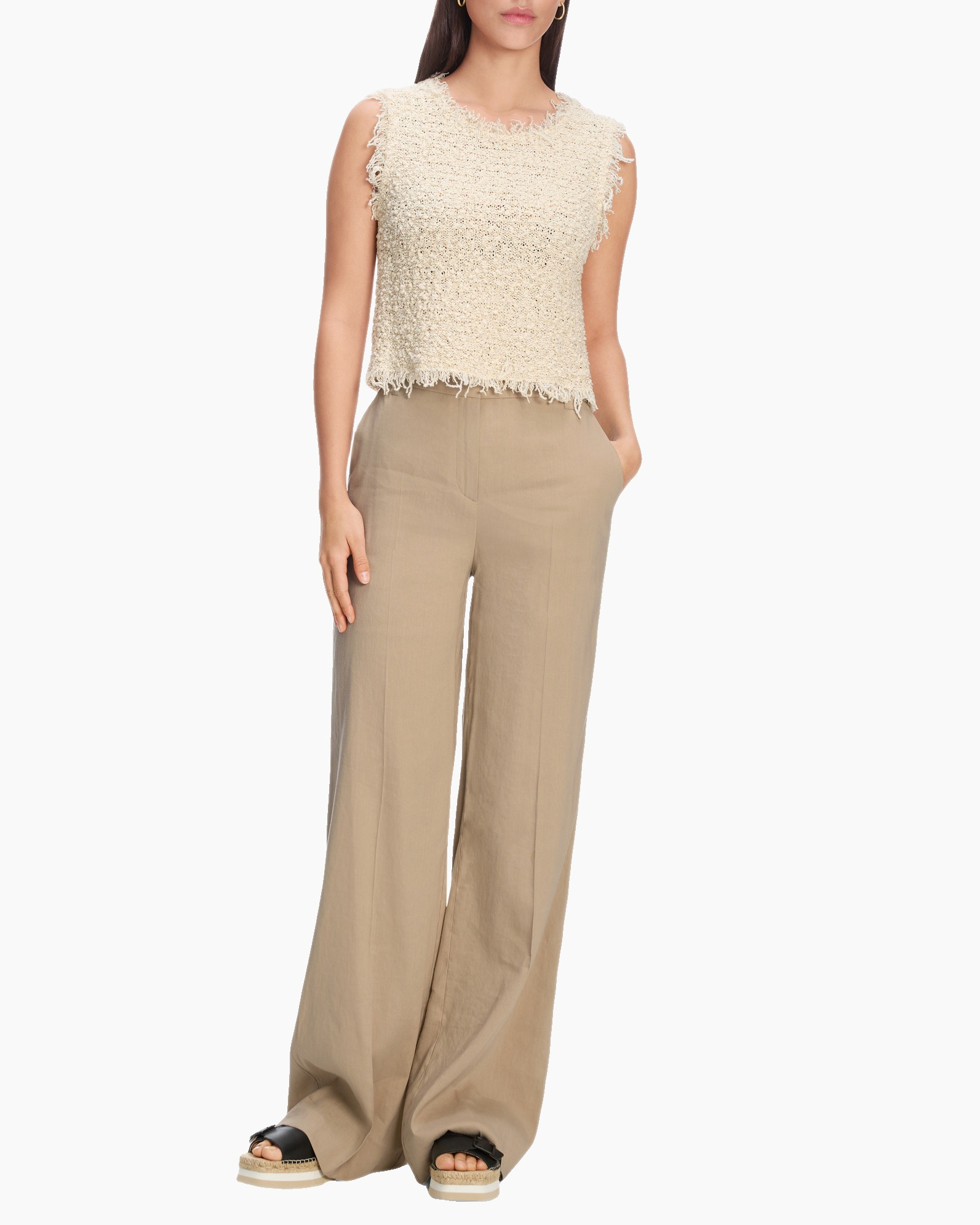 Het WAUKEE-model is een cool zomermaatje. Deze broek heeft een wijde snit en een extra lange pijp. De tailleband is hoog aangebracht en sluit met een rits en haak. Opgestikte achterzakken en zijzakken met split benadrukken de stijl. Deze broek valt ook op door de lichtgewicht mix van linnen en viscose.