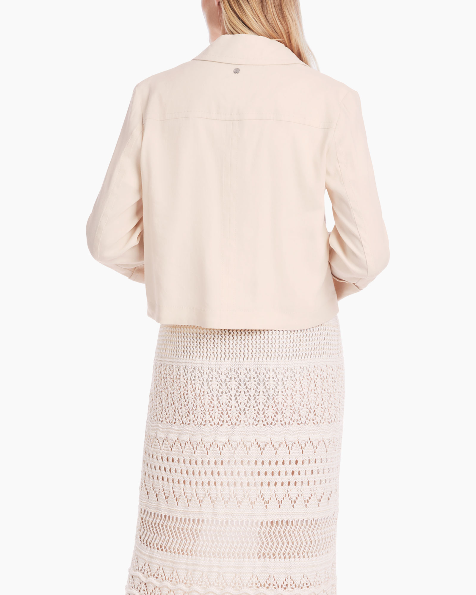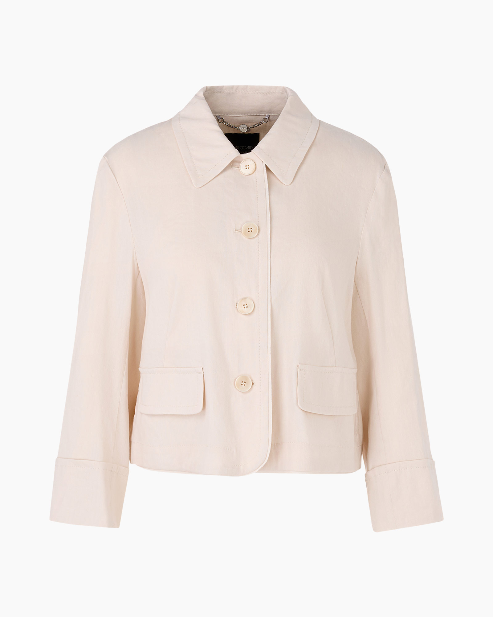 Dit lichtgewicht jack van een linnen/viscosemix is koel en zomers. Het heeft vormgevende coupenaden voor en deelnaden achter. De manchetten en kraag zorgen voor een sportieve touch. Het jack heeft een knoopsluiting en klepzakken.