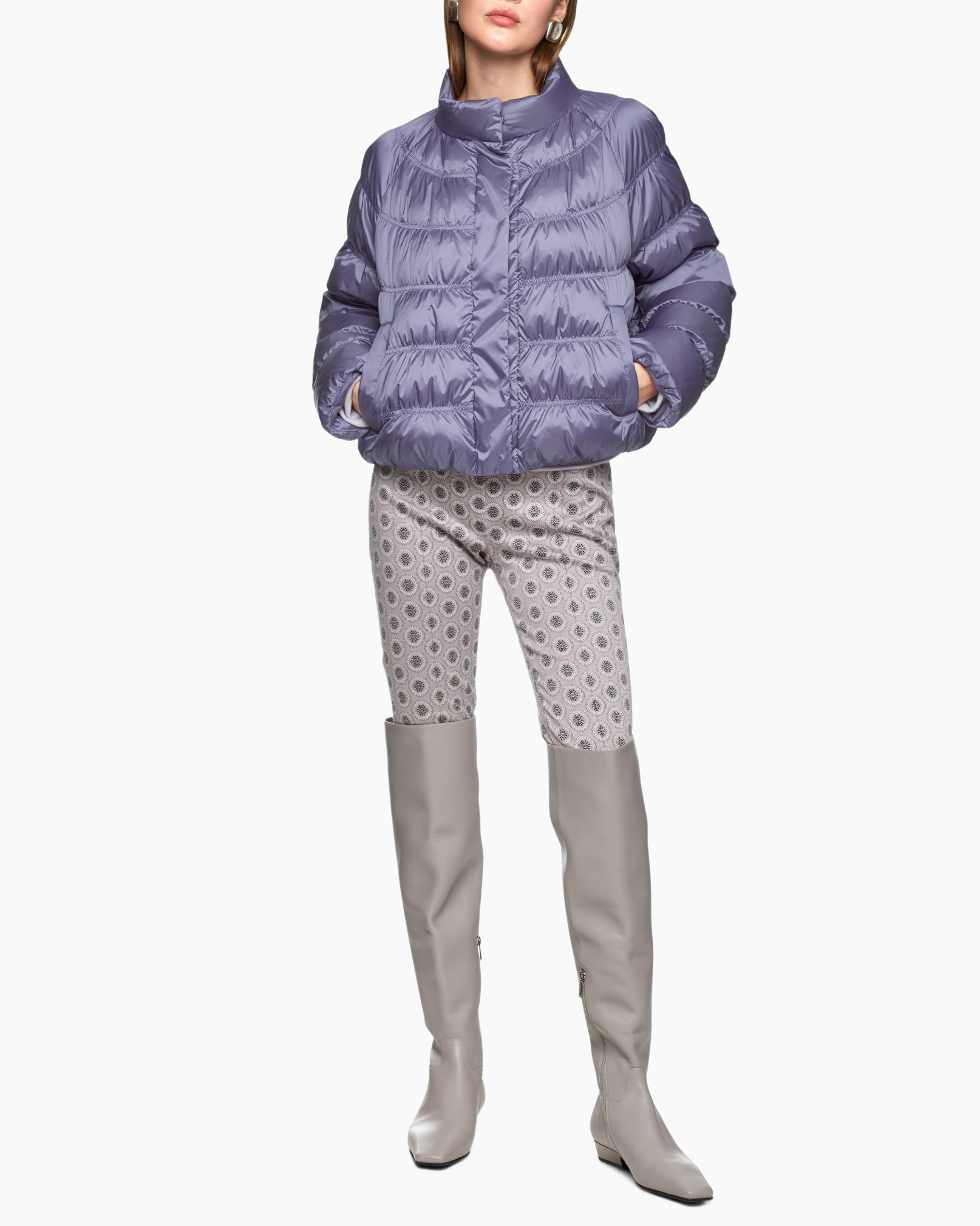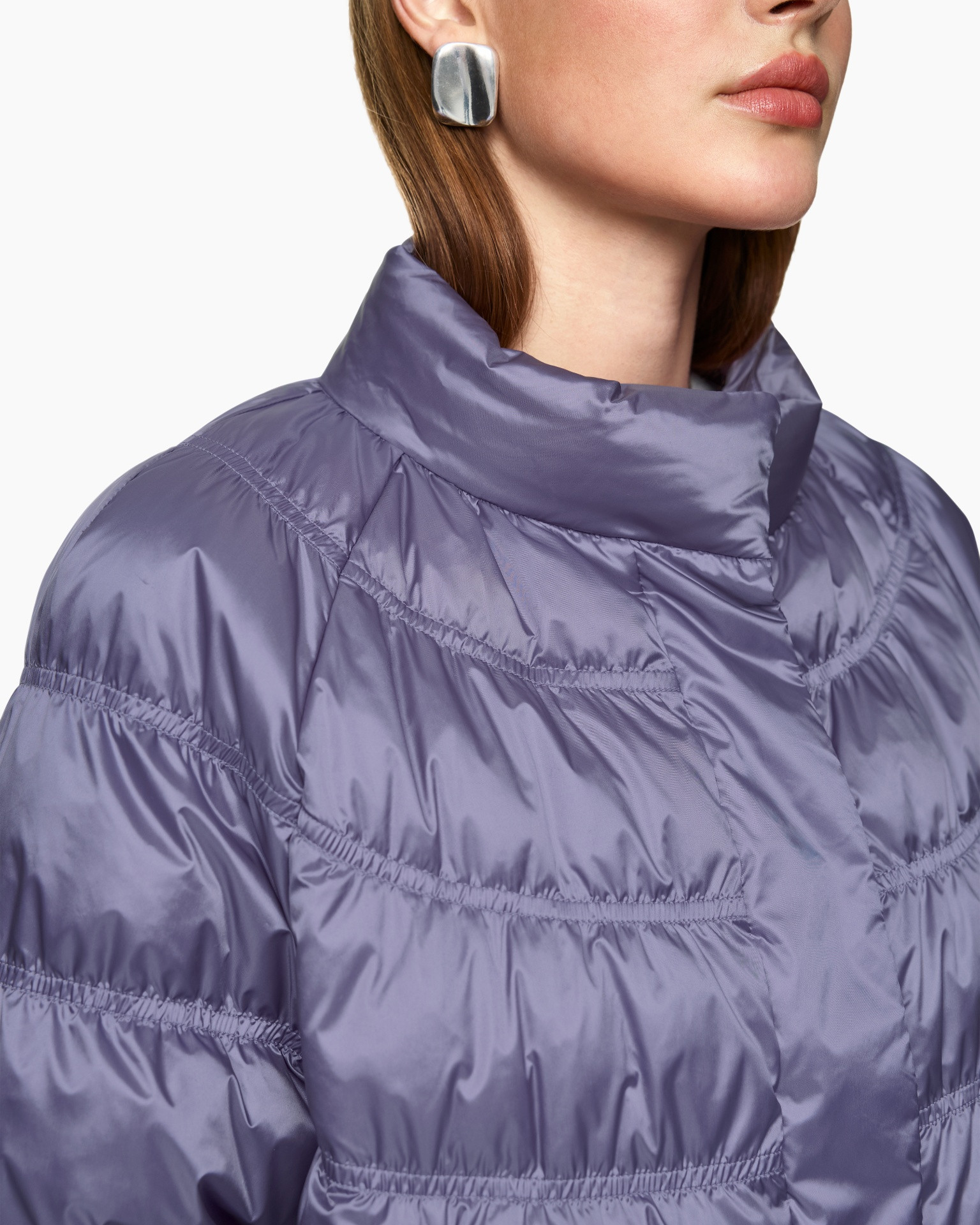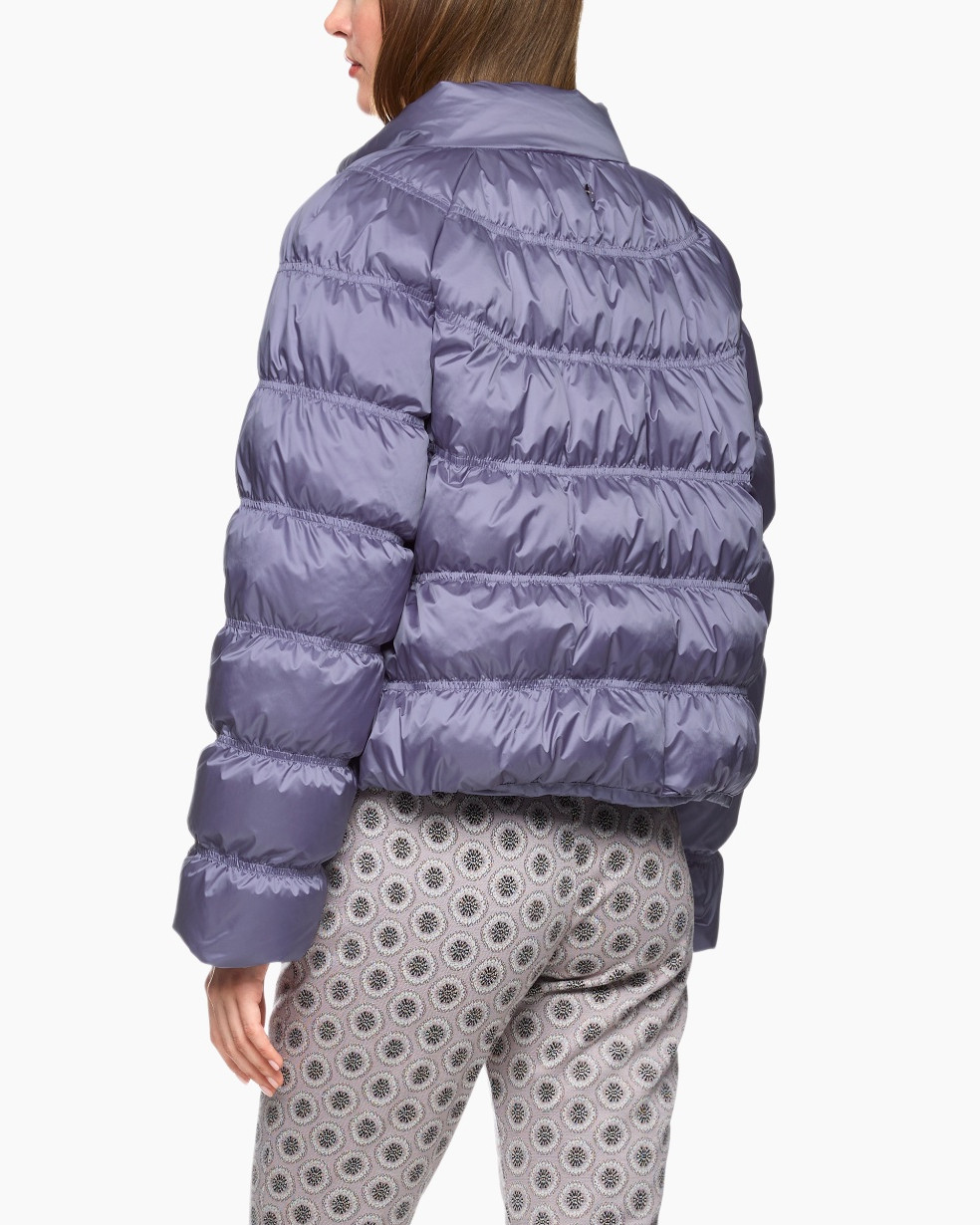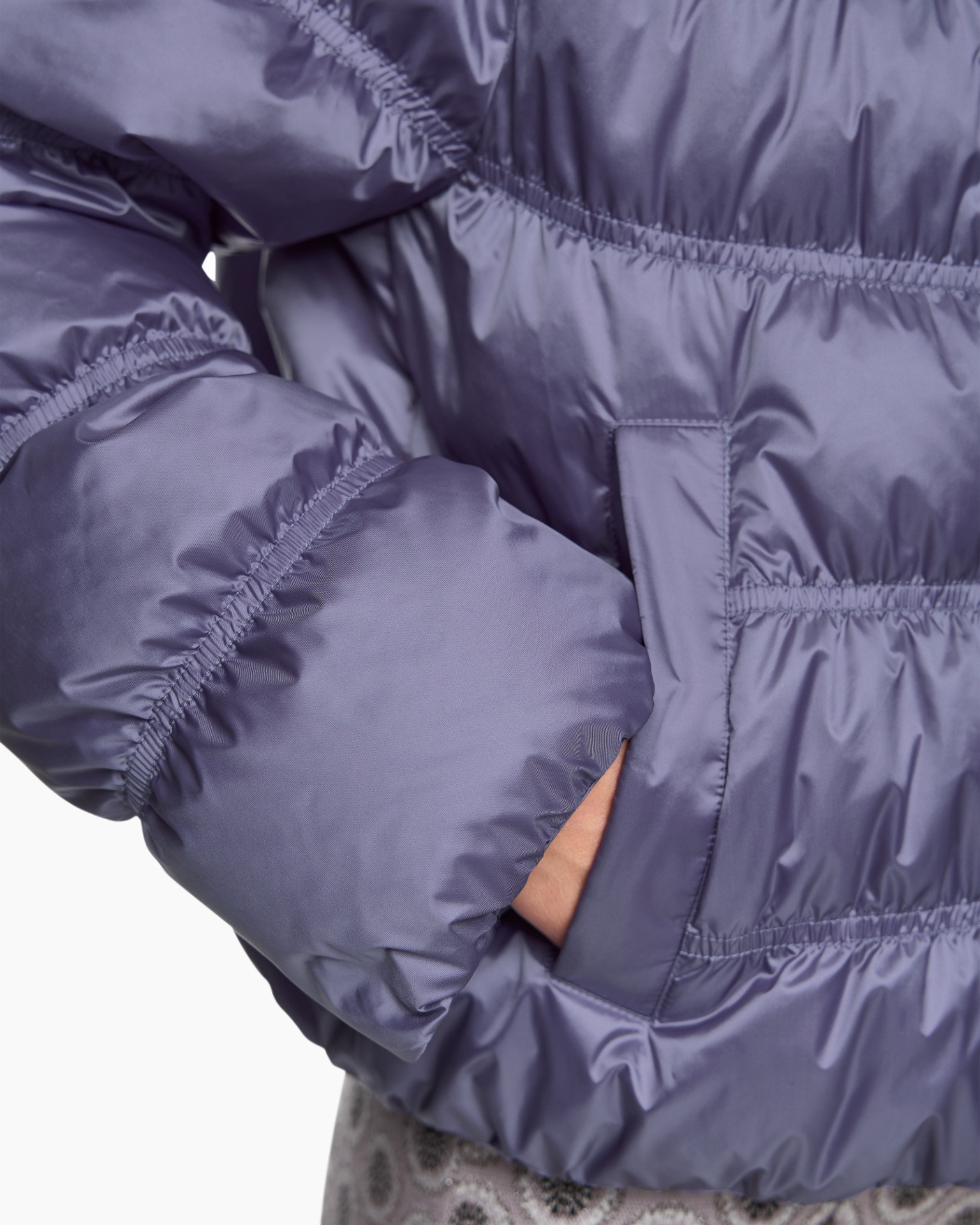 De wijde pasvorm en raglanmouwen geven deze jas met synthetisch dons een relaxte look. Opvallende details zijn de glanzende stof en het bijzondere stikpatroon. Daarnaast heeft de jas een opstaande kraag en een verborgen knoopsluiting. Het artikel draagt het duurzaamheidslabel 'Rethink Together'.
