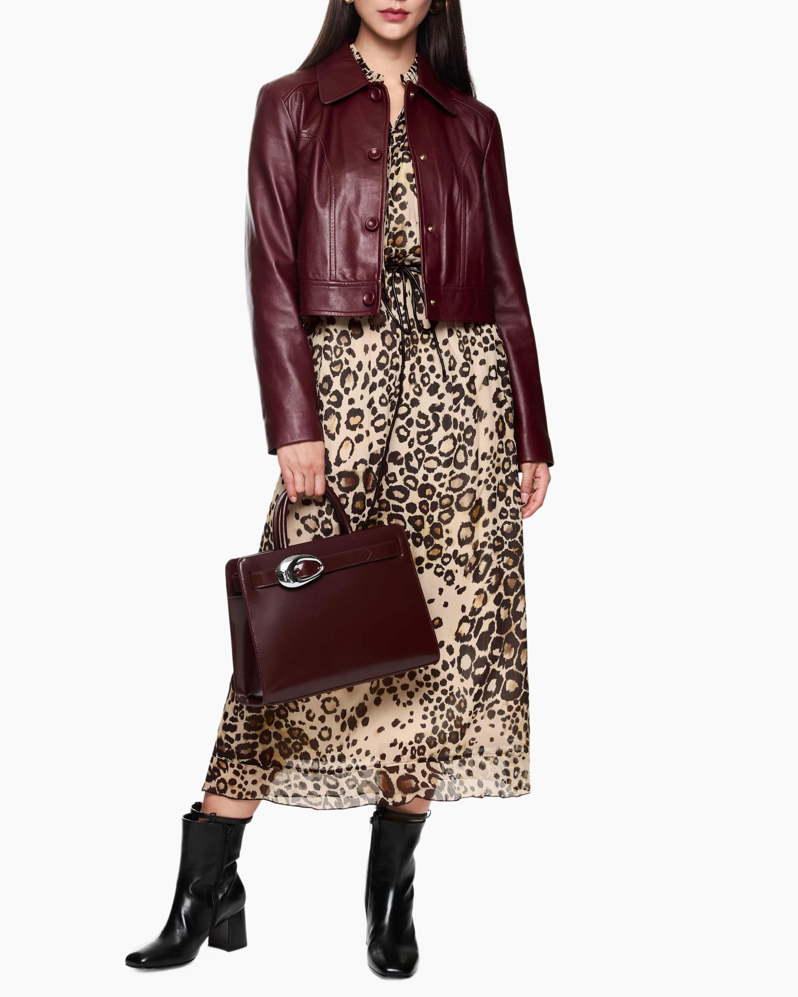 - Het model is 179 cm lang en draagt maat N3/38.