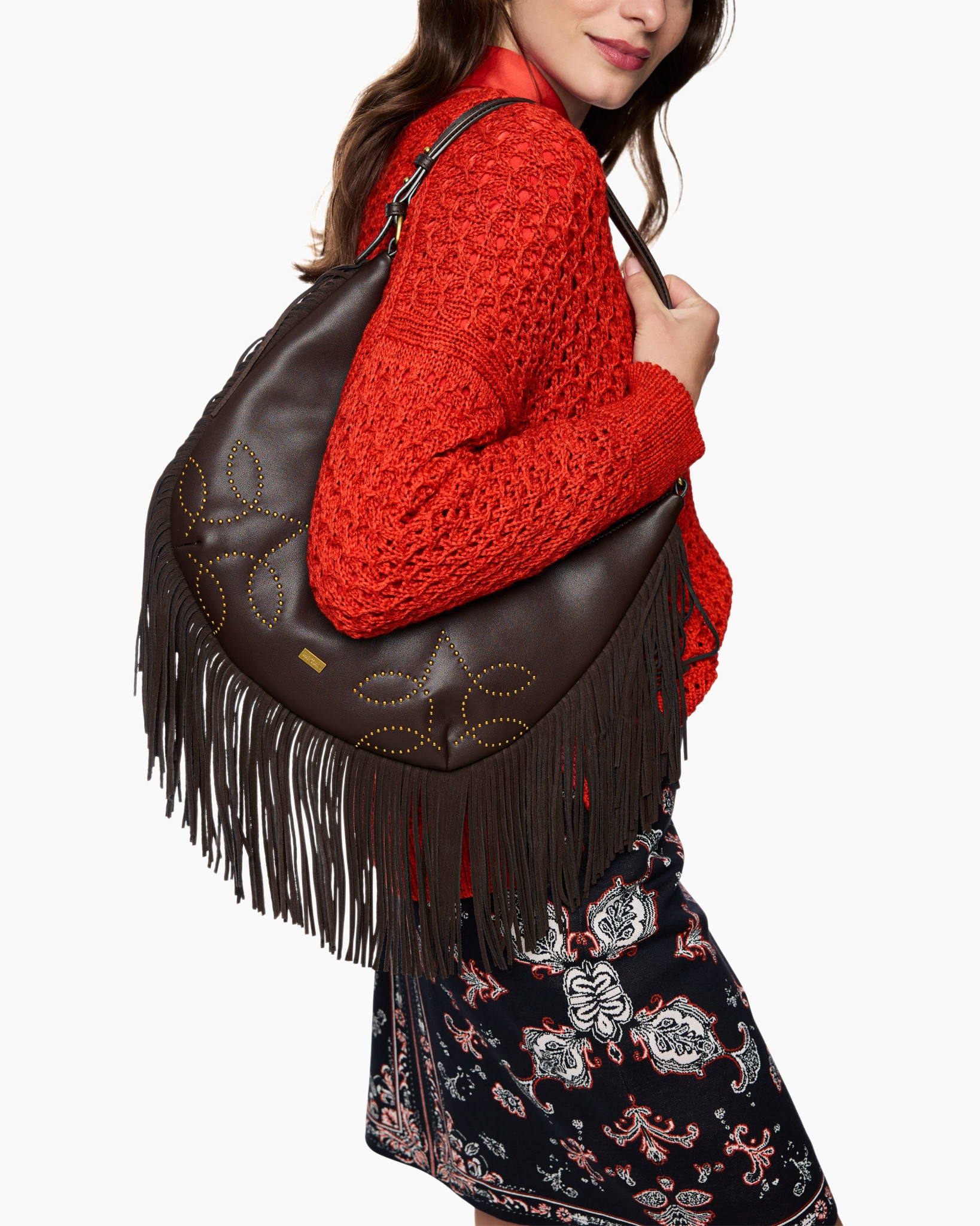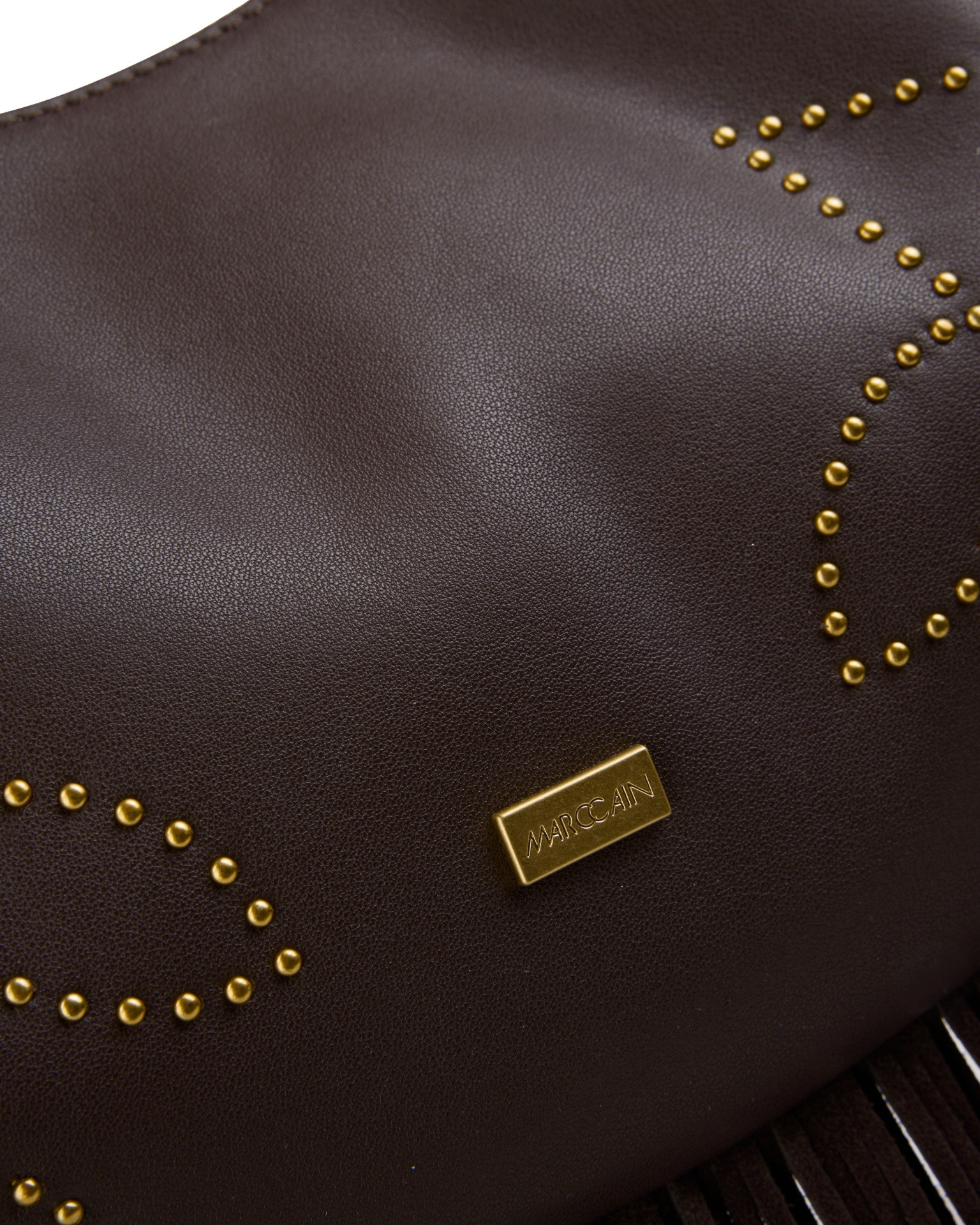 Deze donkerbruine hobo tas brengt karakter in je zomergarderobe. Het soepele materiaal voelt prettig aan en beweegt mee bij elke stap. Een goudkleurig plaatje met de tekst MARCCAIN siert de voorzijde. De diepe kleur vormt een warme basis.