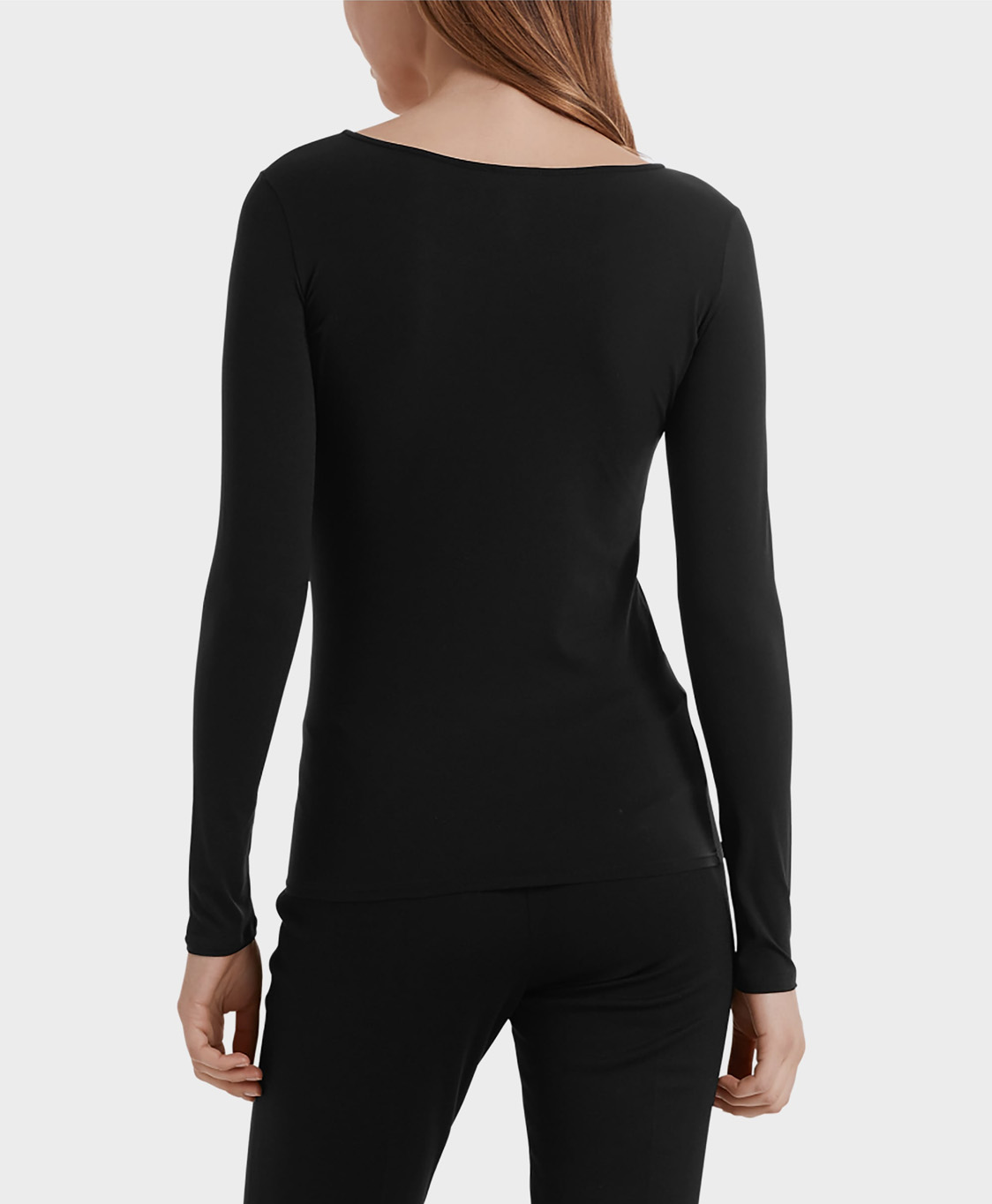Hoogwaardige longsleeve uit de Marc Cain Essentials collectie met ronde hals. Het T-shirt is gemaakt van een superfijne, decent transparante mix van materialen. Dubbele stiksels bij de manchetten en zoom alsook een glanzende print met logo aan de binnenkant bij de halslijn maken het design van deze basisstijl af.