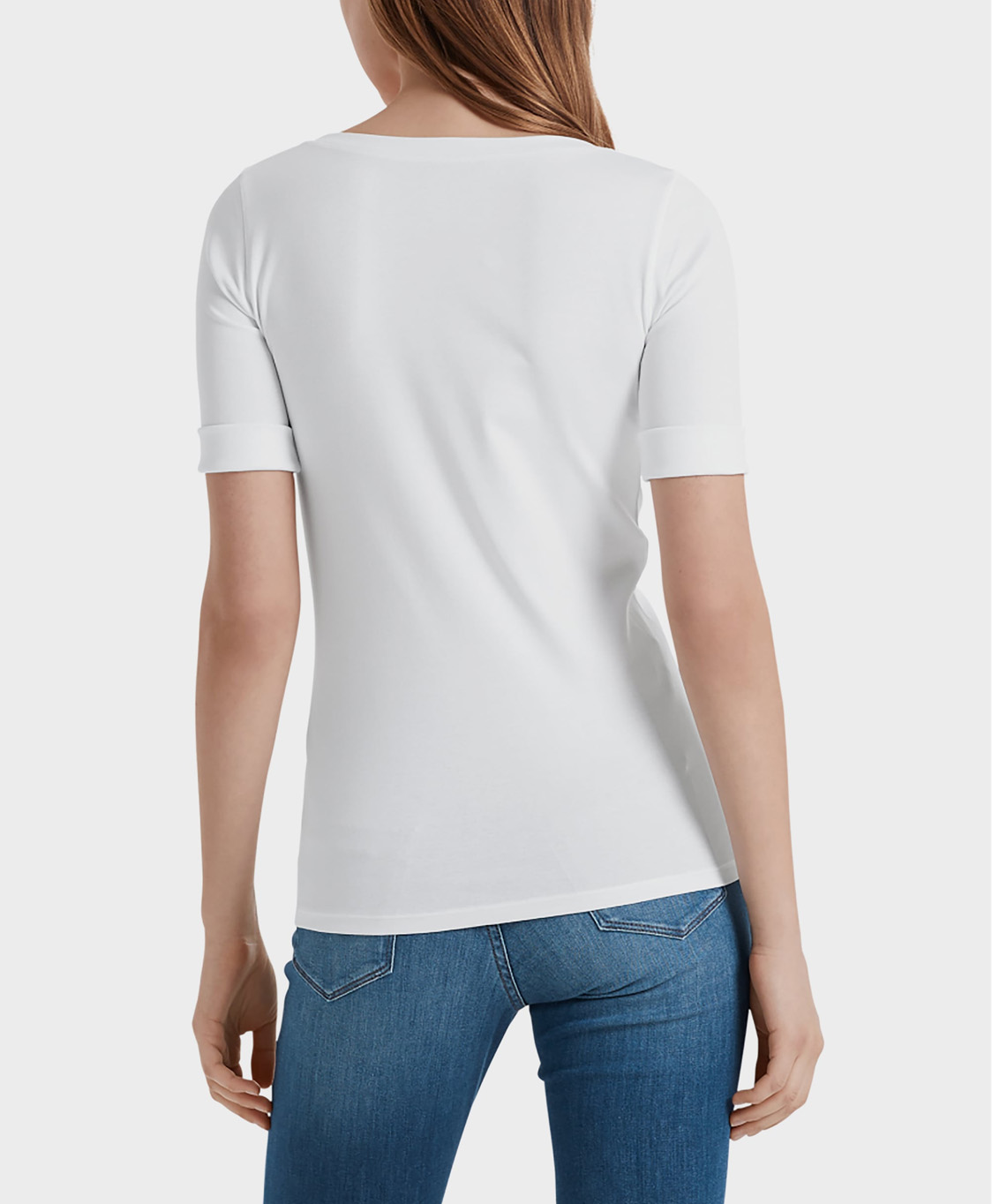 Een eenvoudige stijl in de fijnste kwaliteit uit de Marc Cain Essentials collectie. Het cleane T-shirt met halve mouwen en brede, ronde hals is gemaakt van een zachte stretch-katoen kwaliteit. Op het voorpand zorgt de siersteenapplicatie boven de zoom voor een subtiel accent.