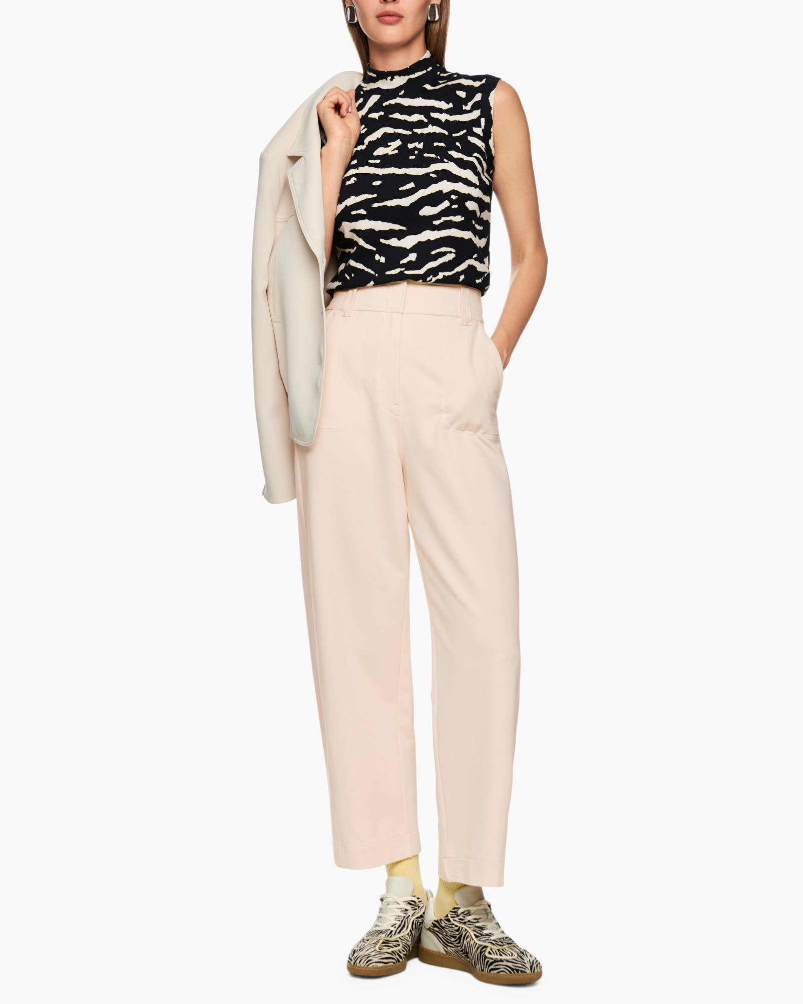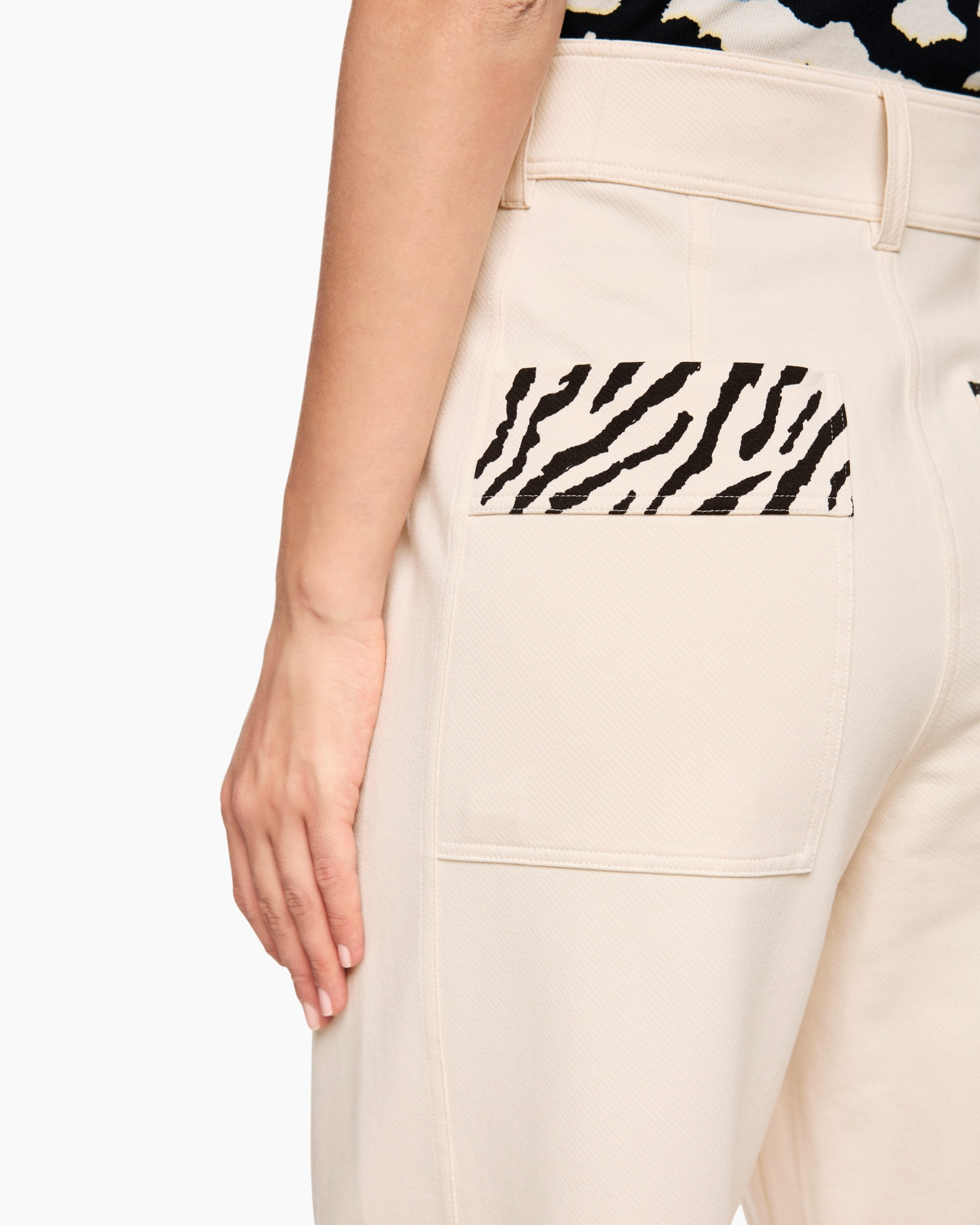 Deze ecrukleurige broek van Marc Cain Sports vormt een fris uitgangspunt voor de zomergarderobe. Het rechte model valt soepel en eindigt boven de enkels. De stevige tailleband biedt ruimte voor een riem. Hoogwaardige stiksels geven een verzorgd karakter.