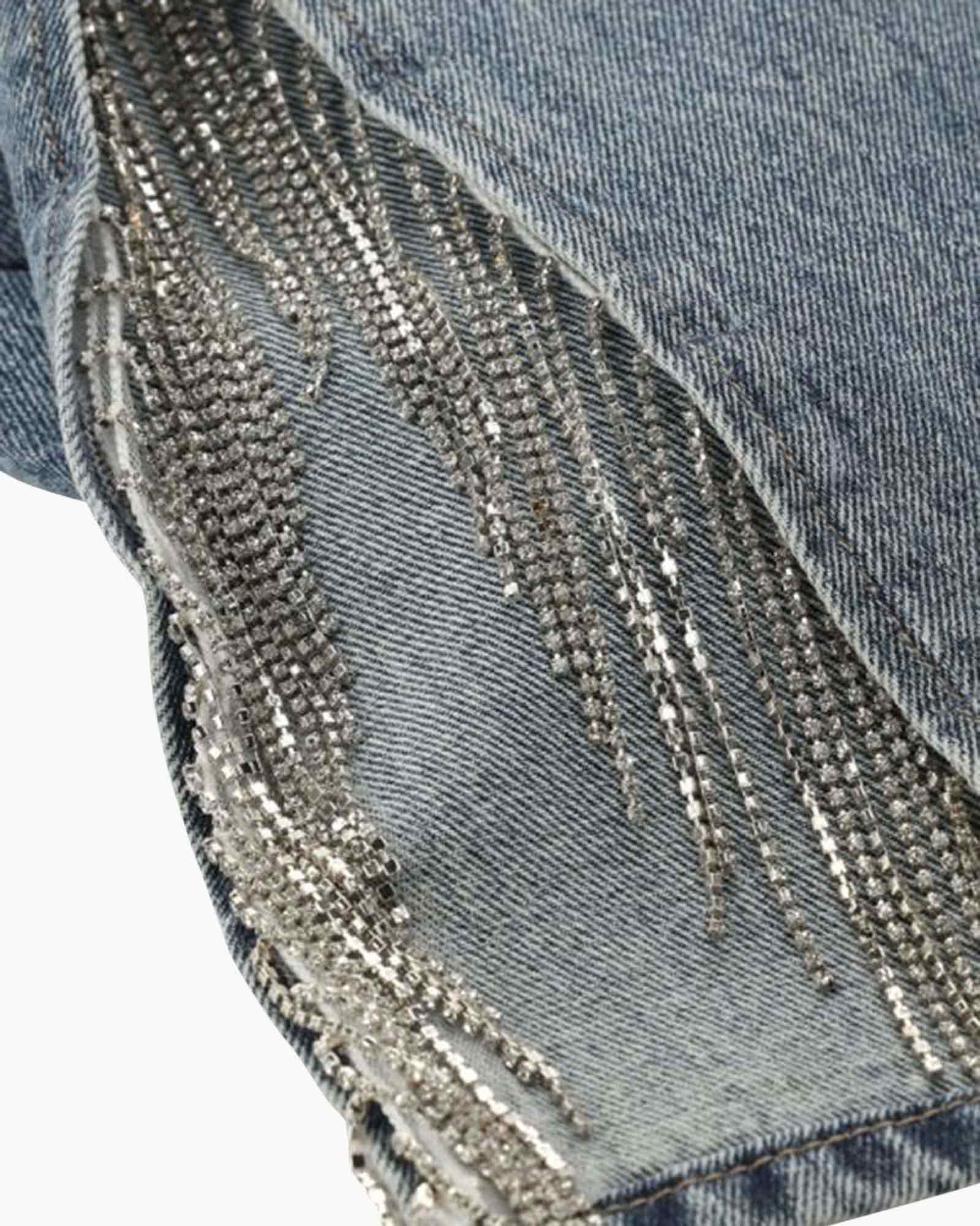 Broek Denim Jeans With Strass Fringes Blauw