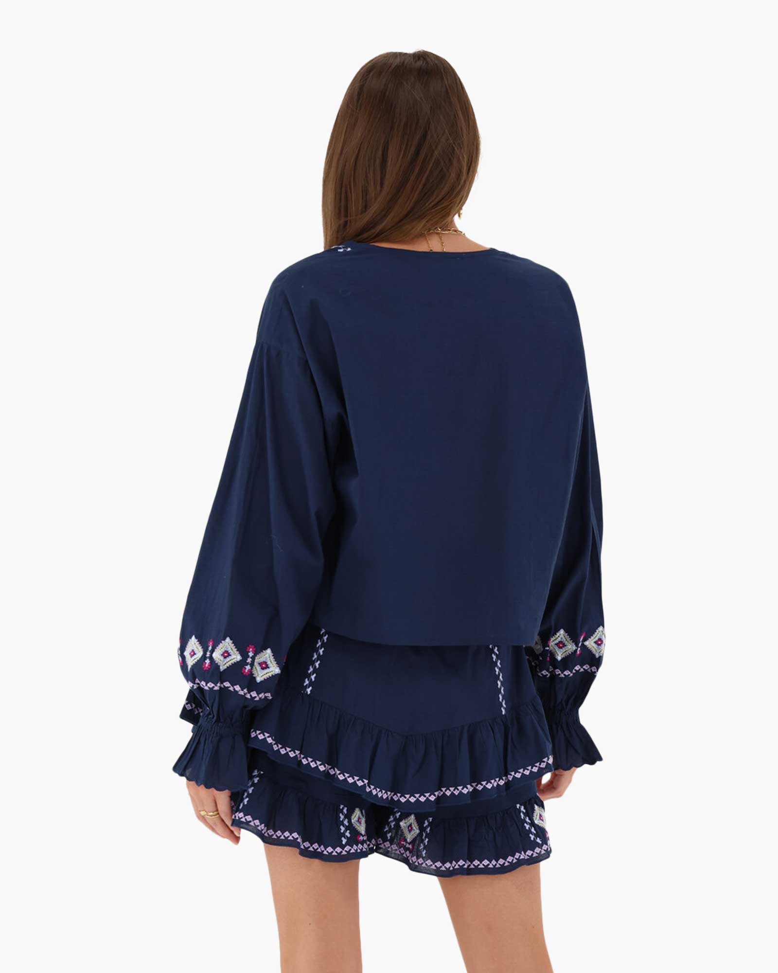 Top With Bows And Embroidery Blauw