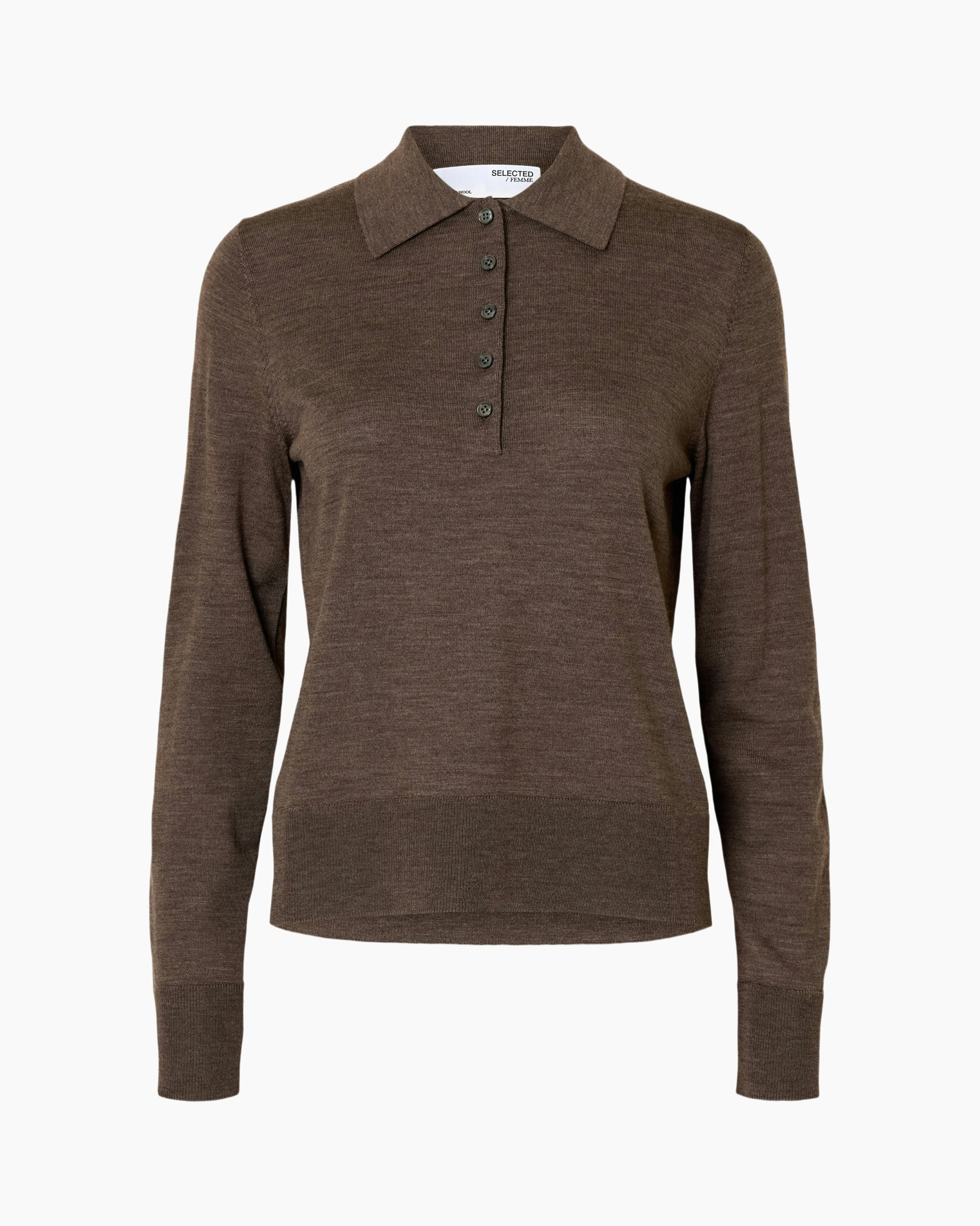 Polo Thea Ls Knit Merino Collar Neck Mauve