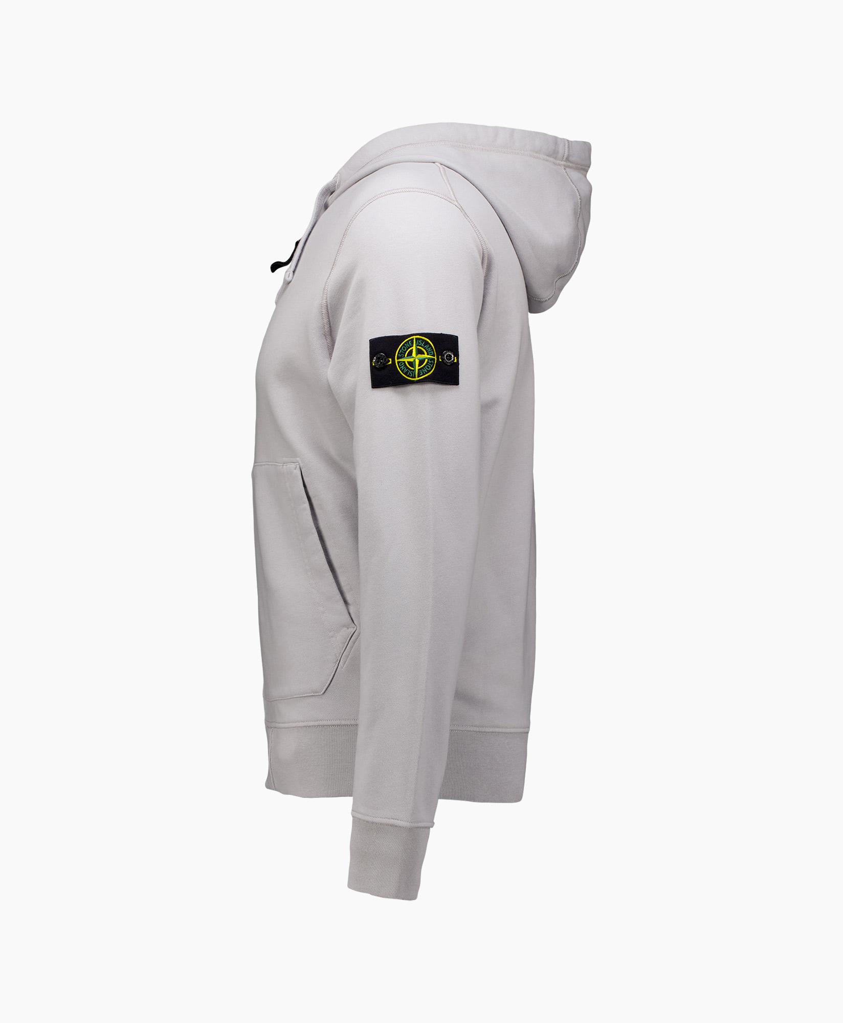 Capuchon met trekkoord. Schuine, opgestikte steekzakken. Stone Island-badge op de linkermouw. Overlocksteken op capuchon, schouders, armsgaten en zijkanten. Lunette met voering onder de halslijn. Geribbelde manchetten en onderband. Ritssluiting. Normale pasvorm.