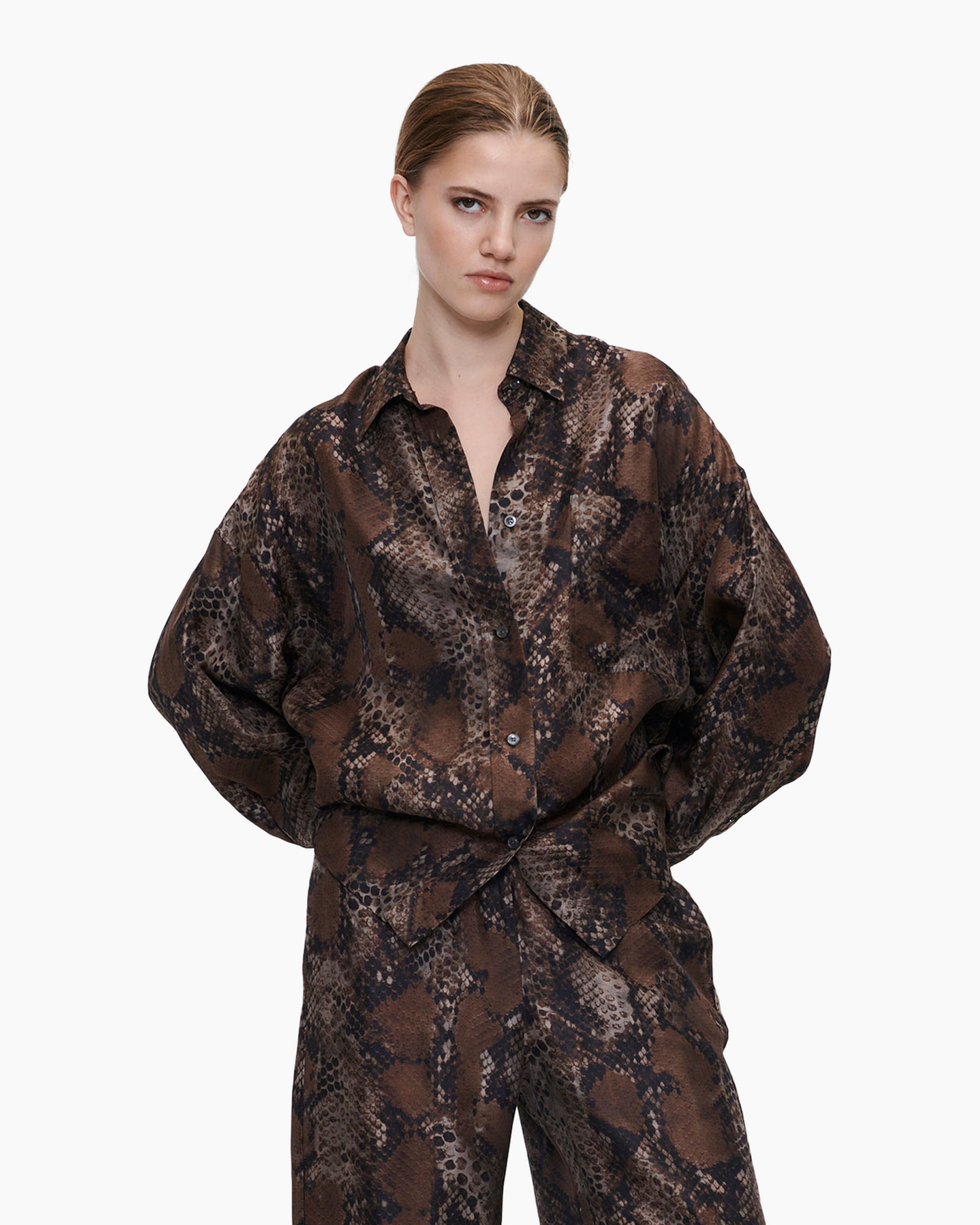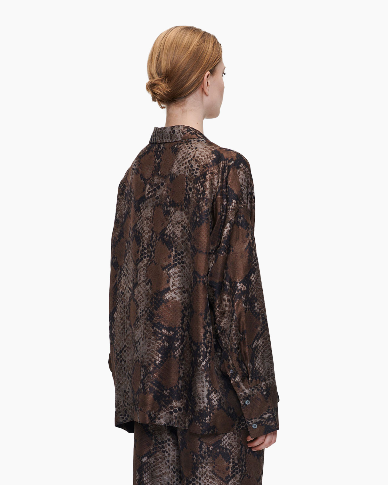 Blouse Silk Print Oversized Bruin