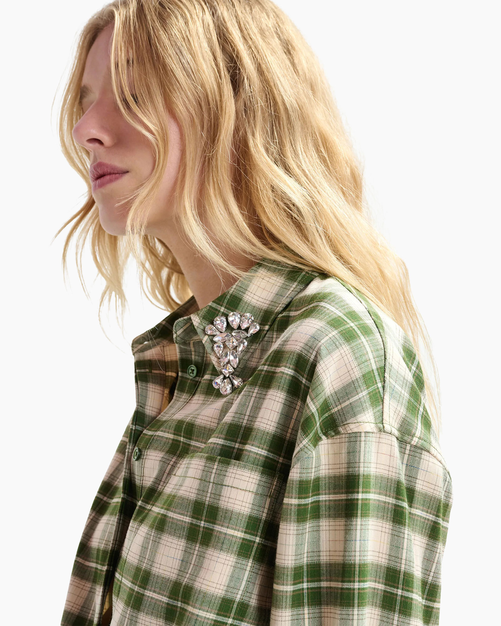 Maxi Jurk Jid Off White van Essentiel Antwerp is een jurk die jou direct opvalt. Dit kledingstuk heeft een ruitpatroon in de kleuren groen en gebroken wit. Je vindt een kraag, een borstzak en knopen aan de voorzijde. De taille pas je aan met de zwarte veters voor een eigen vorm.