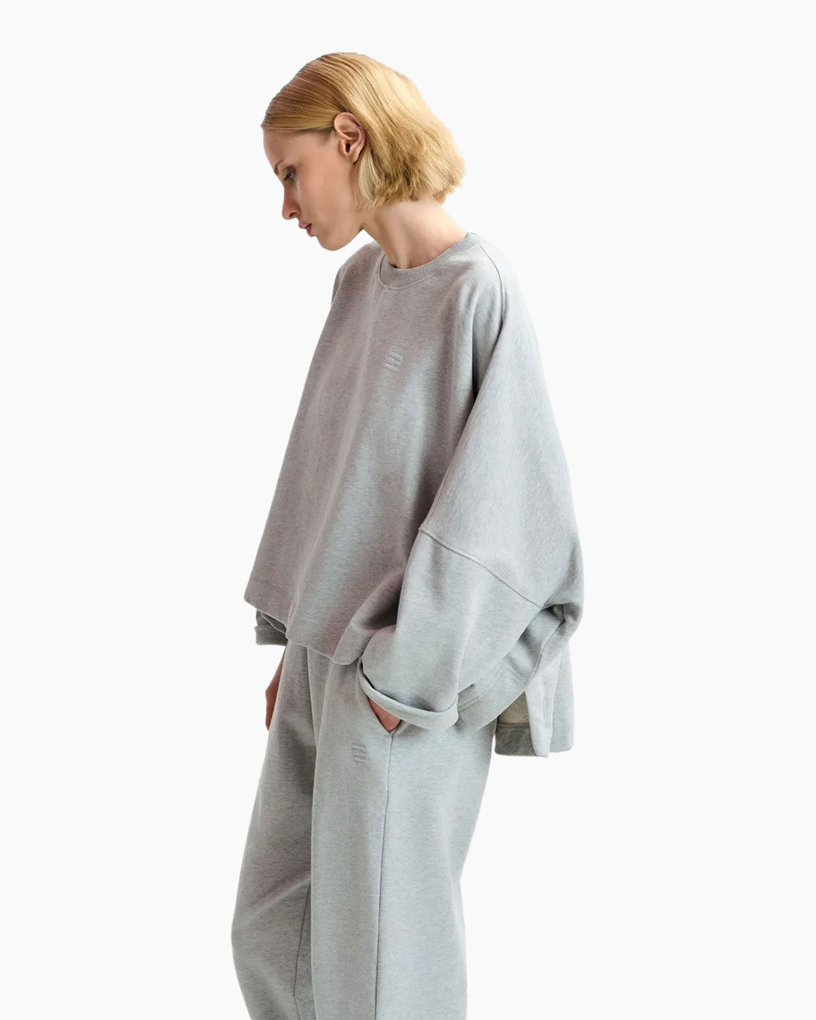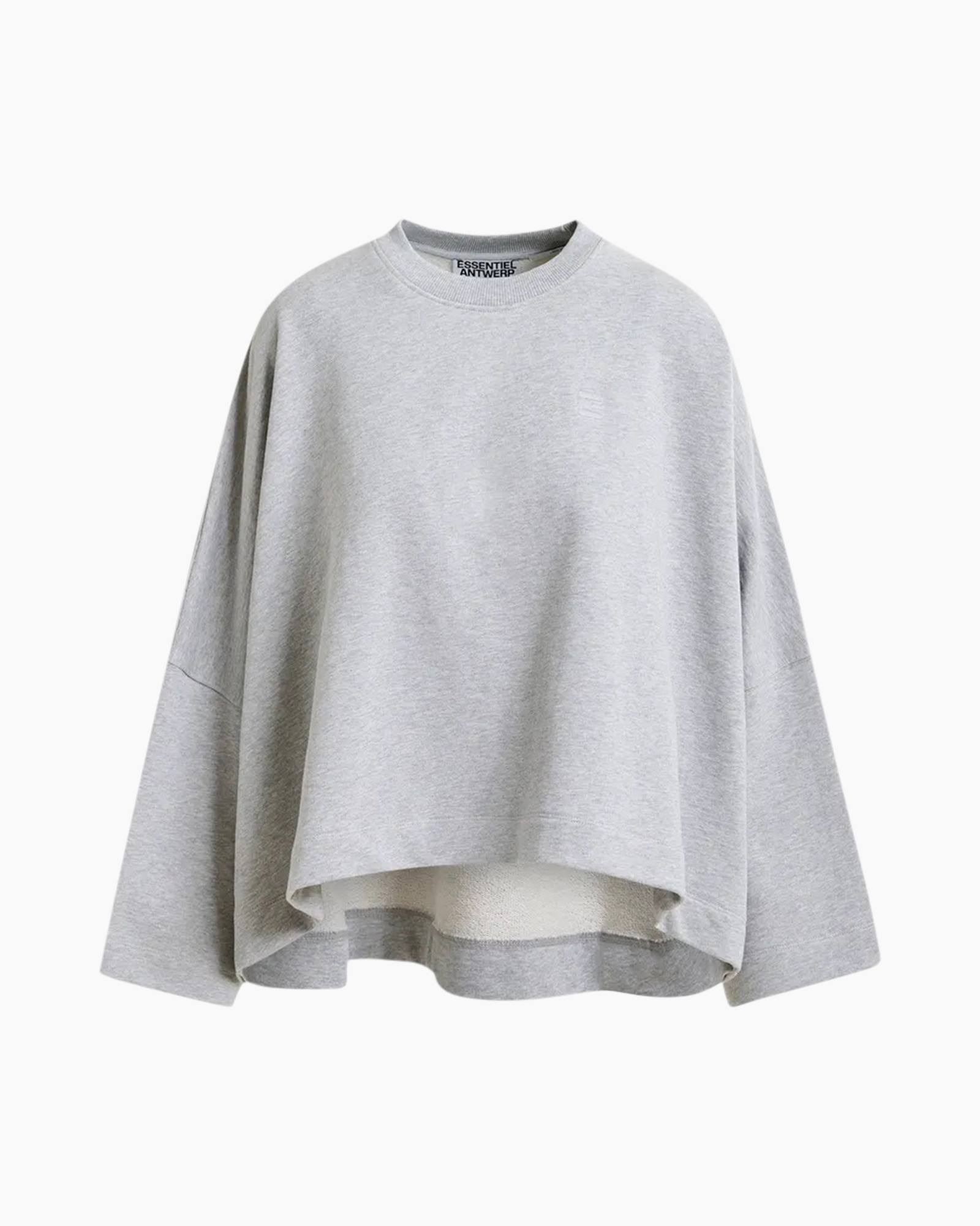 Knusse sweater vervaardigd van zacht biokatoenen jersey, ontworpen in een boxy silhouet met een ronde halslijn, lage mouwinzet en wijde T-shirtmouwen. De geborduurde E op de borst zorgt voor een charmant detail.