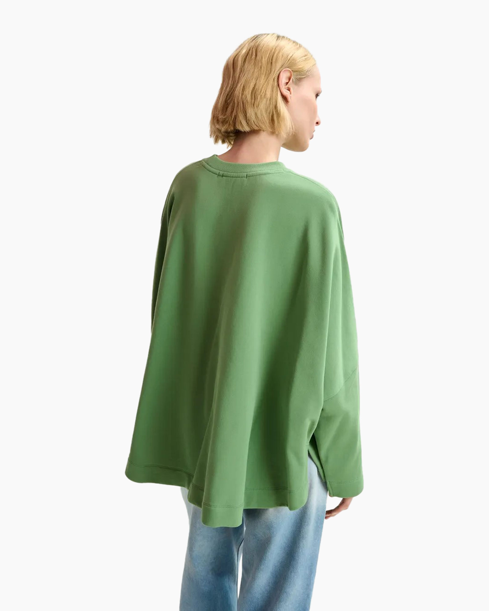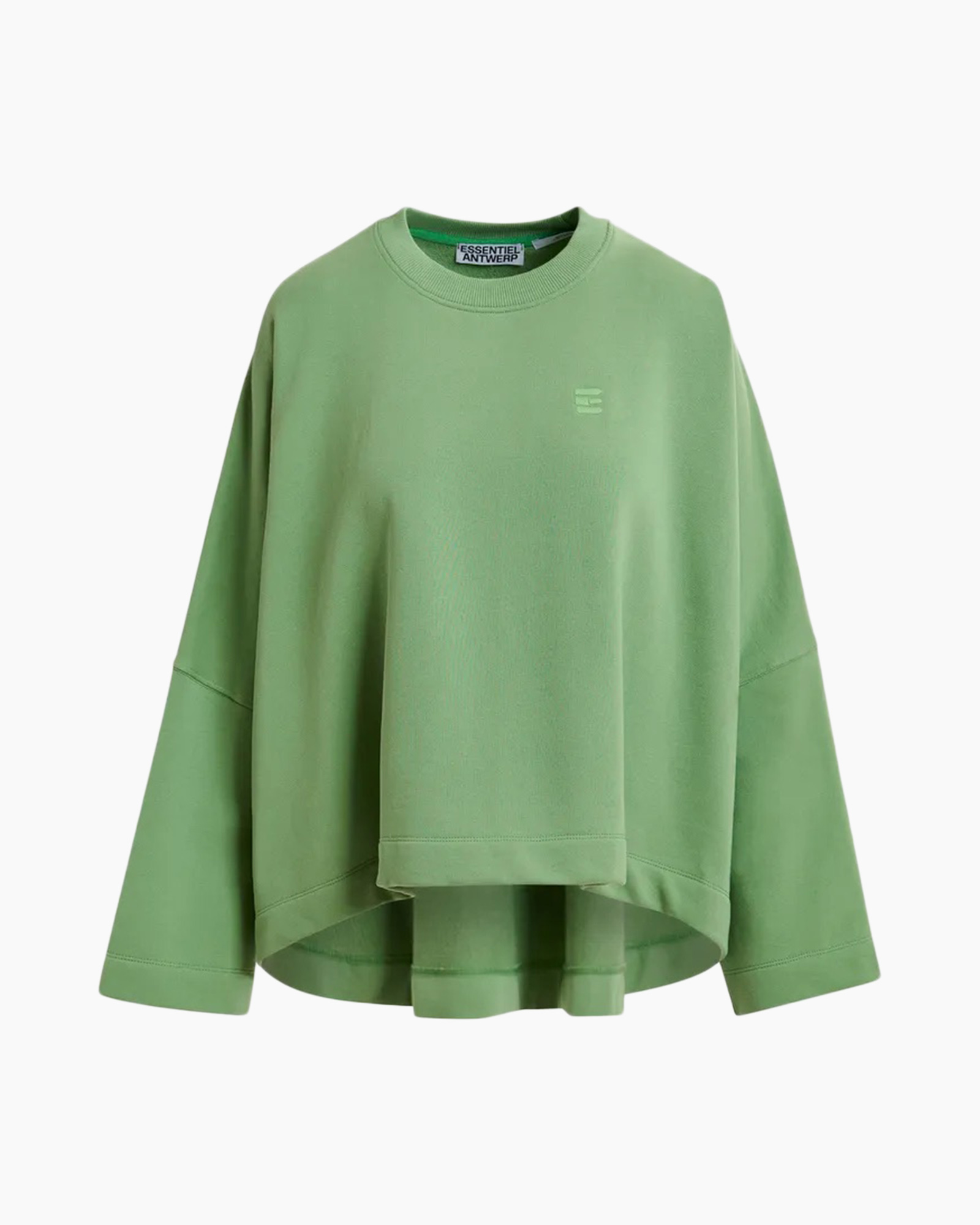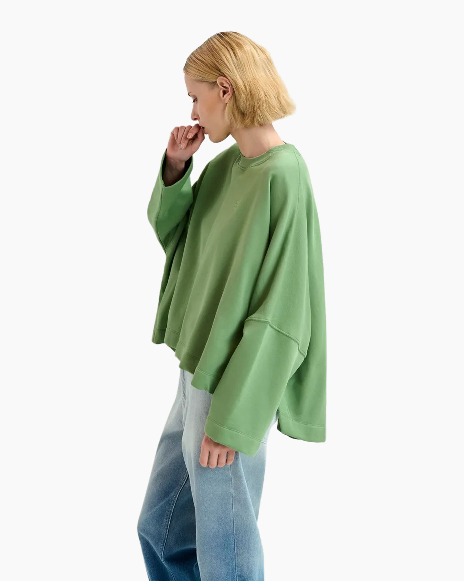 Knusse sweater vervaardigd van zacht biokatoenen jersey, ontworpen in een boxy silhouet met een ronde halslijn, lage mouwinzet en wijde T-shirtmouwen. De geborduurde E op de borst zorgt voor een charmant detail.